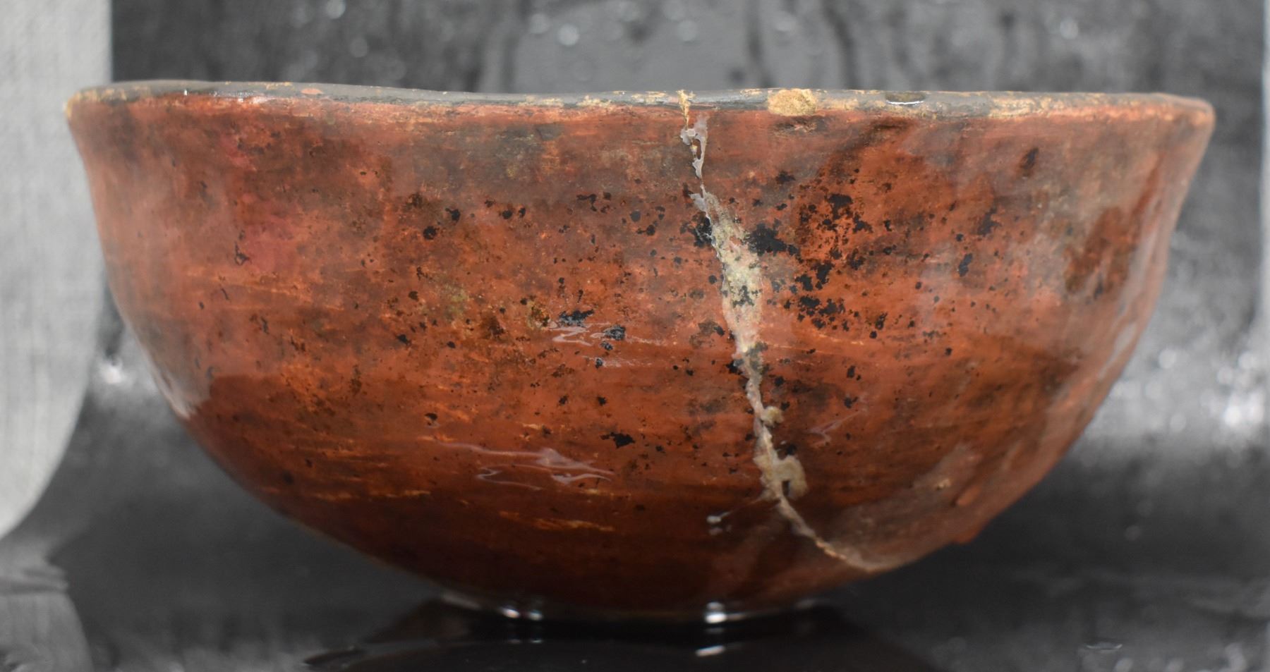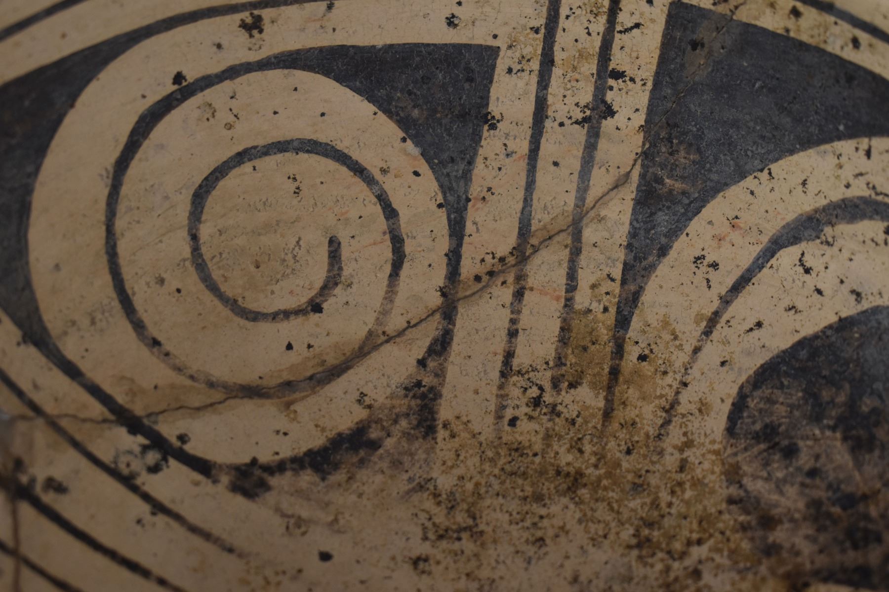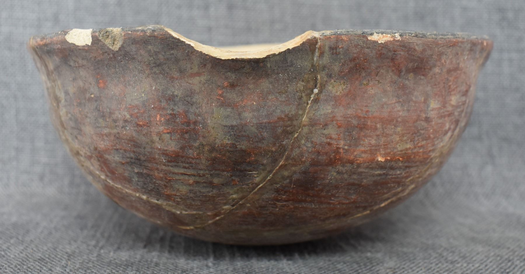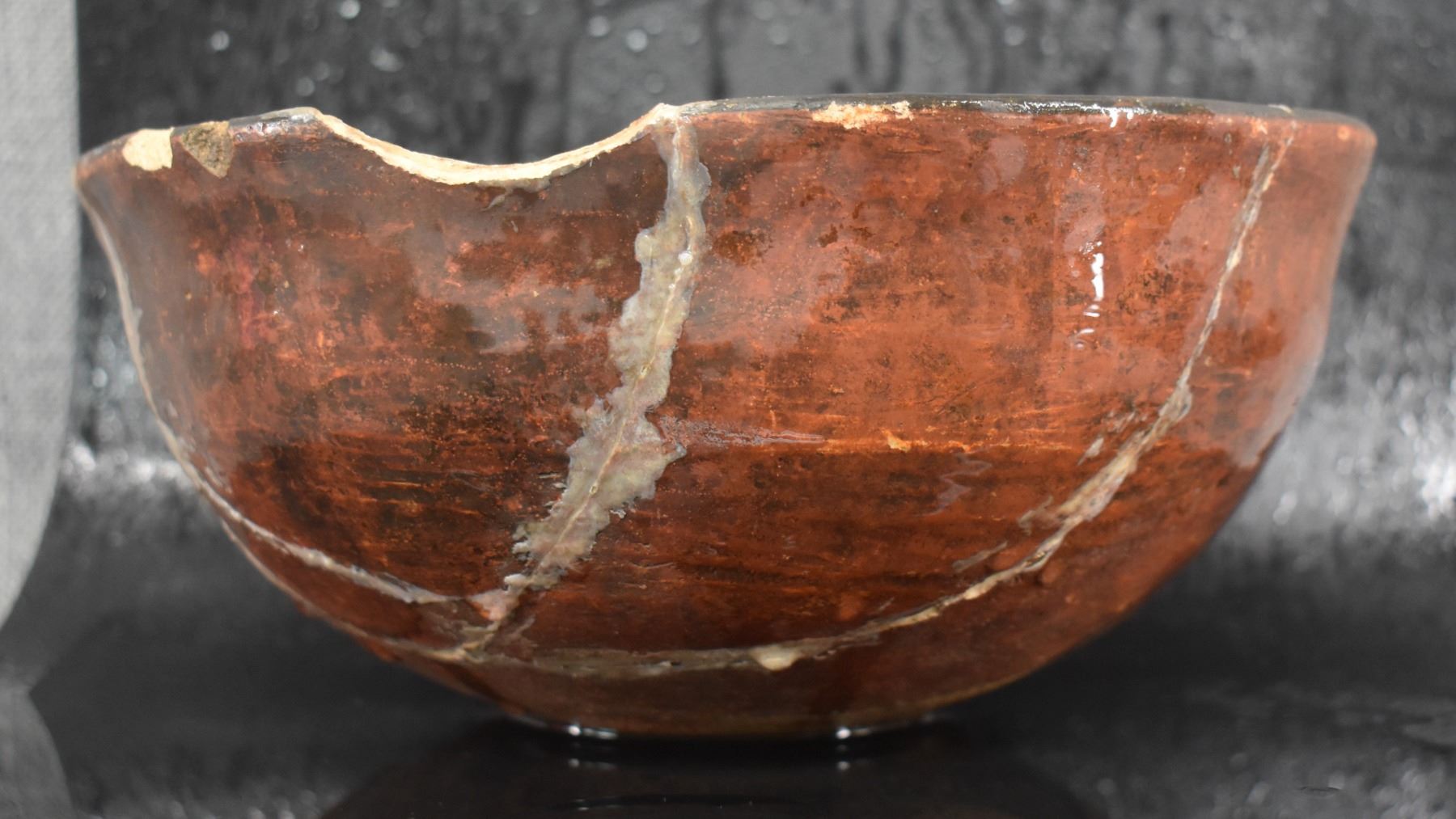 prehistoric Casa Grandes, hand coiled with painted geometric design 4" x 8.5" broken and glued