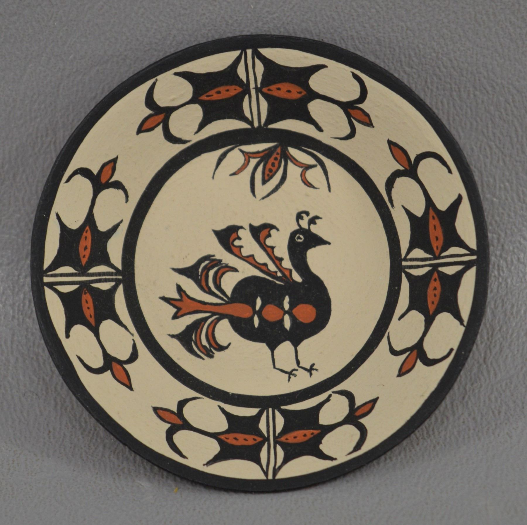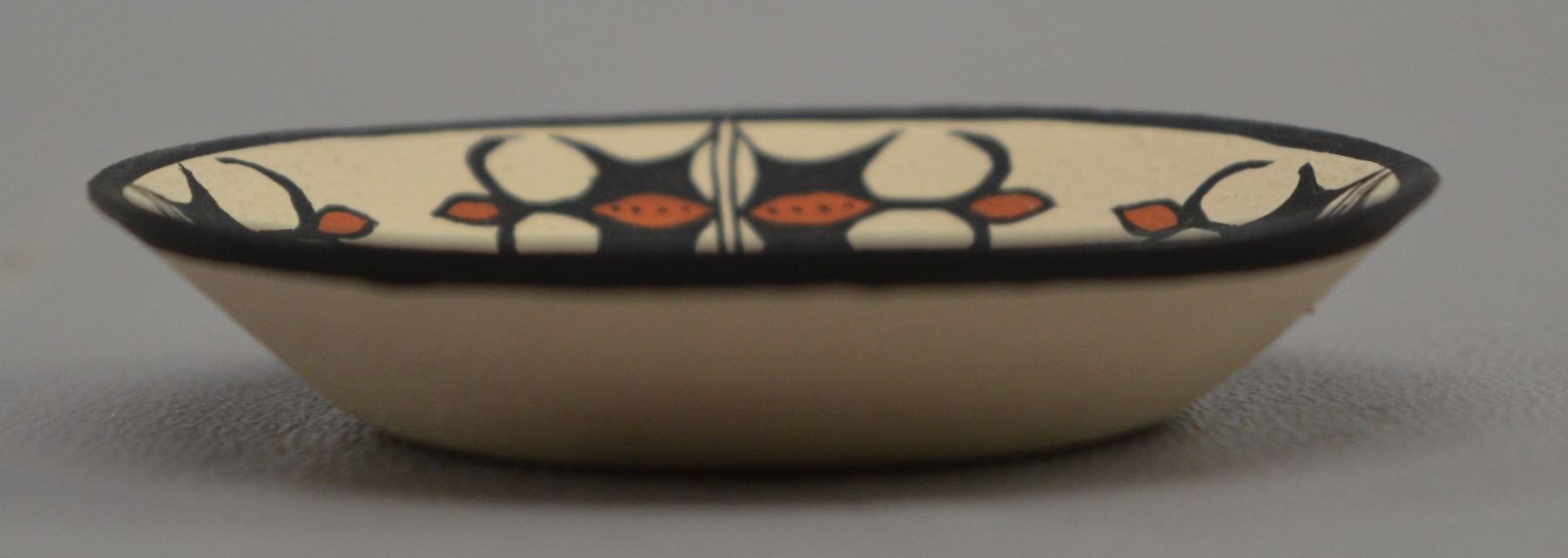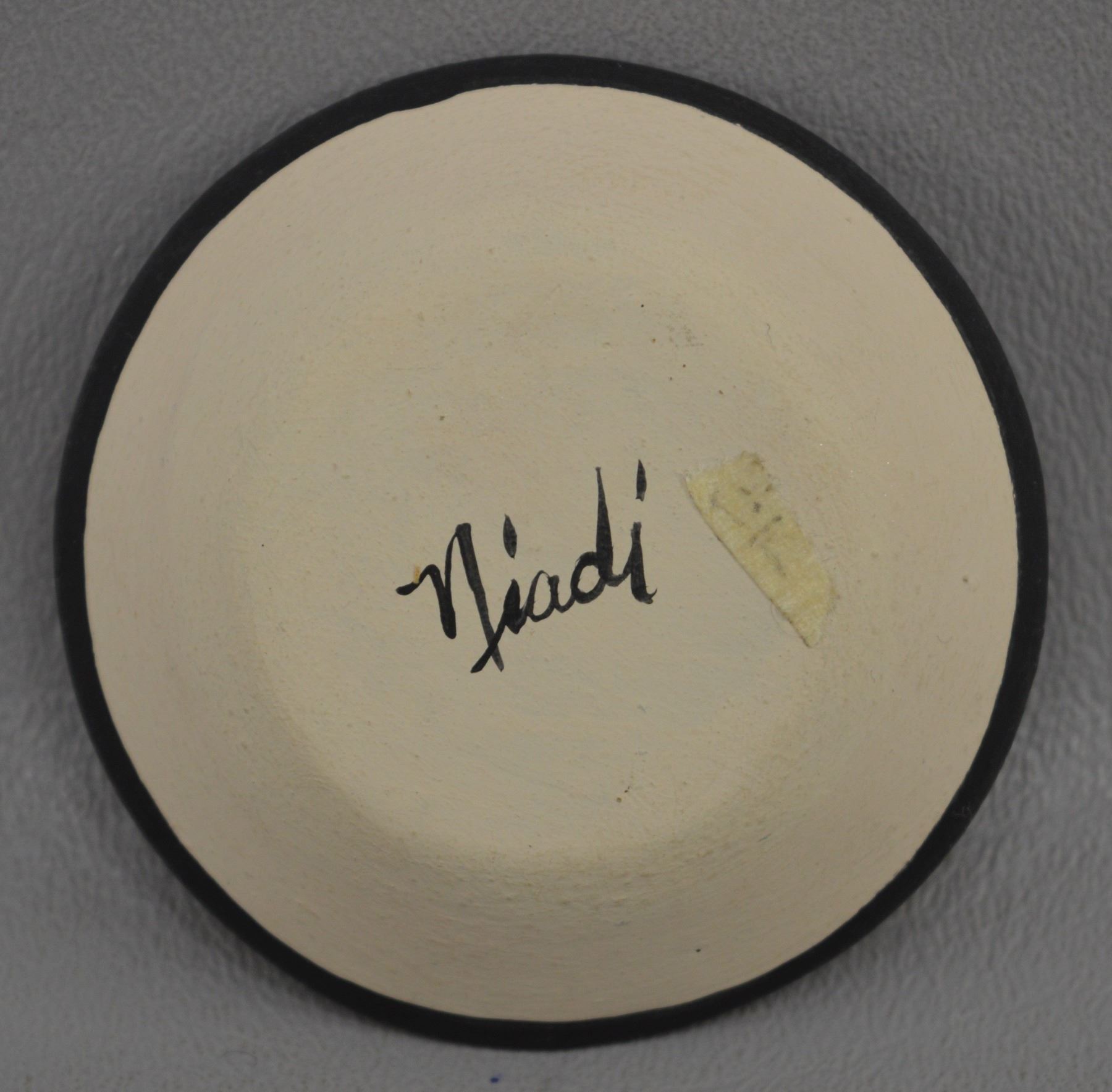 1980's Chemehuevi Indian. Miniature Hand coiled and painted design pottery vase, signed Naidi. .5'' x 2.5''