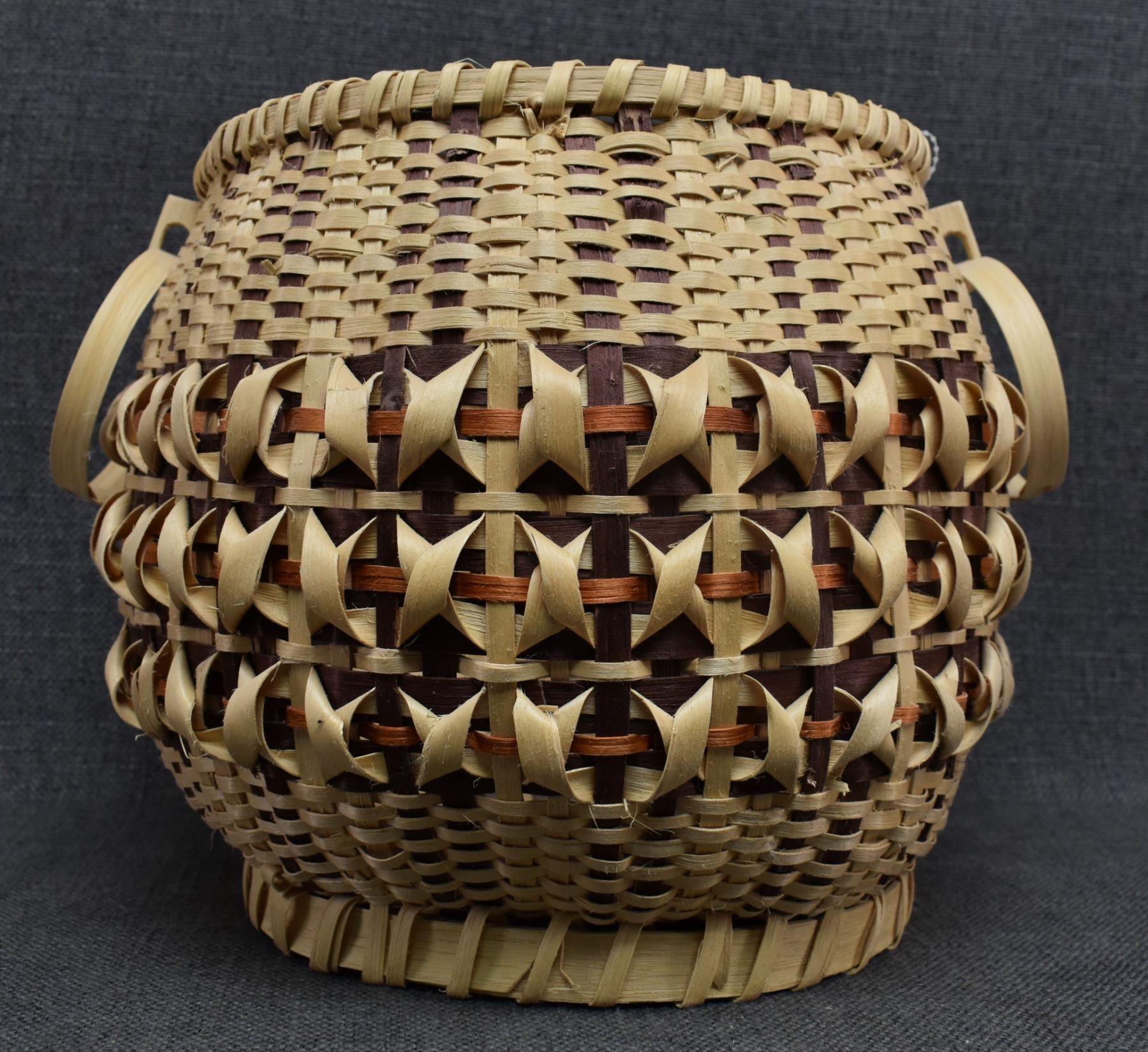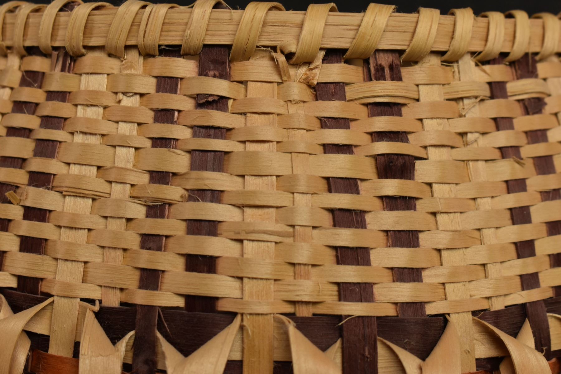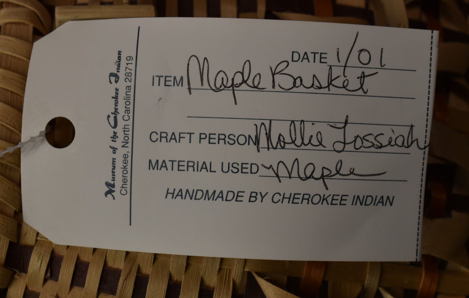 2001 Cherokee. Hand woven maple basket by Mollie Lossiah. 9'' x 11''
