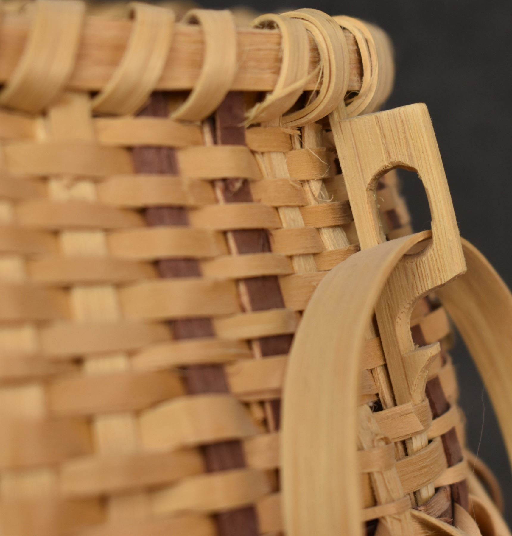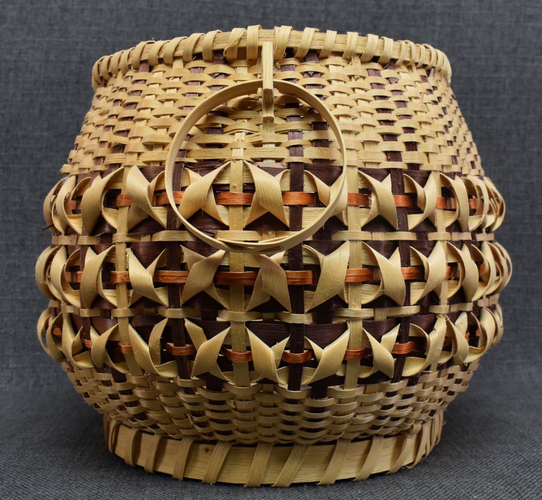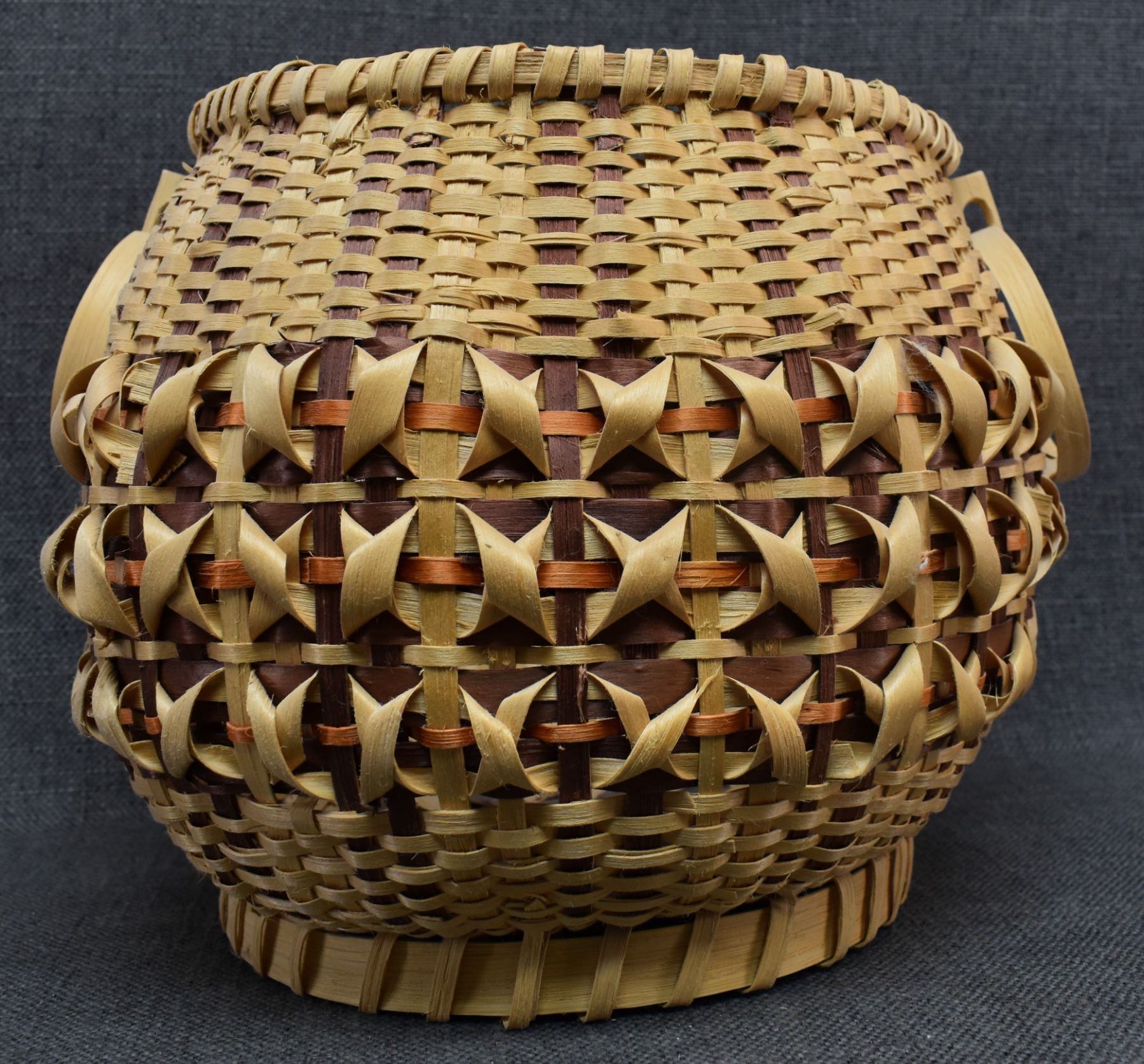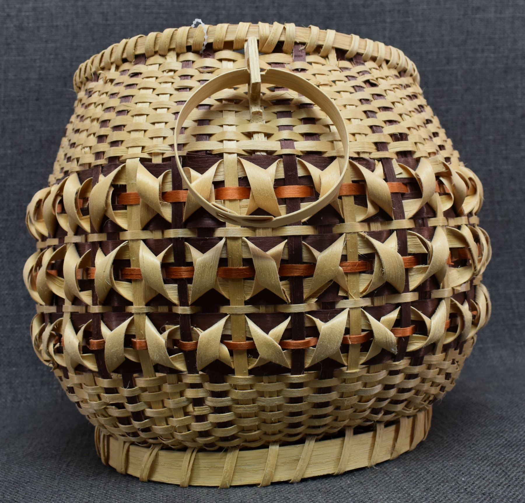 2001 Cherokee. Hand woven maple basket by Mollie Lossiah. 9'' x 11''