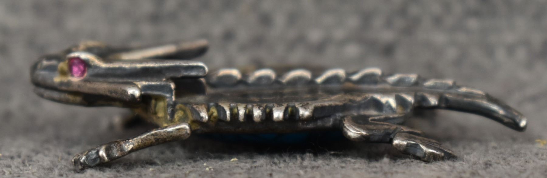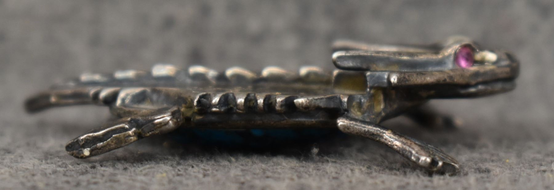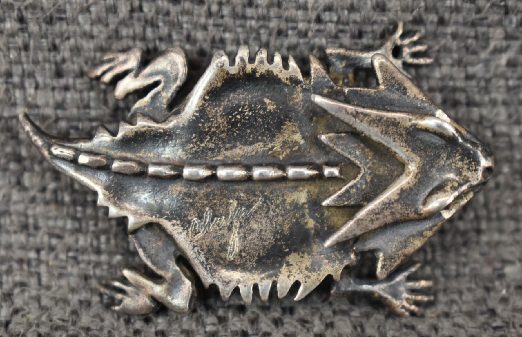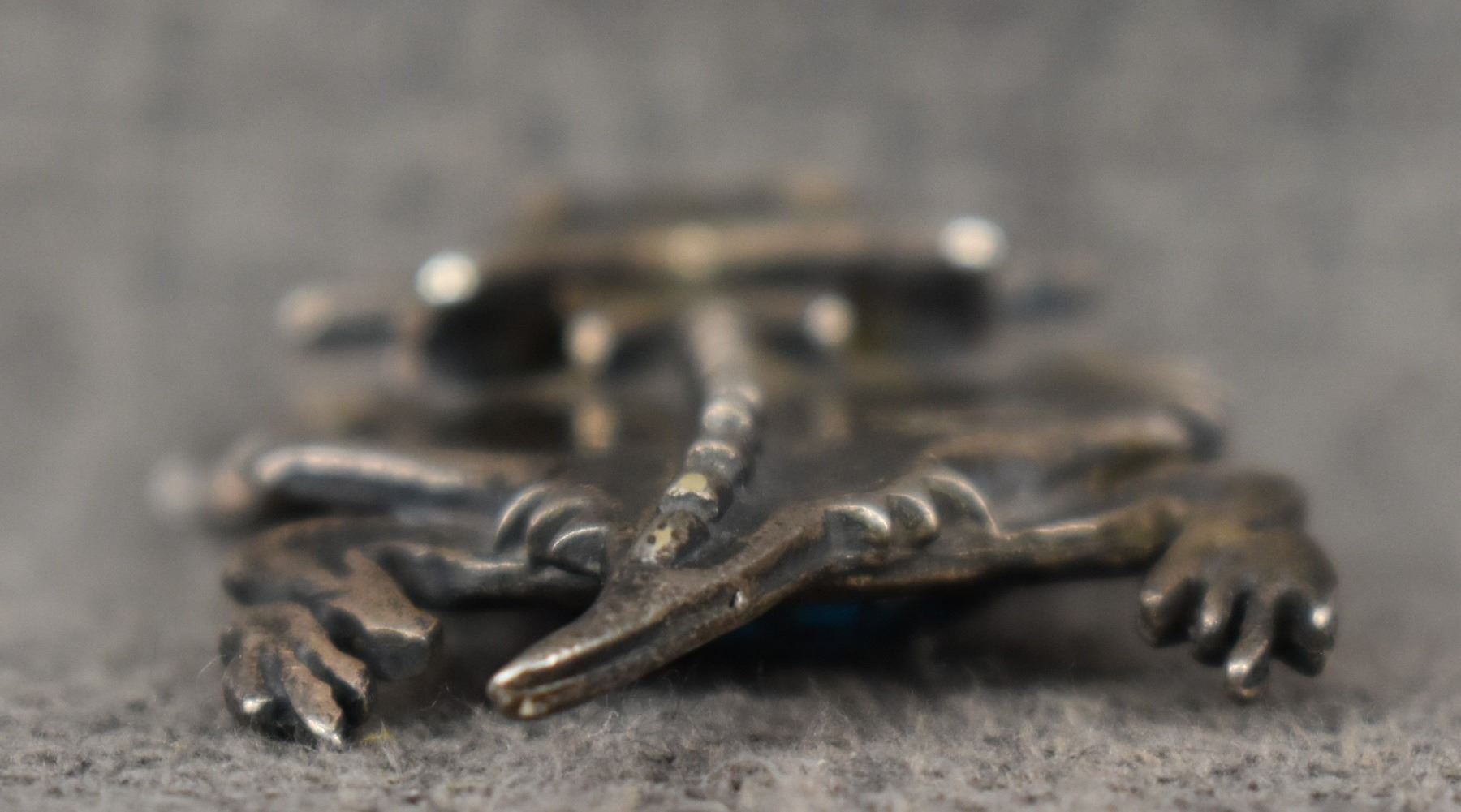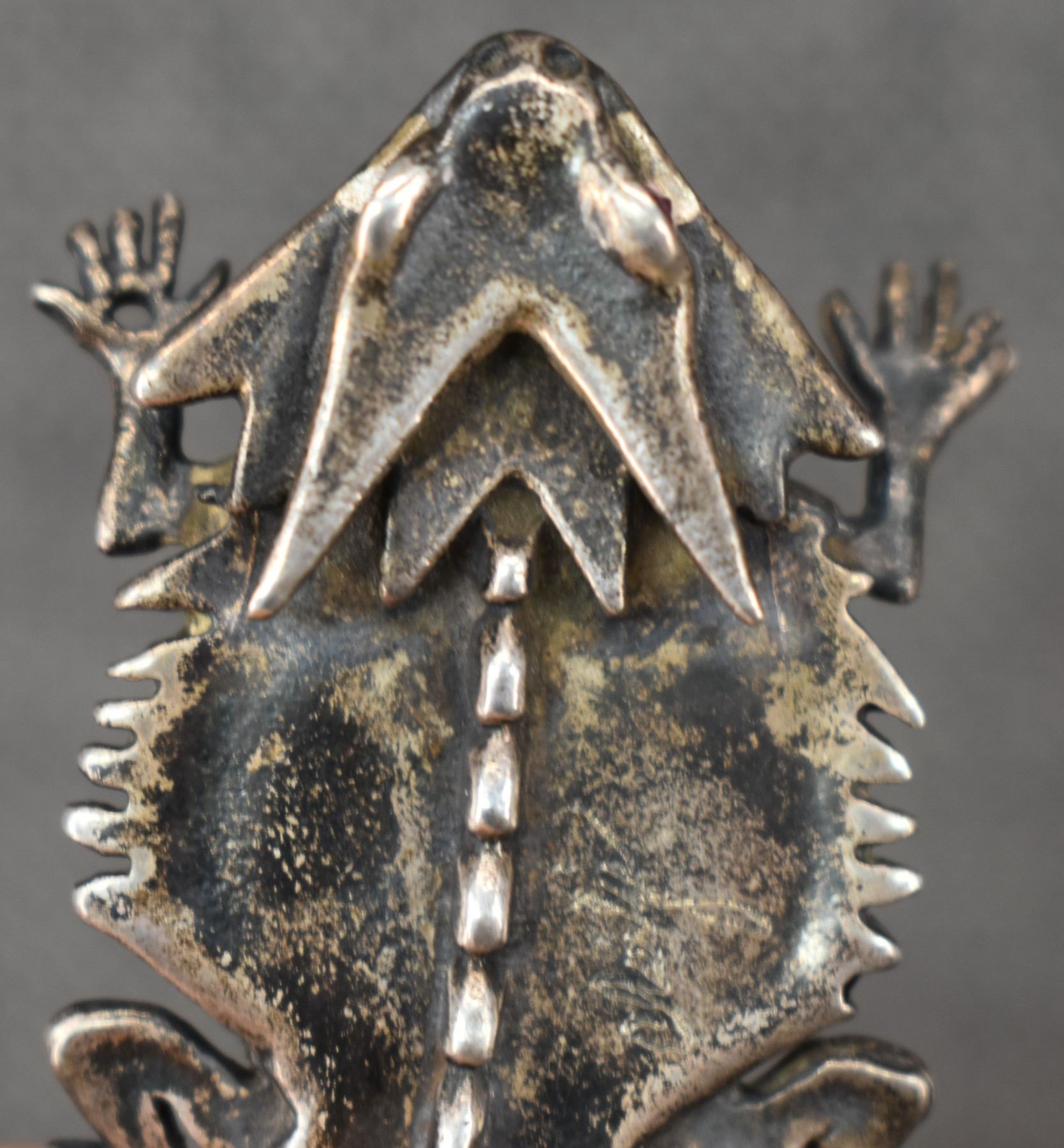 1980-90's Cheyenne/Arapaho, silver horn toad with blue stone .25" x 1.25" x 2"