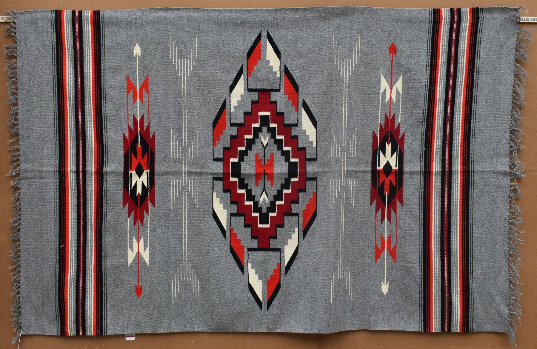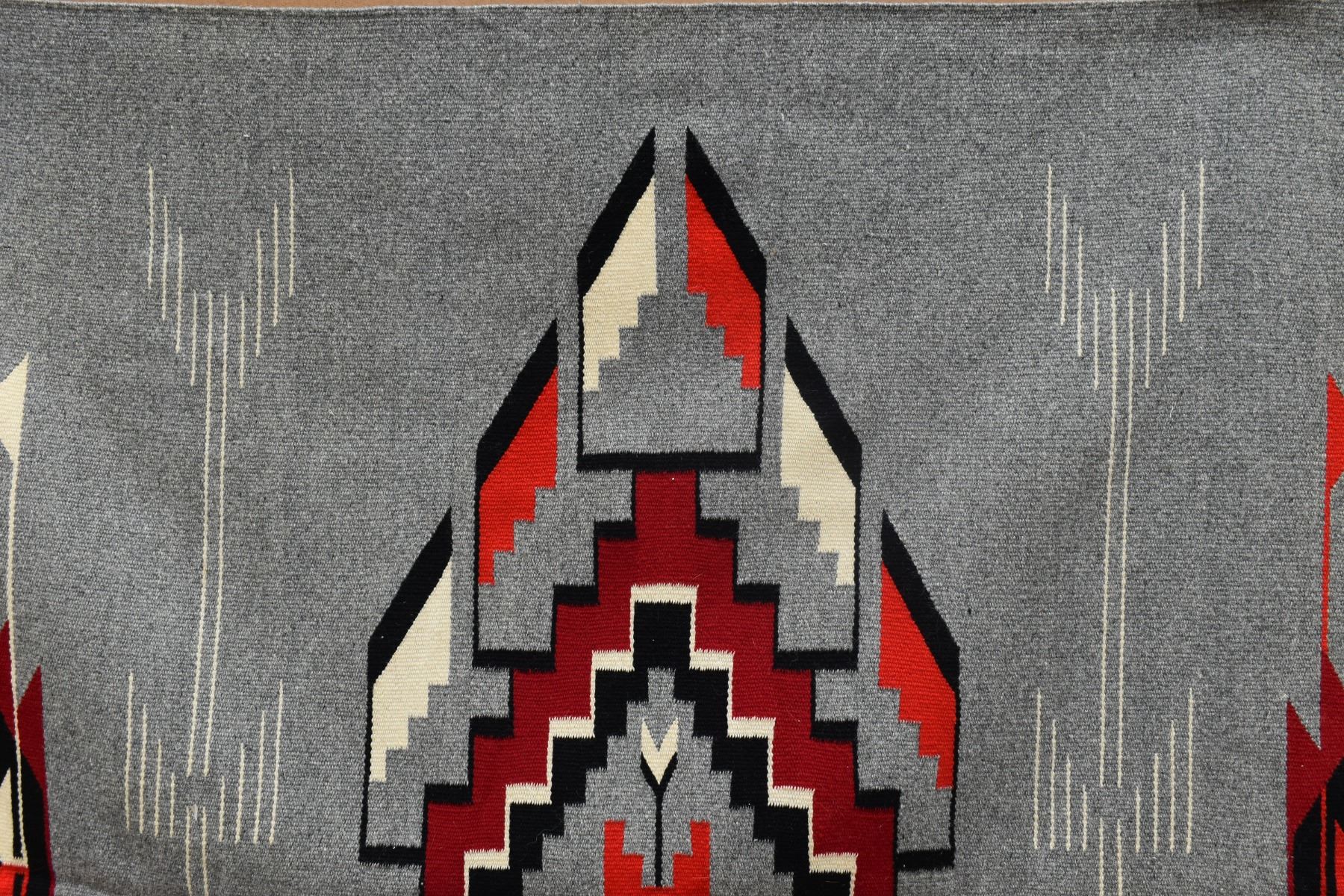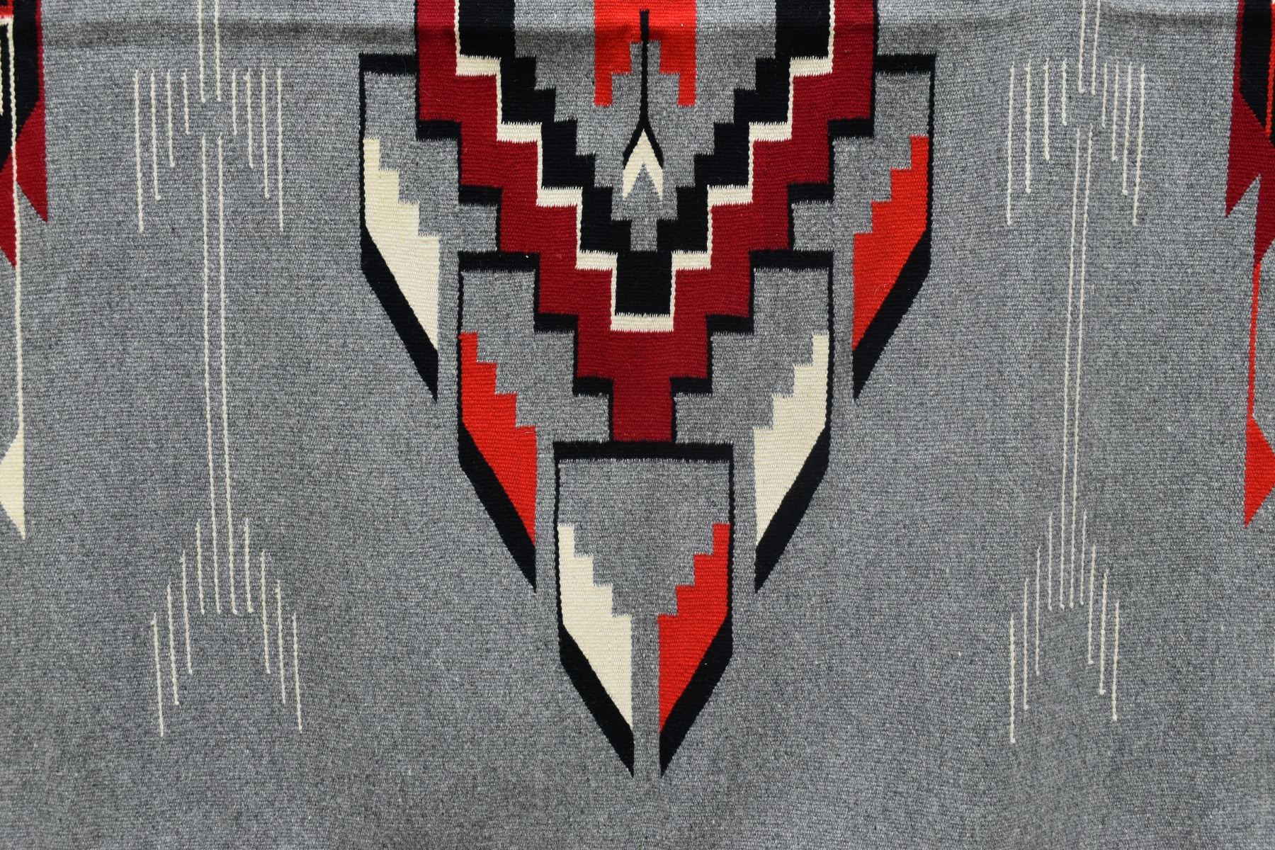 1960's Chimayo. Traditional design on grey field 80'' x 52''