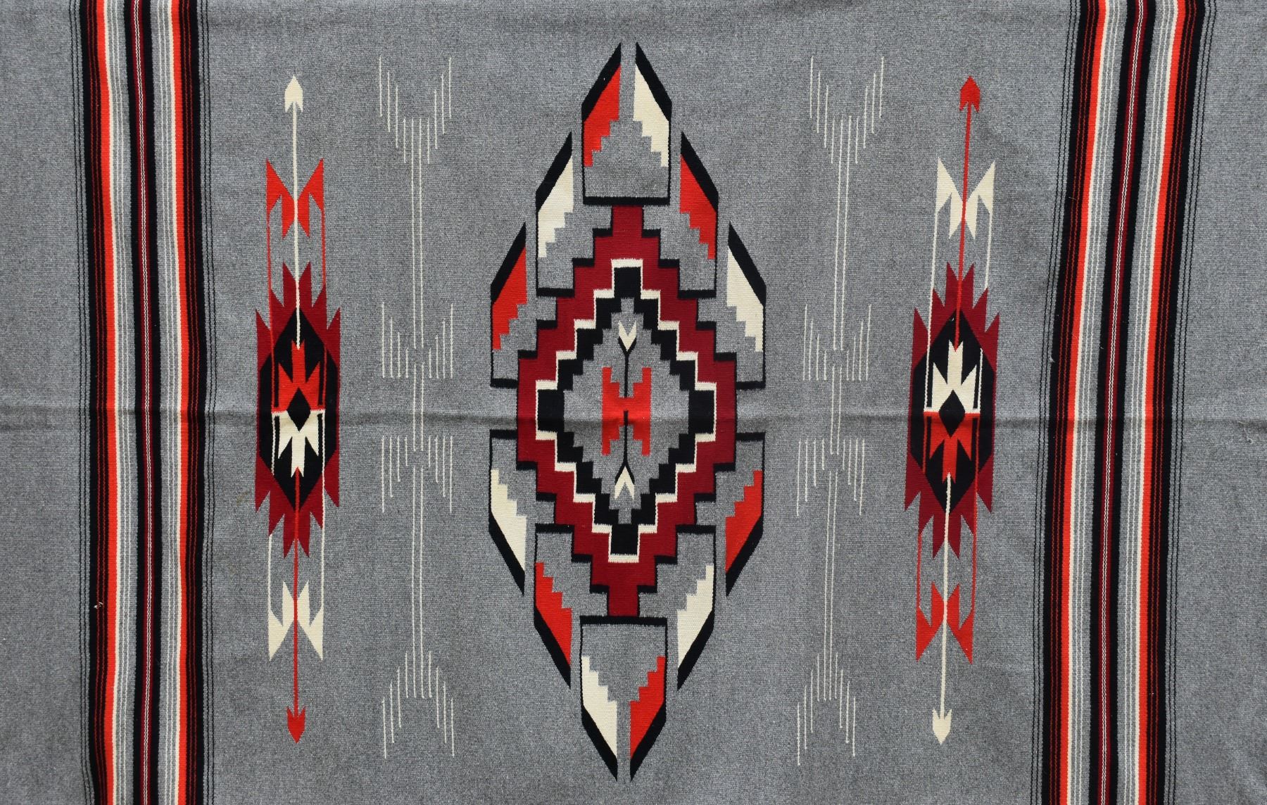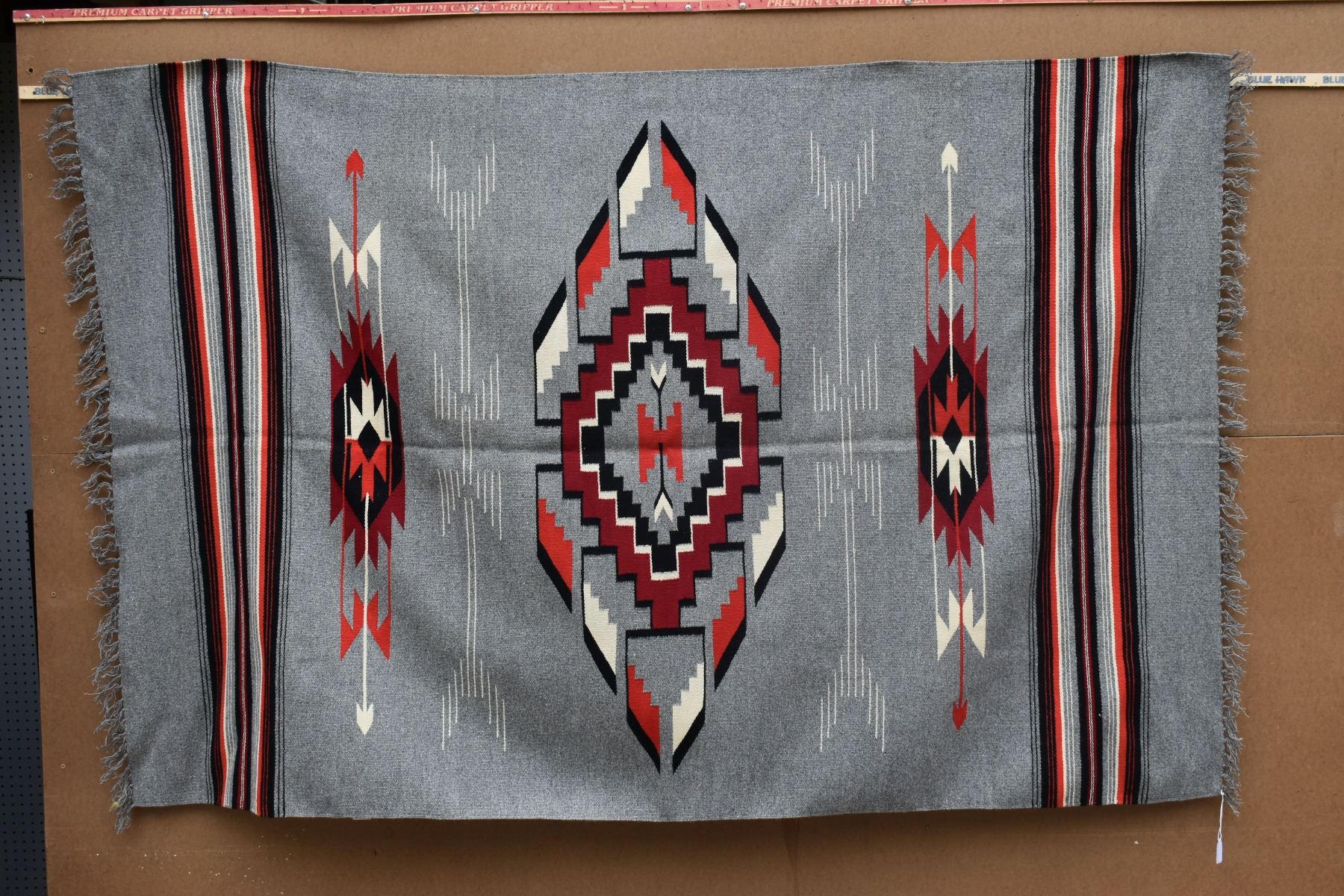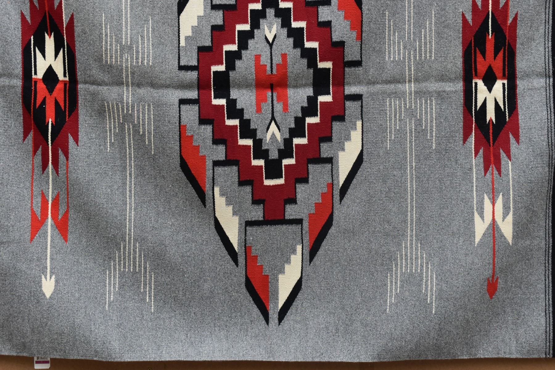 1960's Chimayo. Traditional design on grey field 80'' x 52''