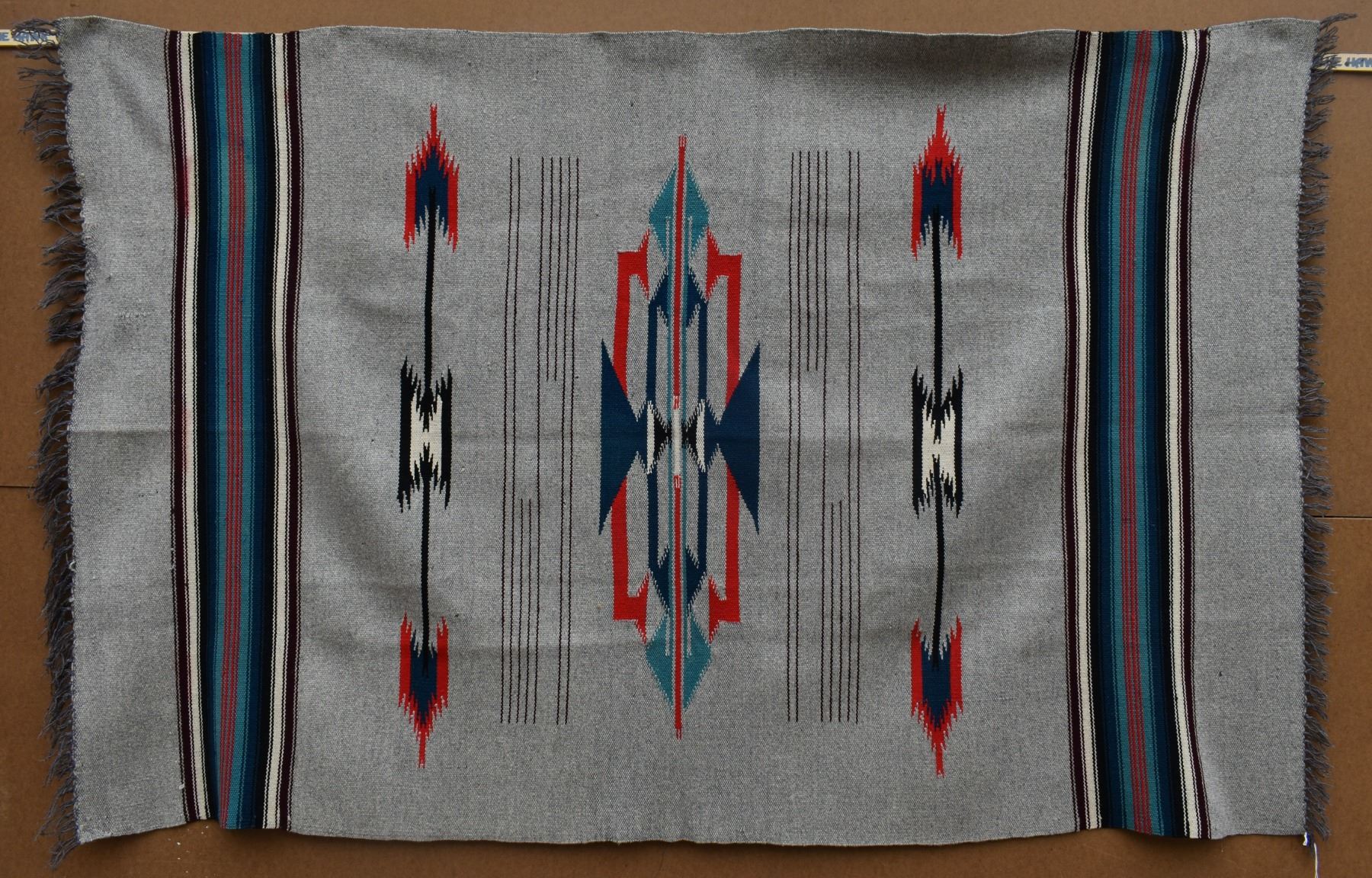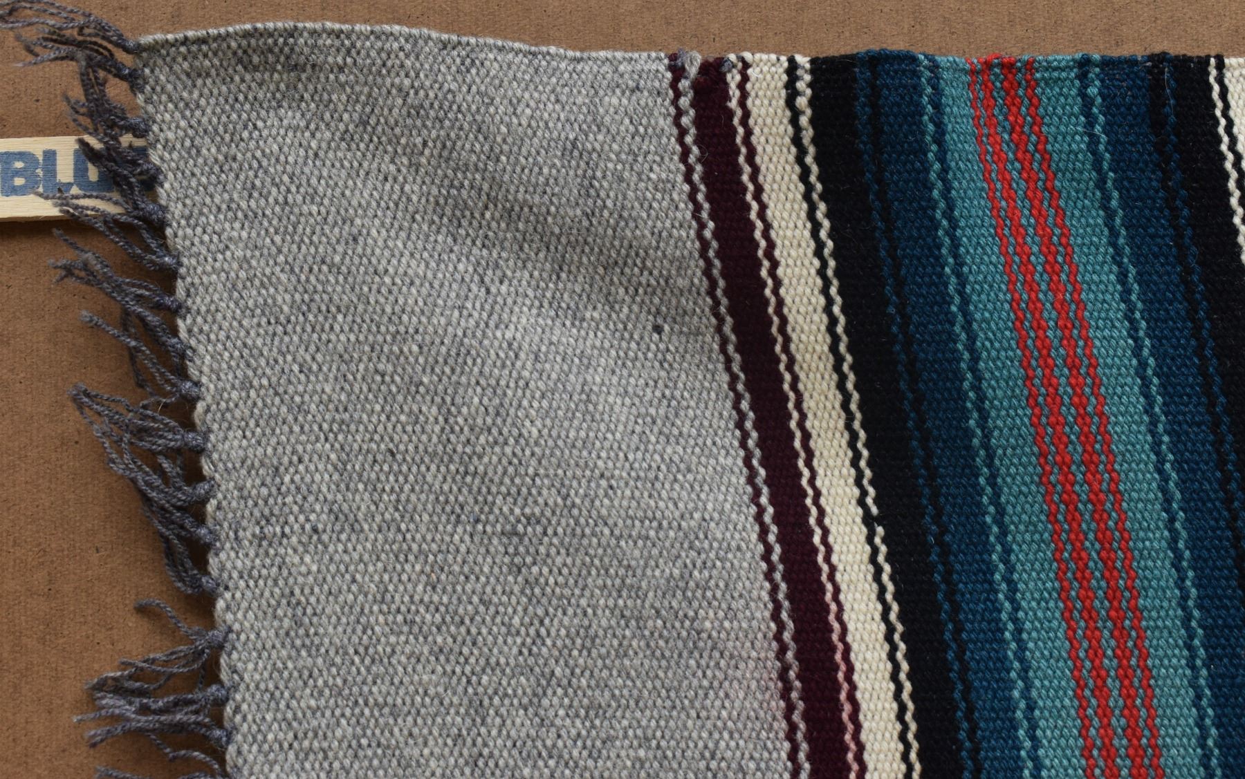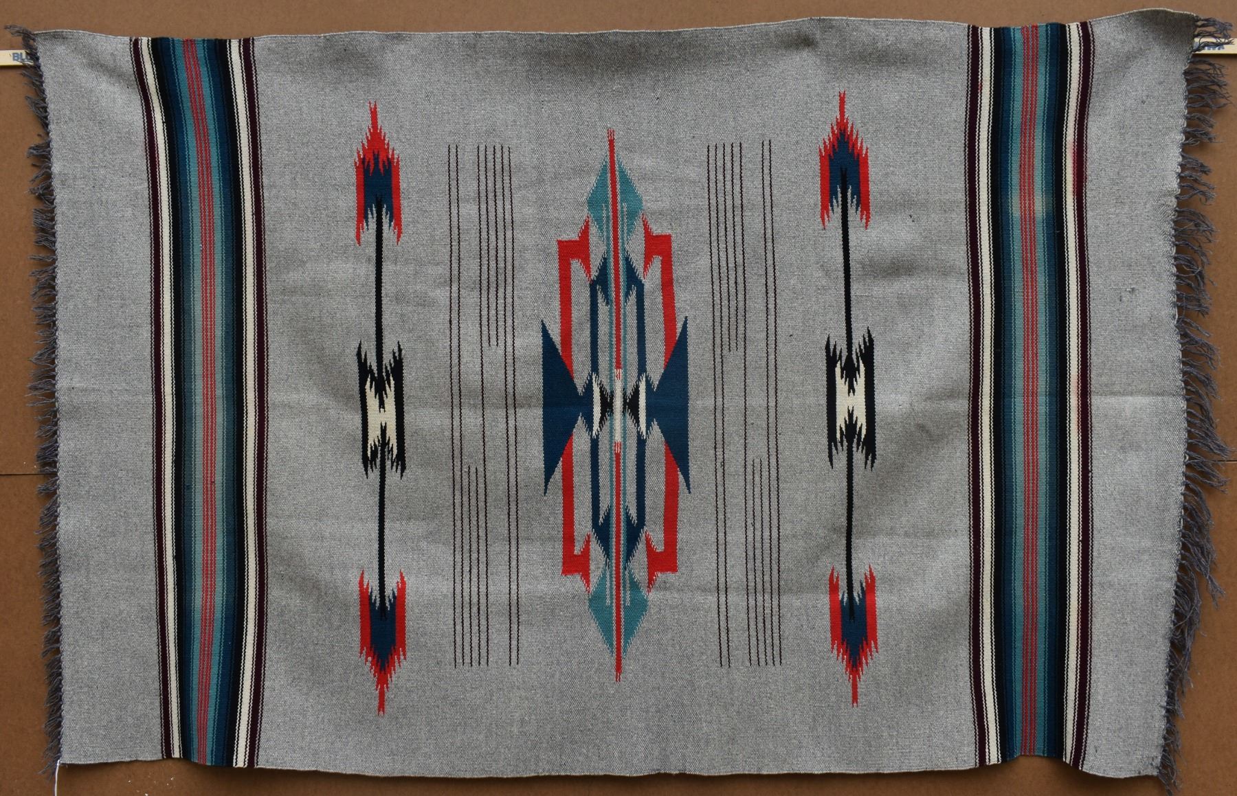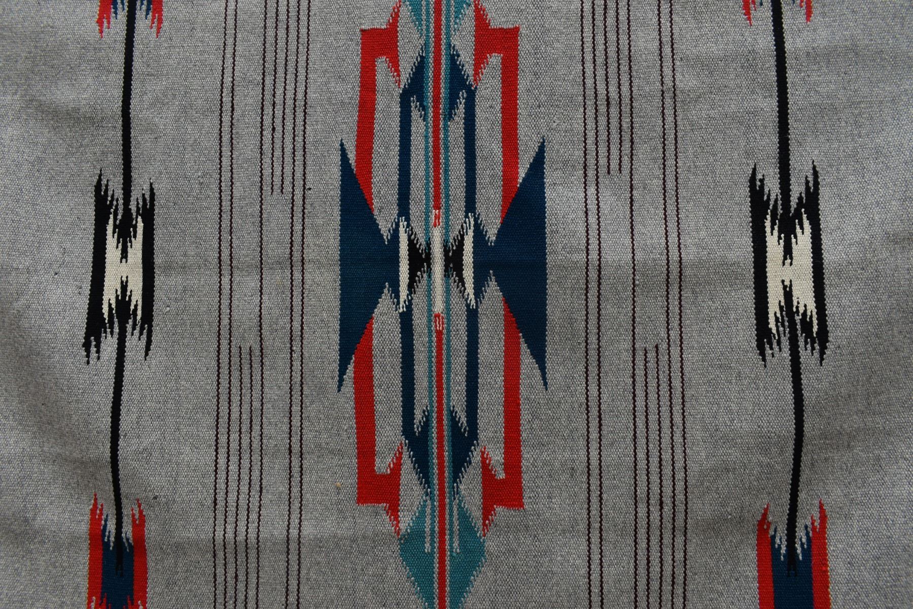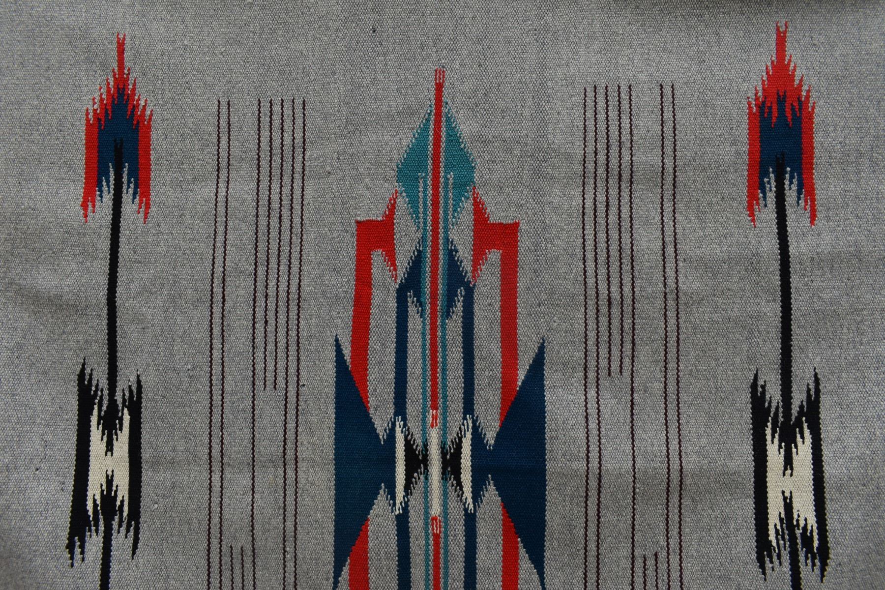 1940's Chimayo banded design textile. 68'' x 44'' has minor bleed and moth damage