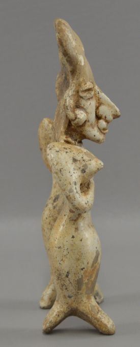 prehistoric Chinesco pottery female figure. 8''x 4'' x 2'' has restoration