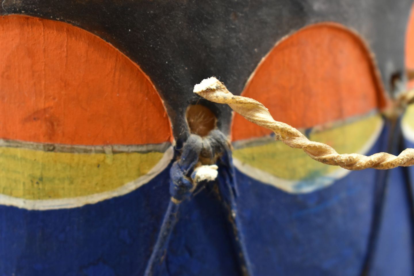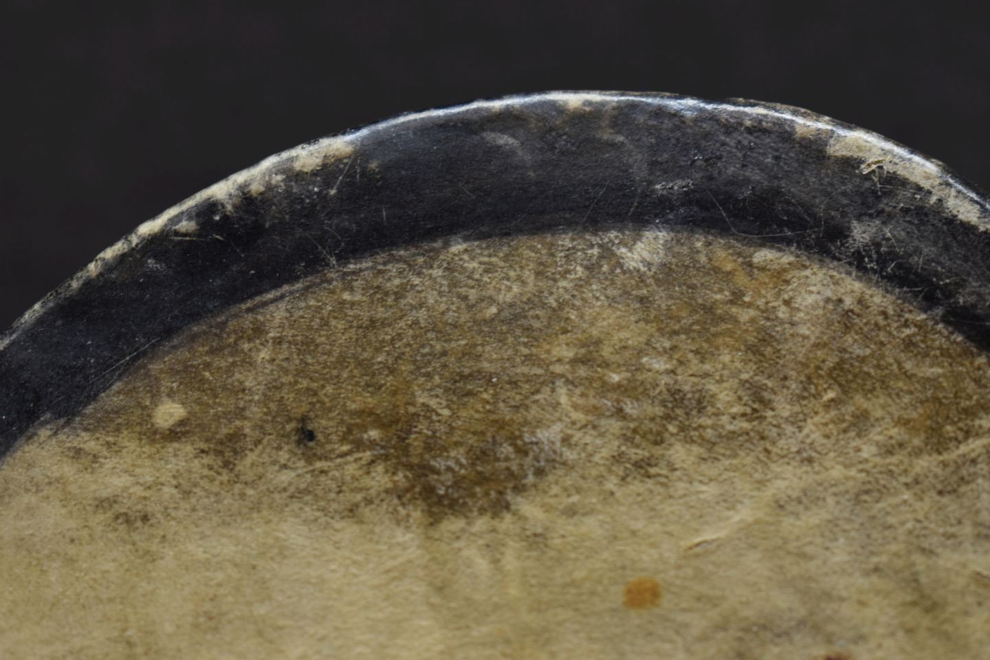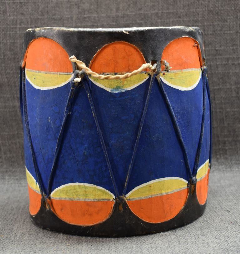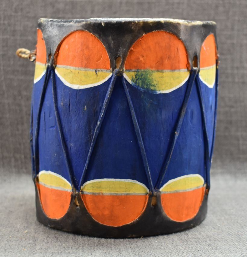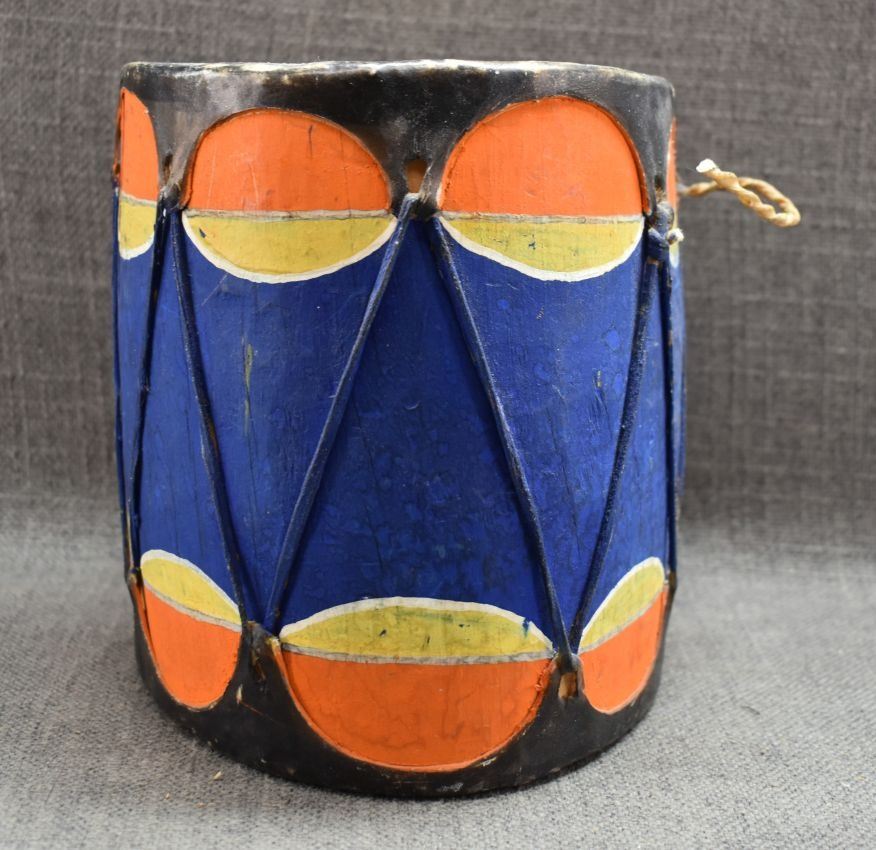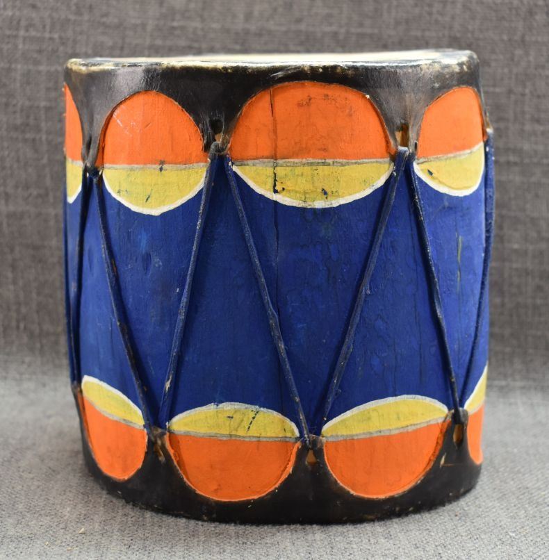 1960's Cochiti. Hand carved and painted cotton wood drum. 7'' x 7''