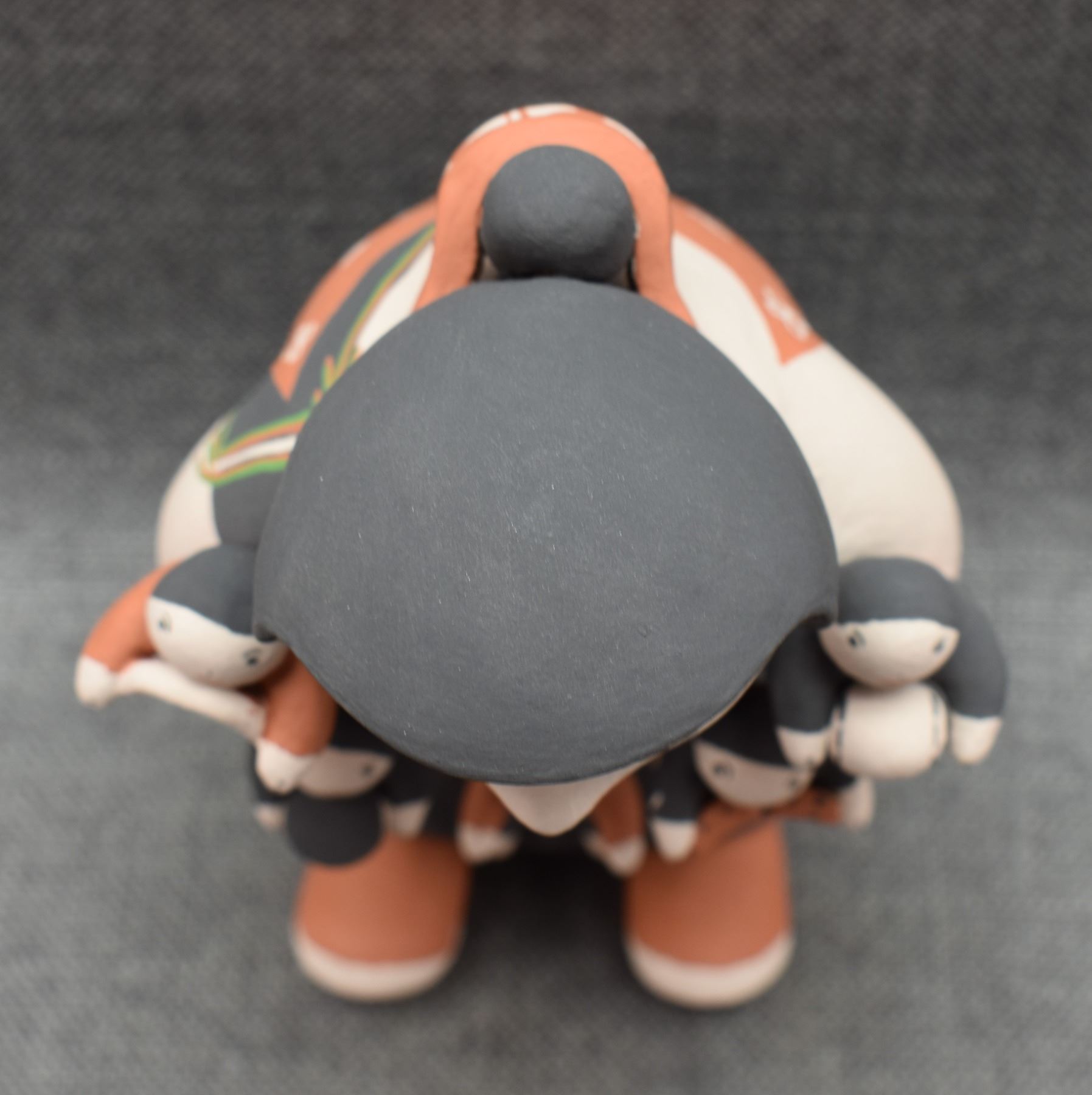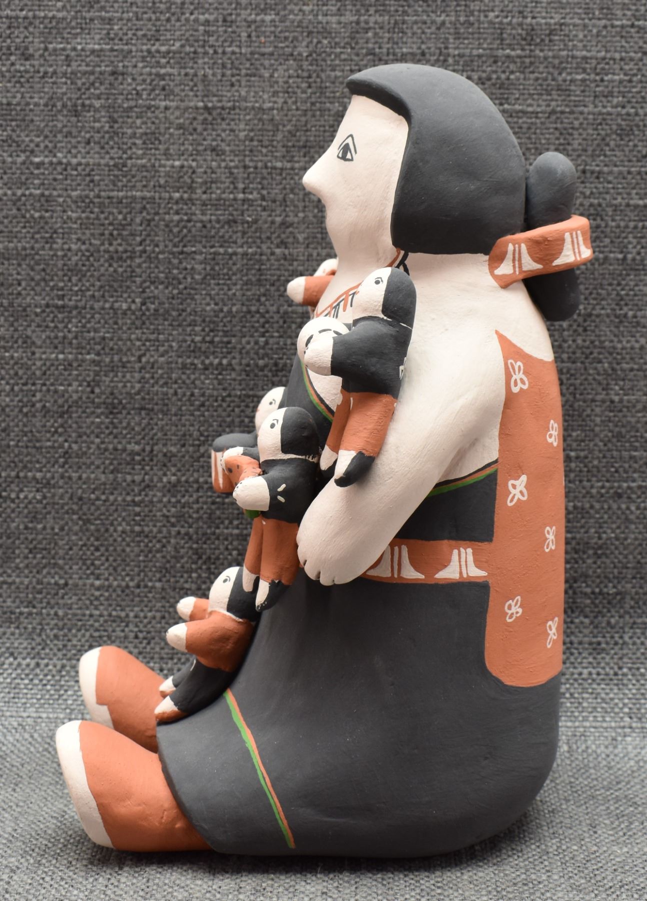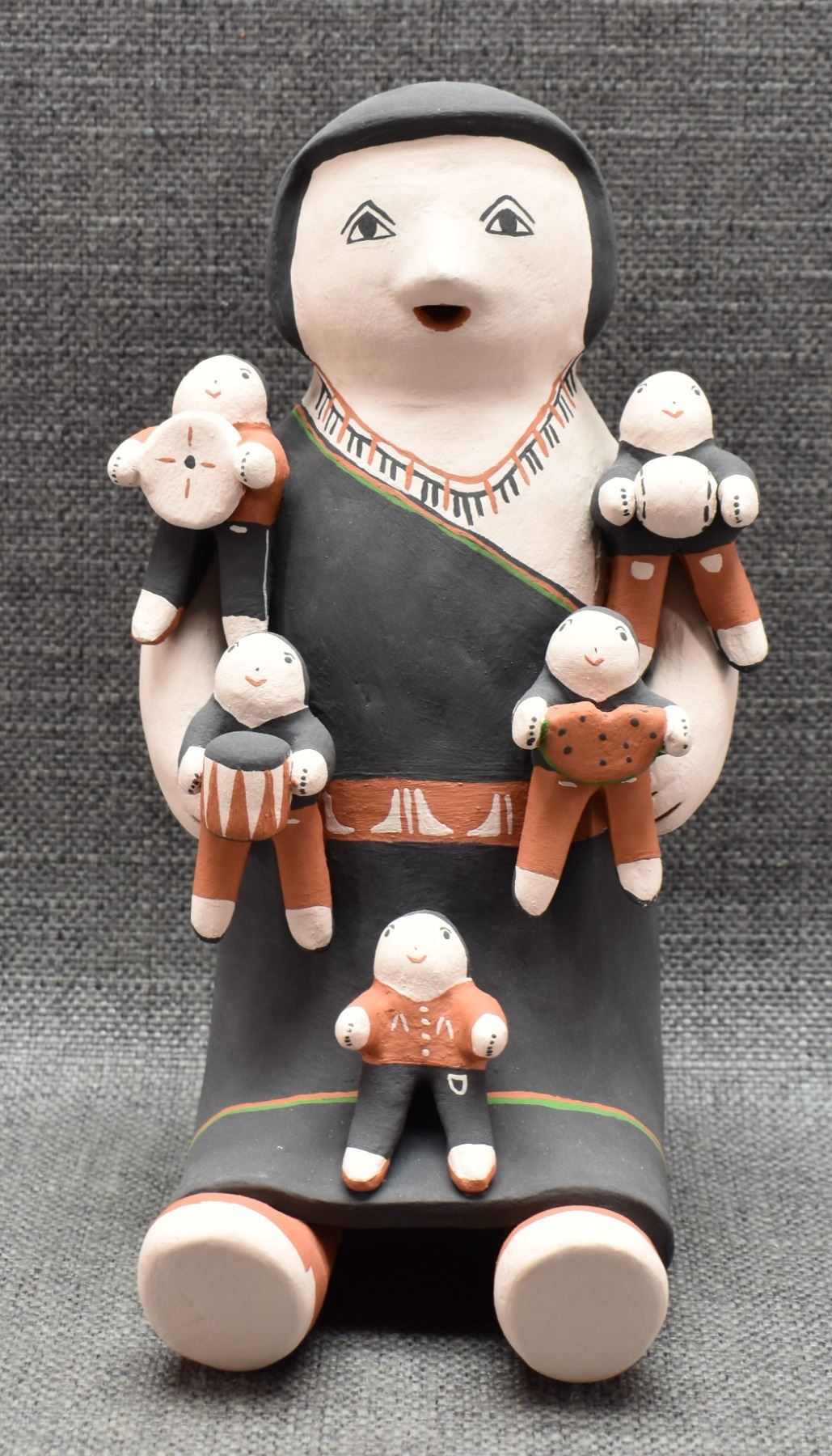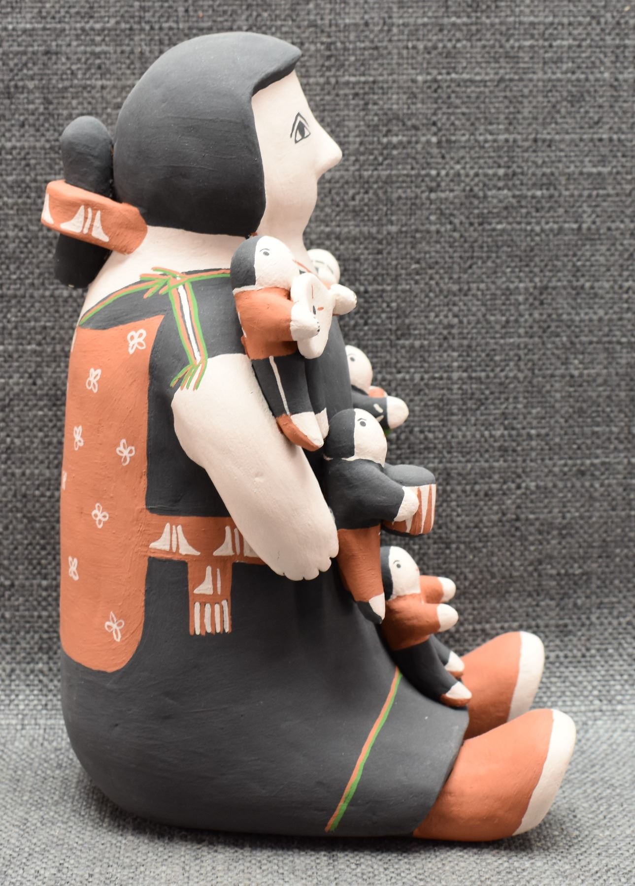 1980-90's Cochiti Indian hand coiled and polychrome painted story teller and babies signed Annette Romero 9" x 4.75" x 5.25"