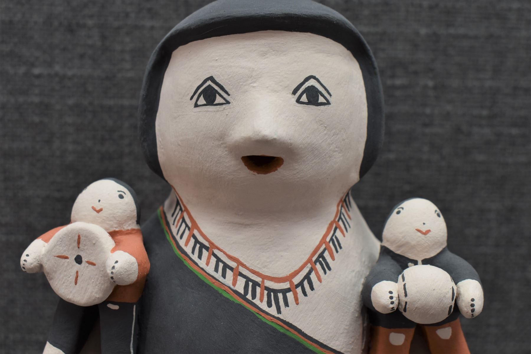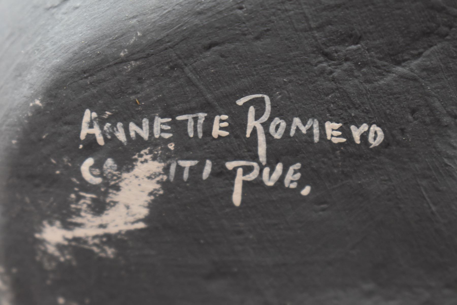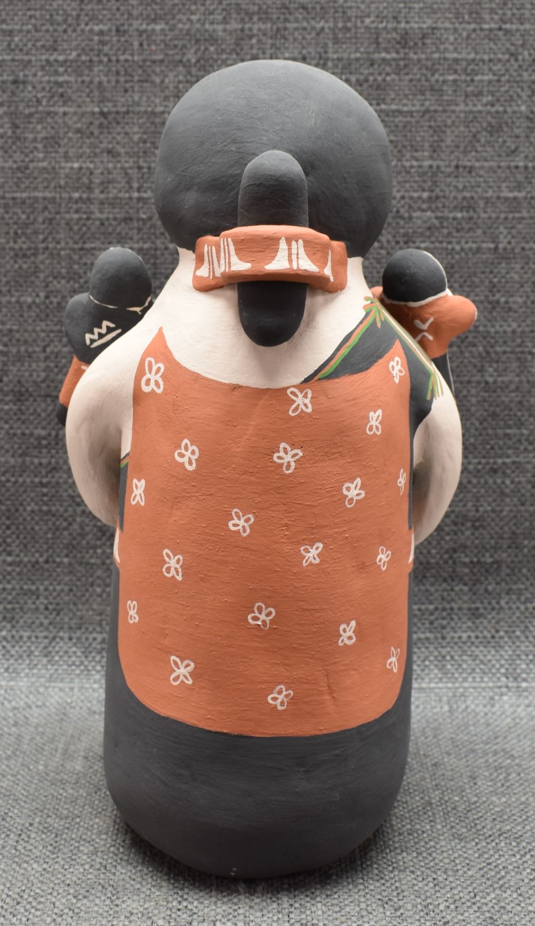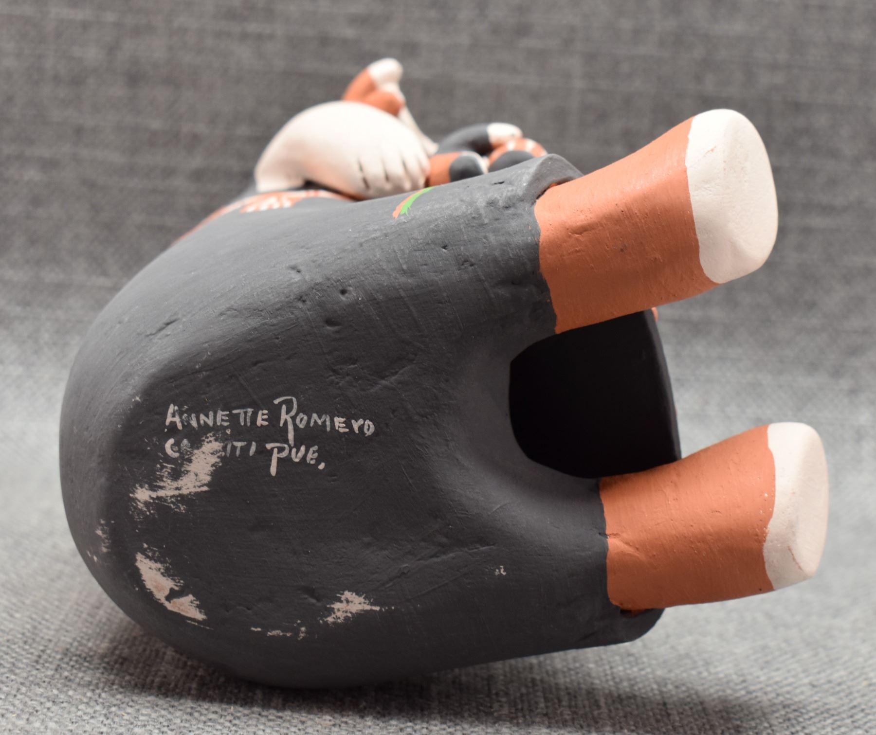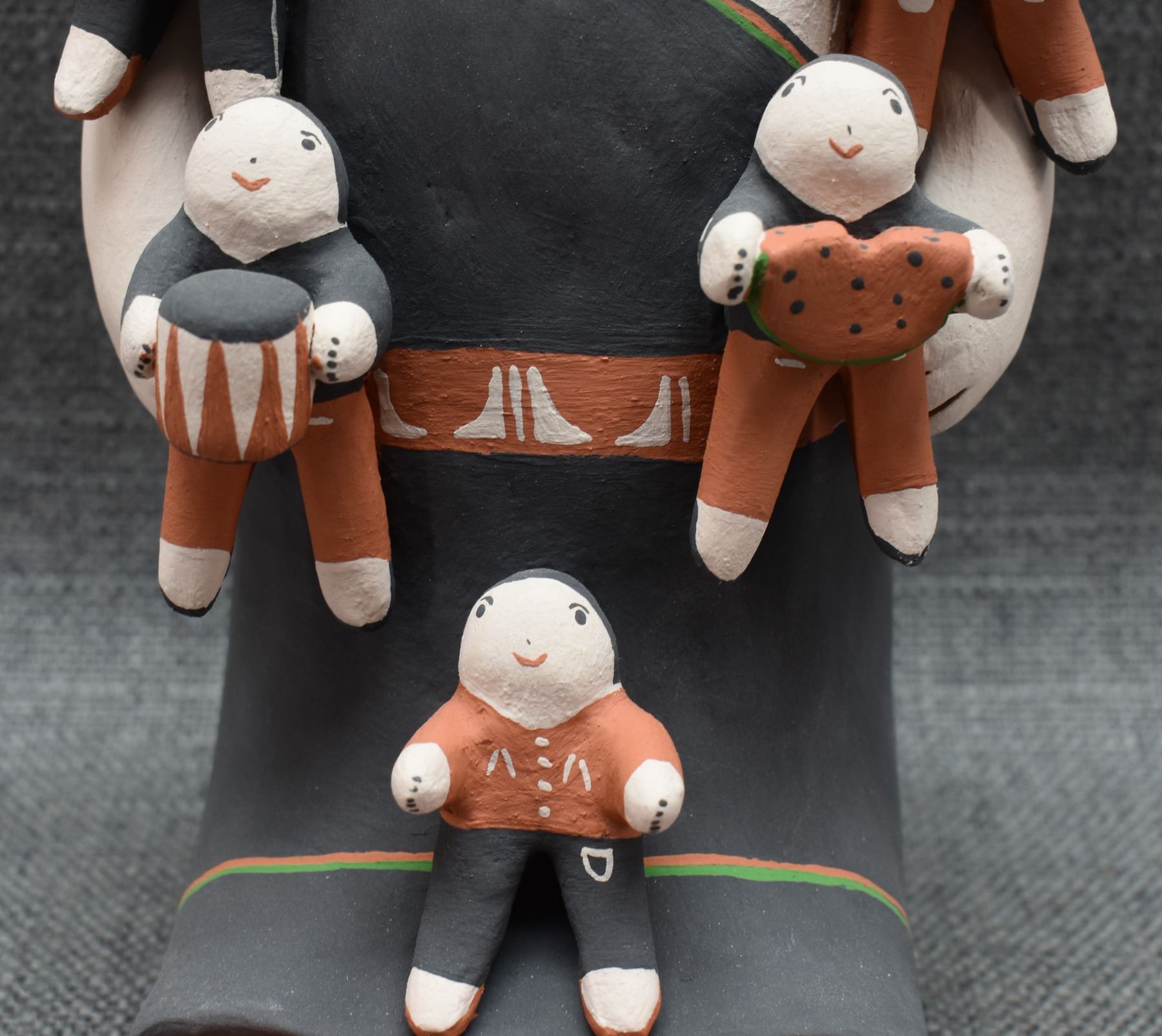 1980-90's Cochiti Indian hand coiled and polychrome painted story teller and babies signed Annette Romero 9" x 4.75" x 5.25"