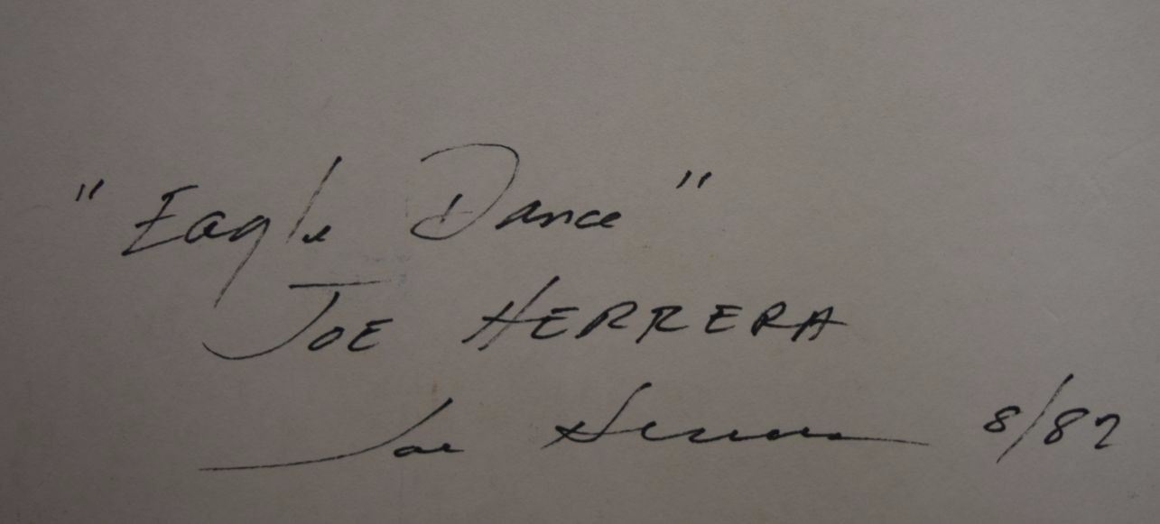 1982 original on paper depicting Eagle Dancer signed Joe Herrera. 14'' x 12''