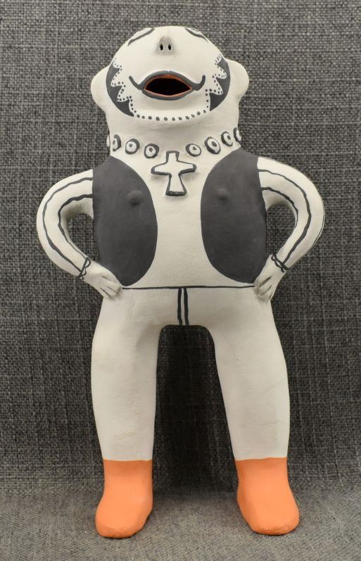 1980-90's Cochiti, hand made and painted pottery figure by Martha Arquero 10.5" x 6.25" x 2.75"