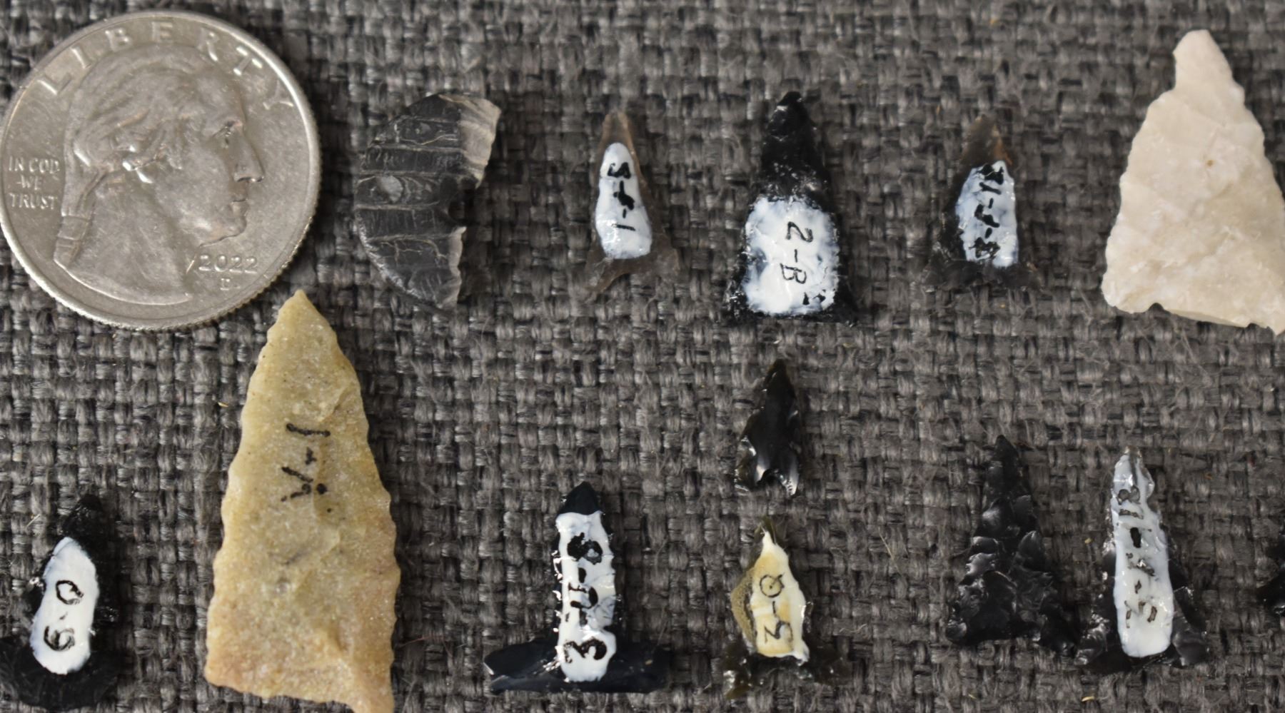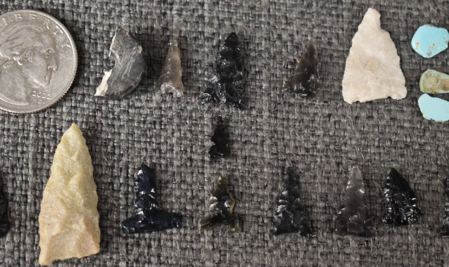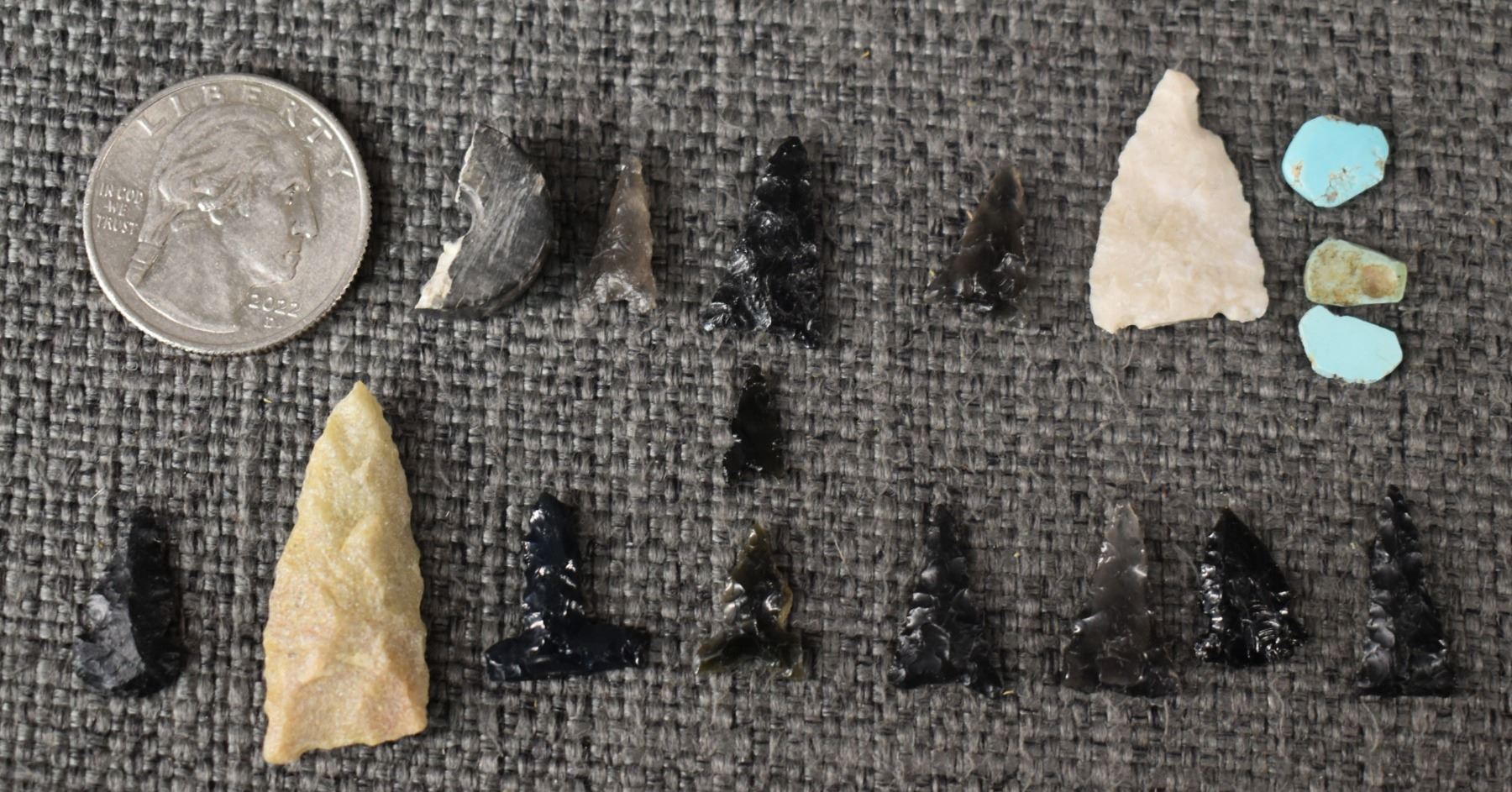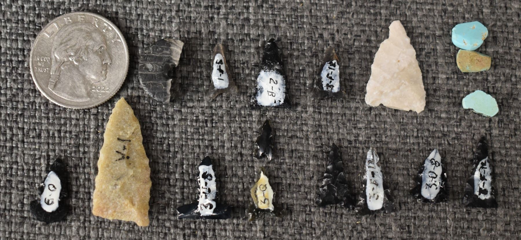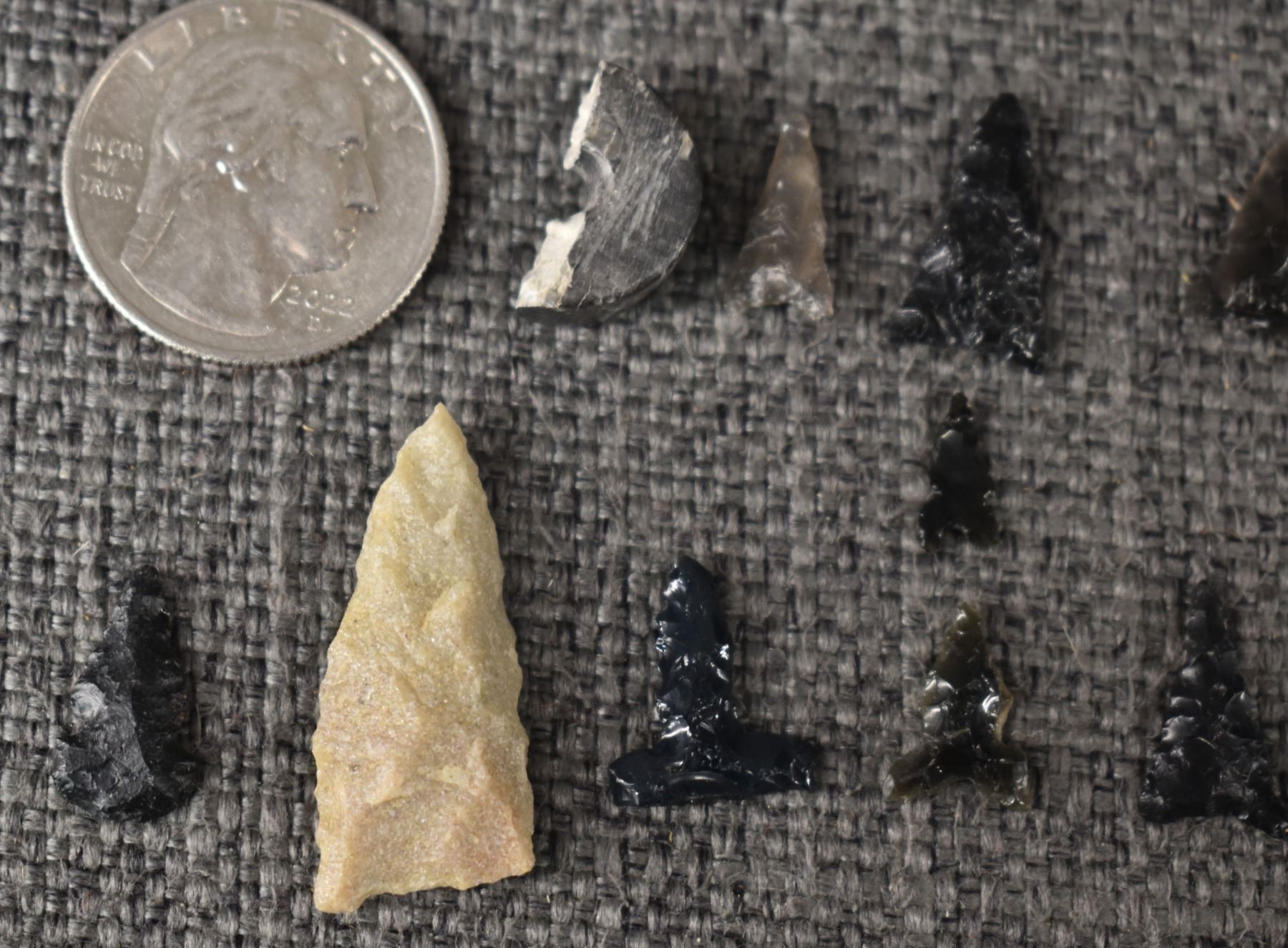 prehistoric anasazi, hand knapped from stone largest 1.25" long