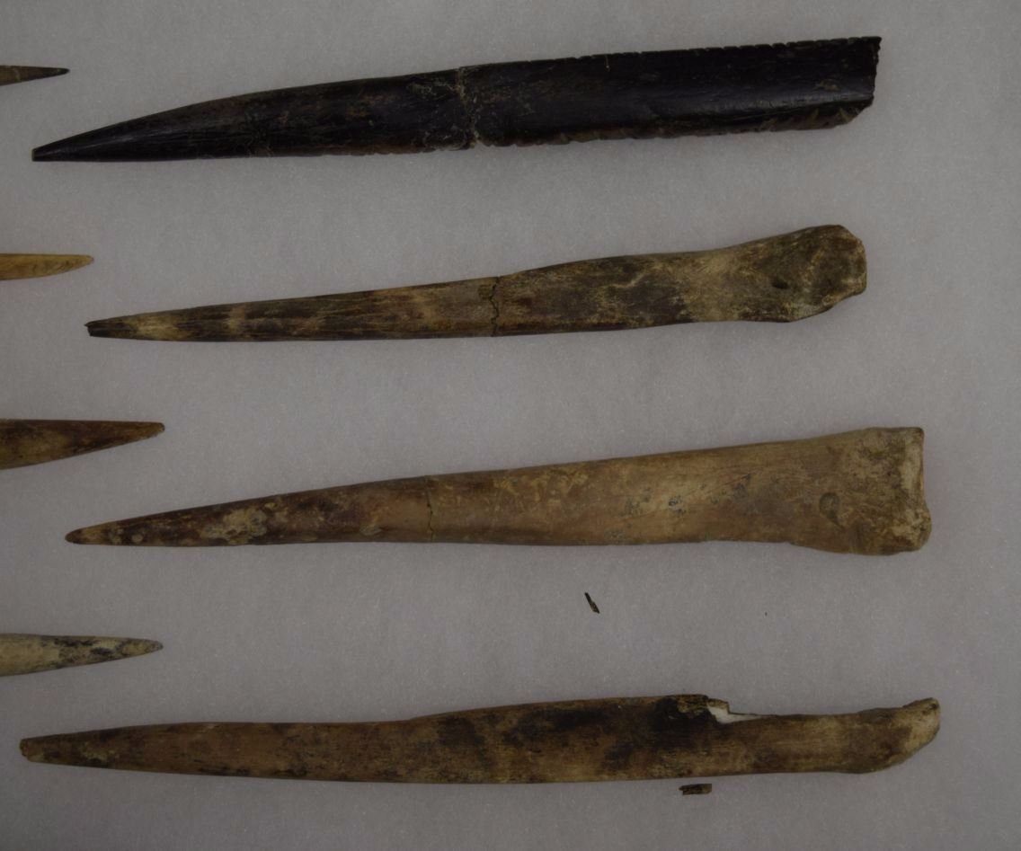 prehistoric and early historic bone awls from private Oregon collection all are approx. 5'' long