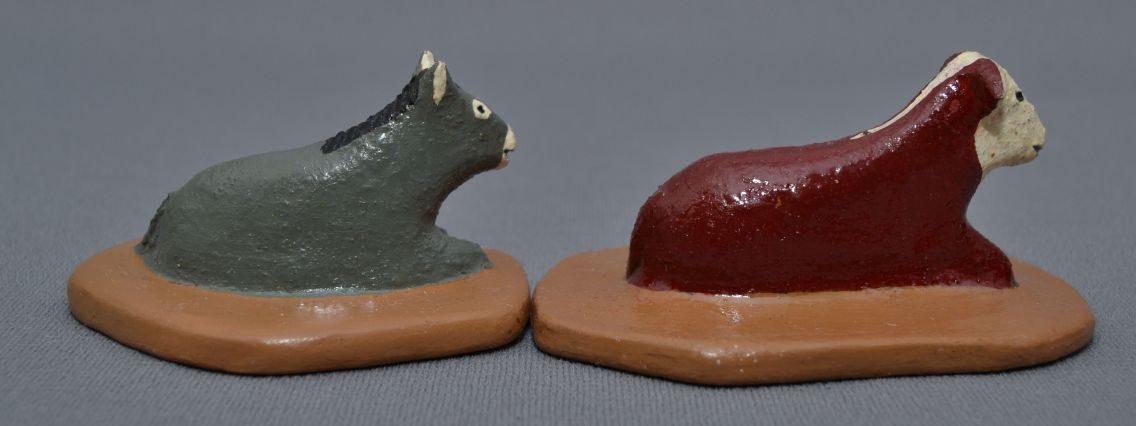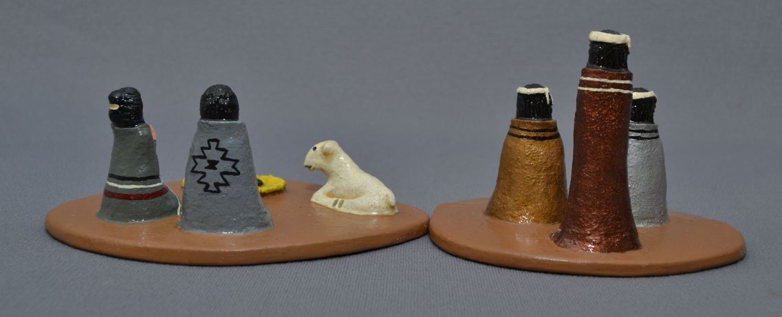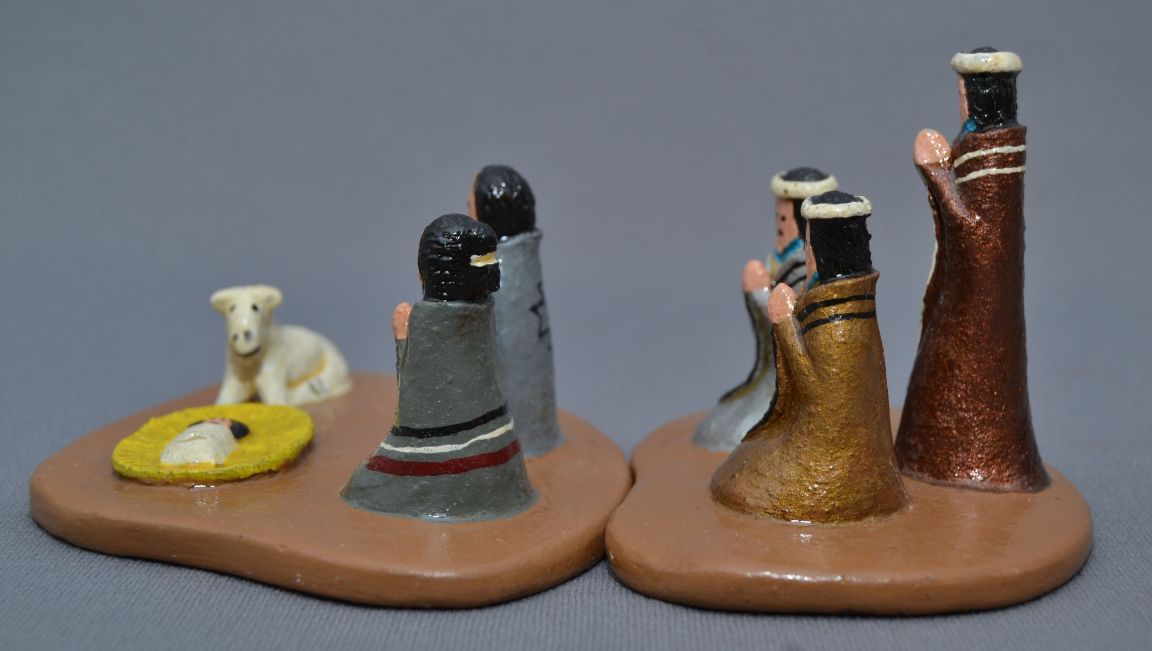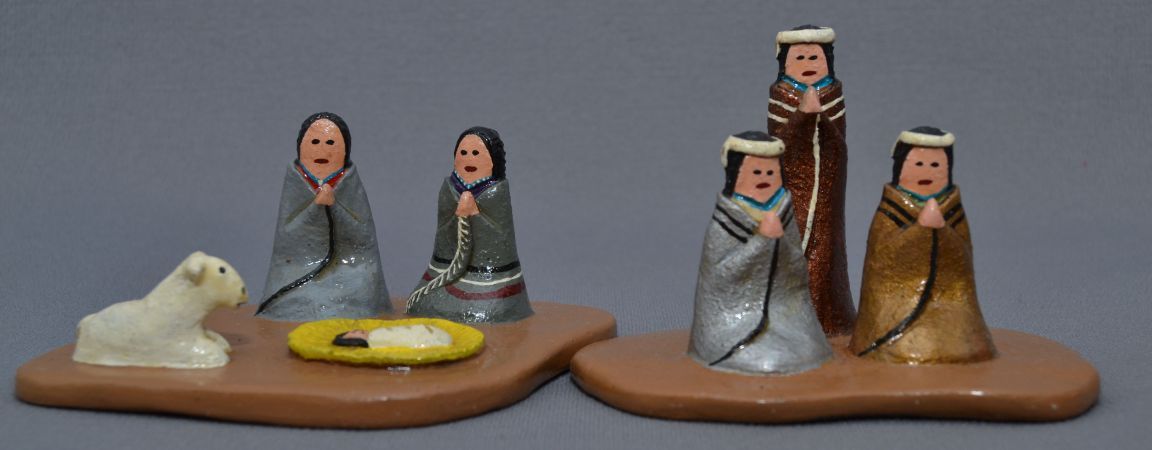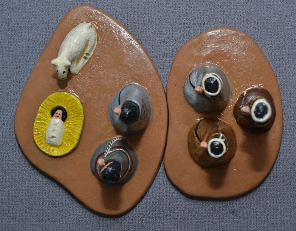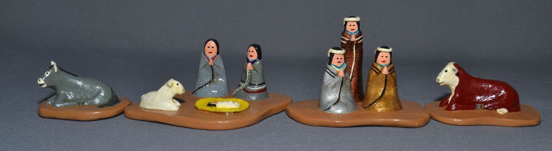 contemporary nativity scene hand painted glazeware signed EM for Elizabeth Manygoats largest 3"x4"x2.75"