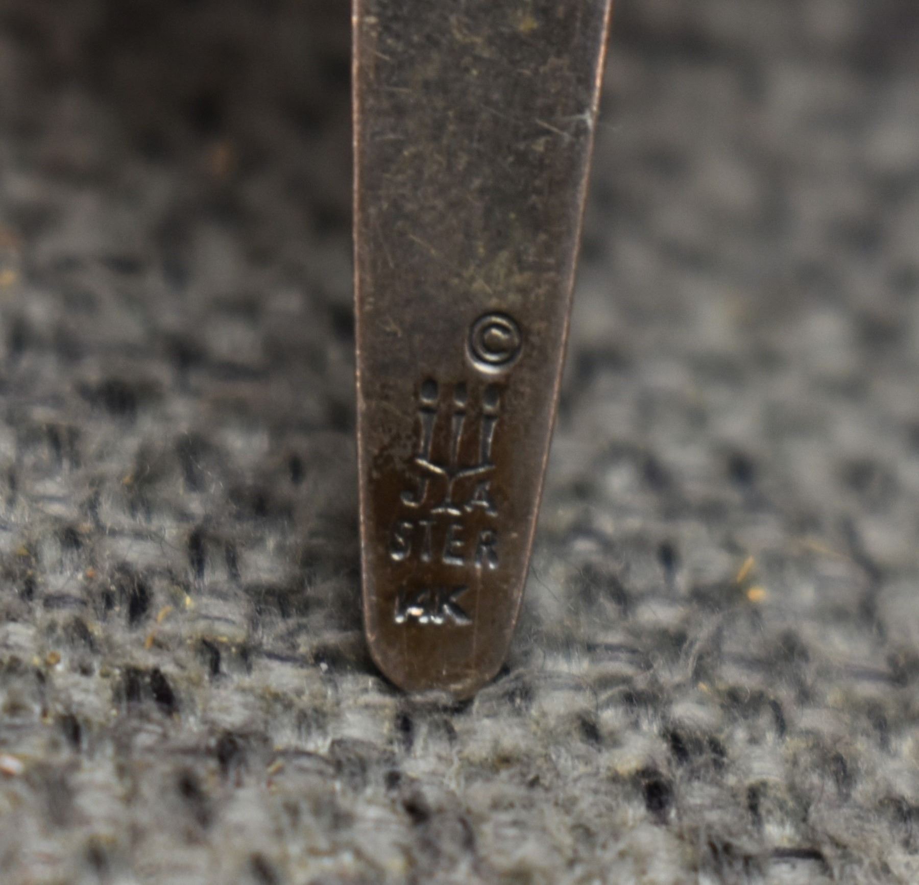 Sterling silver and 14kt gold cactus pin by James Avery. Navajo Sterling silver buffalo by Ray Tracey. Navajo sterling silver stamped design with turquoise by Herbert Pino. Zuni sterling silver and turquoise signed. Buffalo nickel button covers.