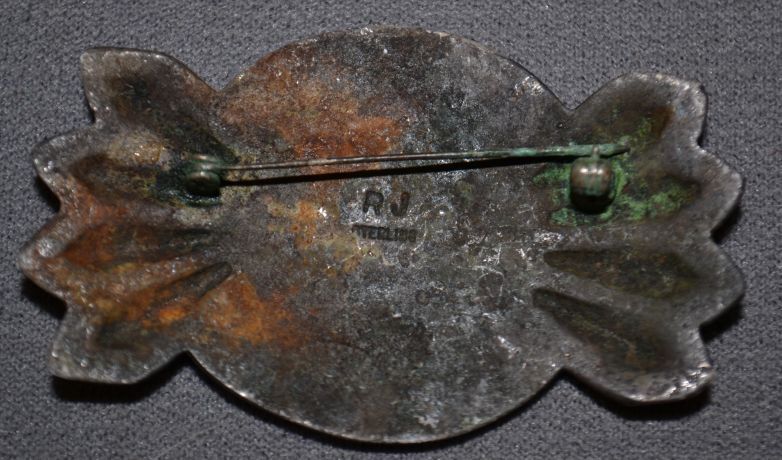 1960s 70s all our sterling silver largest looks like has been in fire 1.4" x 2.25"