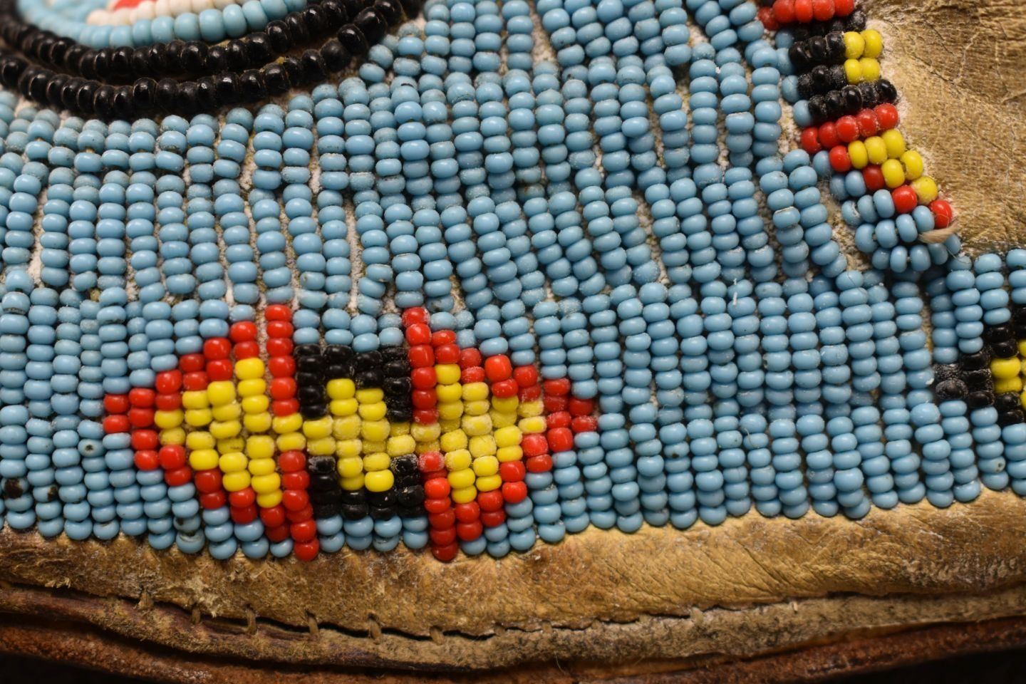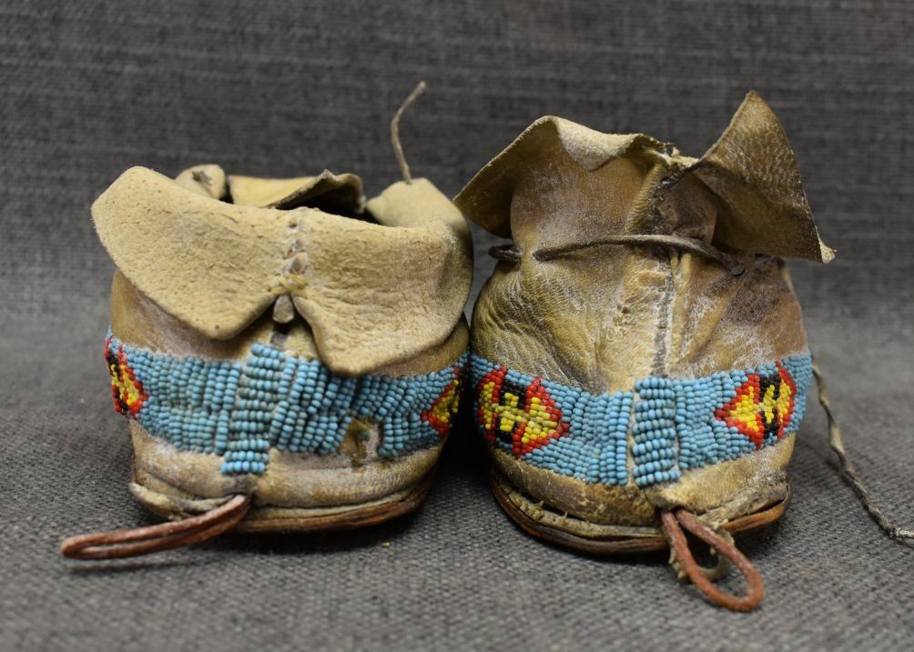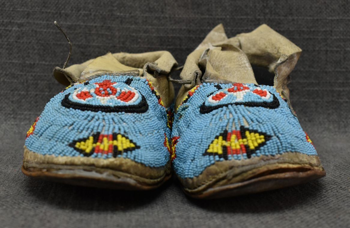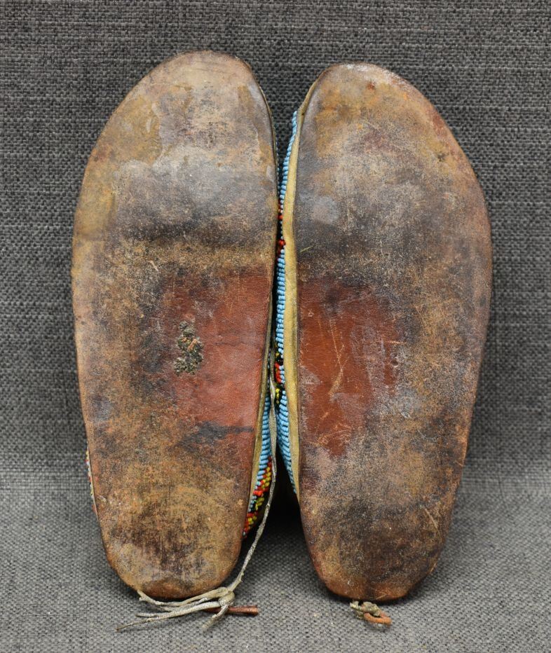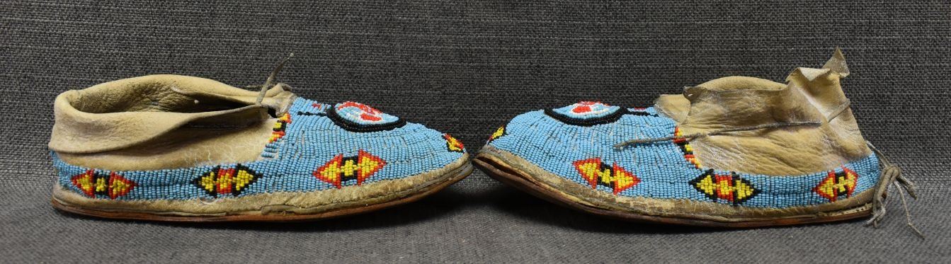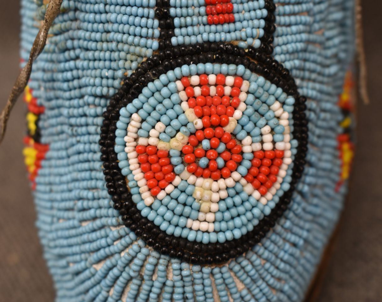 1930's Comanche. Sinew sewn beaded design on commercial leather. 3'' x 9'' x 4''
