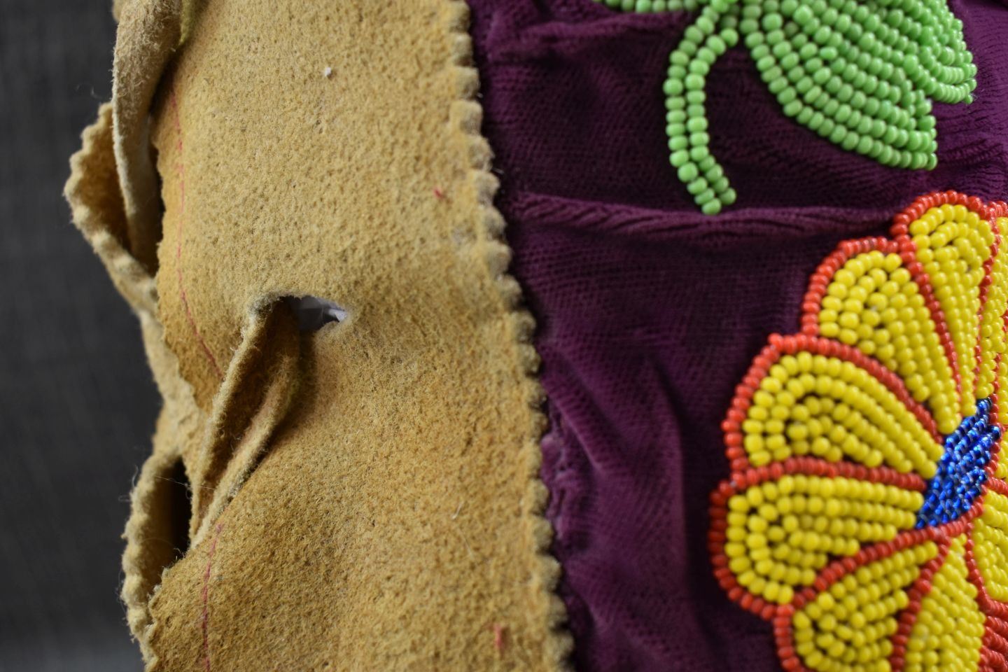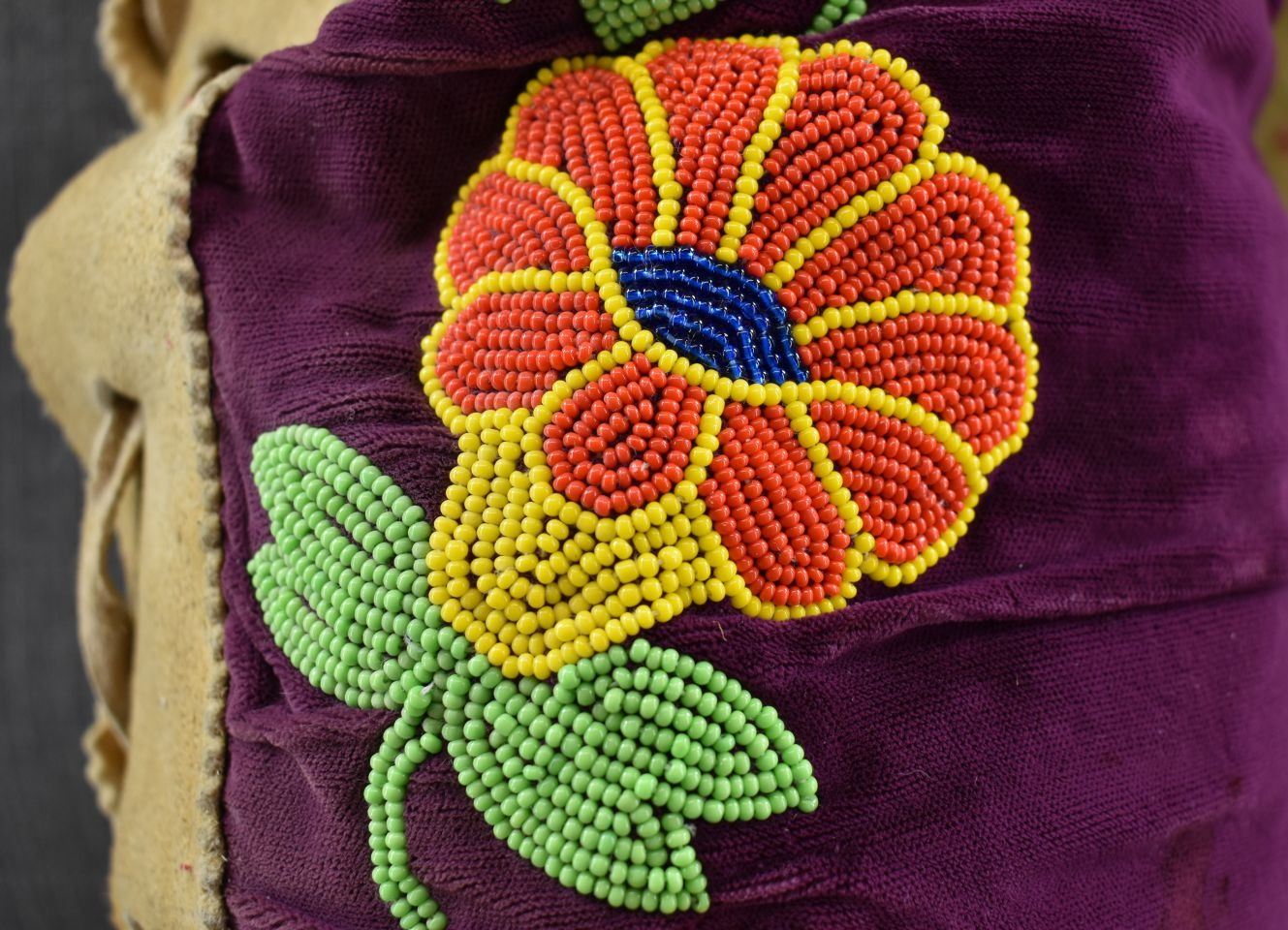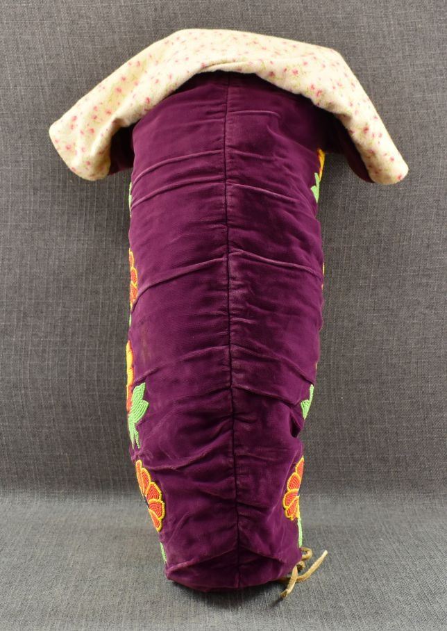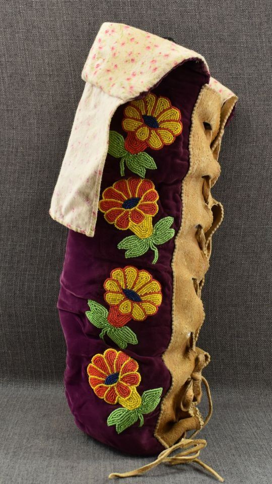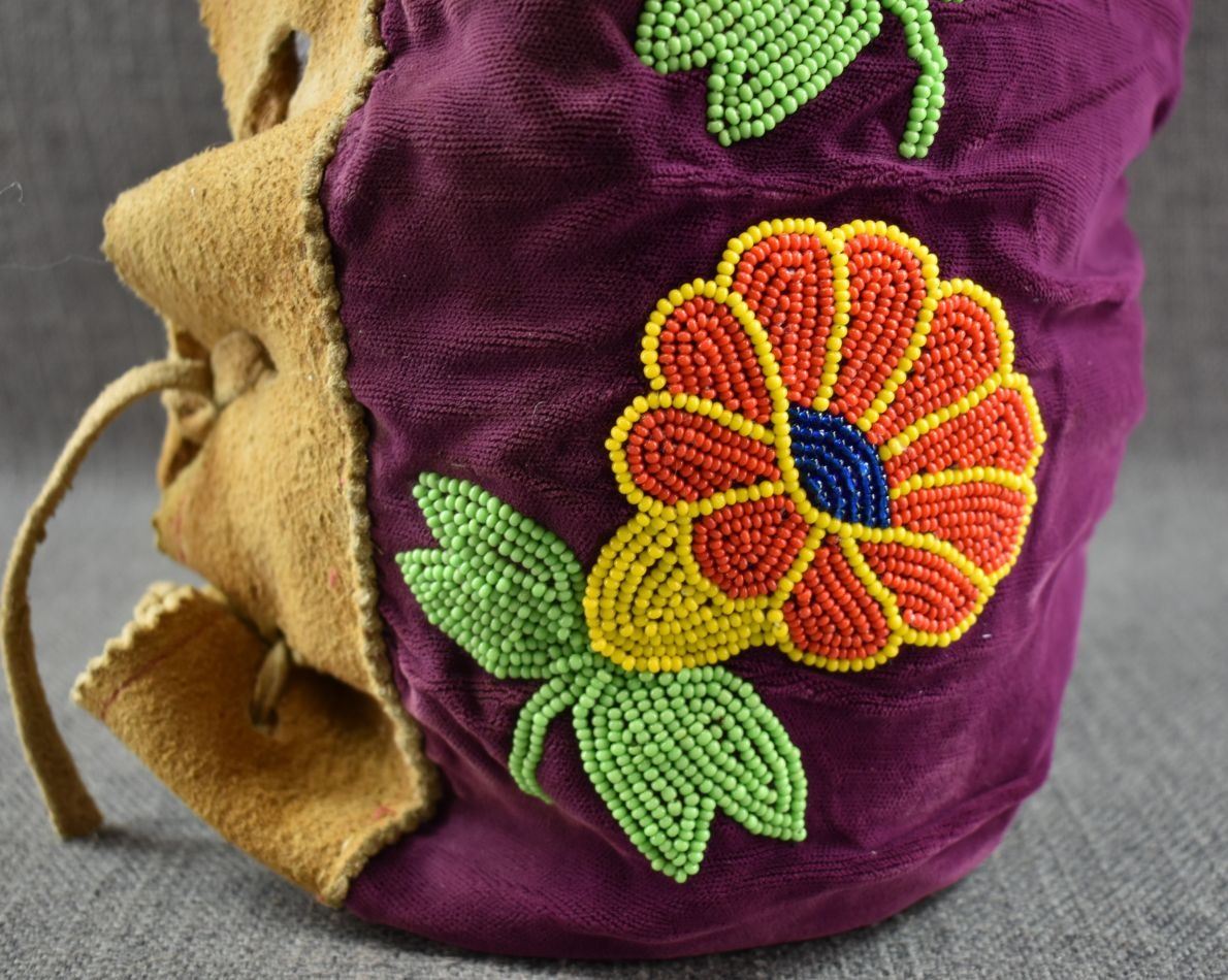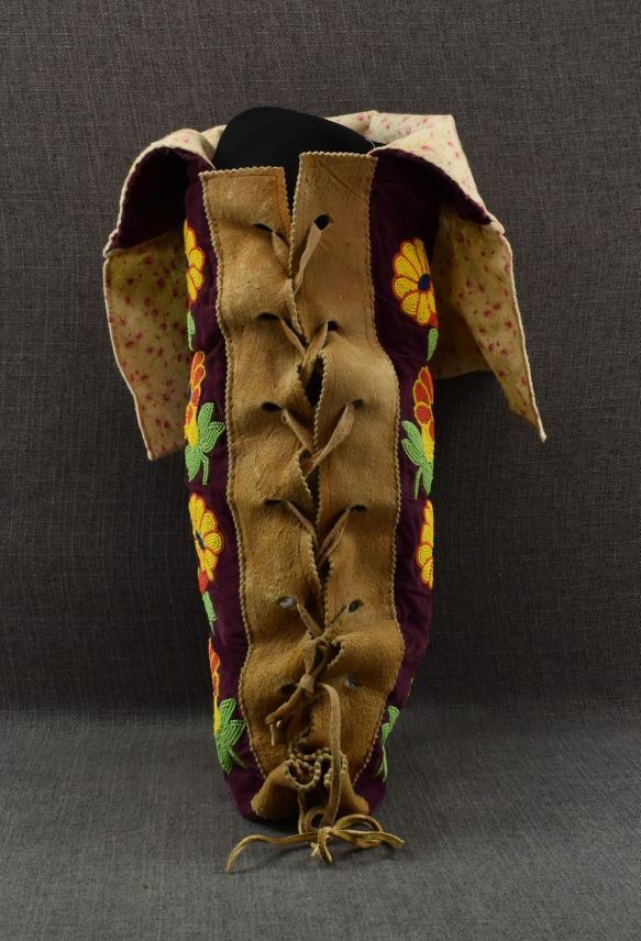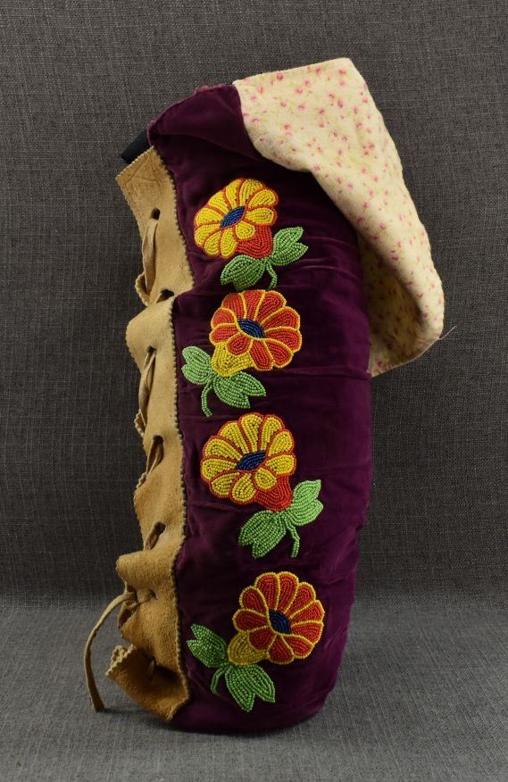 20th century. Cree . Floral beaded design on cloth and moose hide trim. 24'' x 4'' x 10''