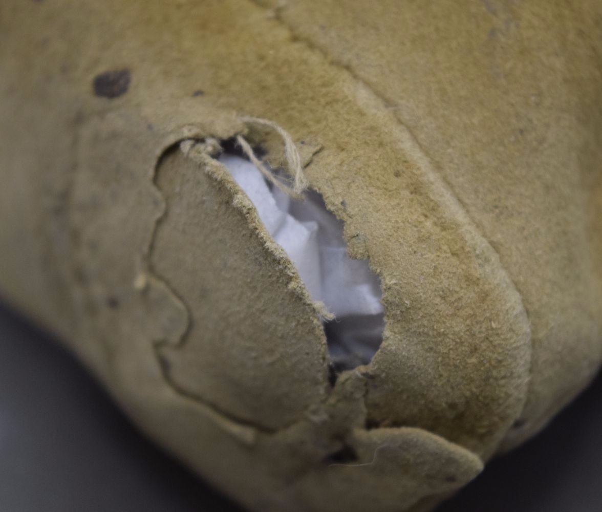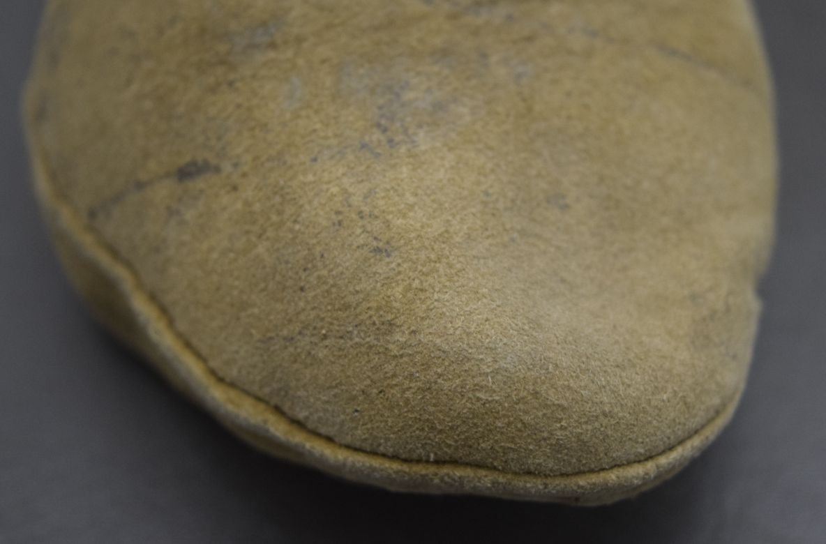 1920's native tanned hide showing wear on soles 8'' x 3'' x 9''