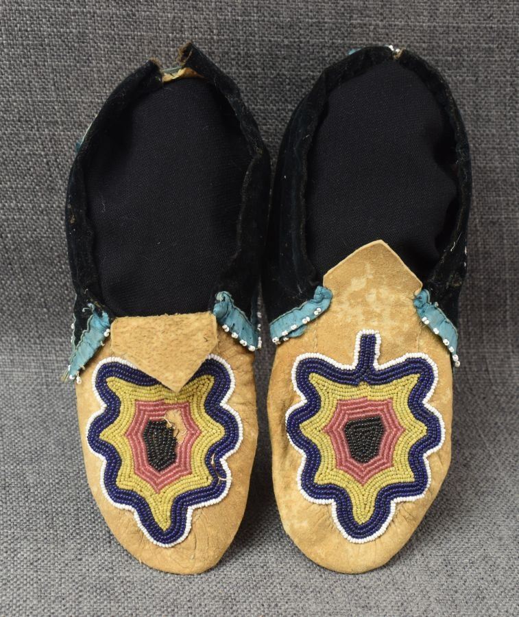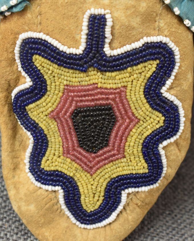 20th century Cree, hand made from native tanned leather ribbon and cloth with thread sown beaded design 2.25" x 8.25" x 3.25" have bead loss
