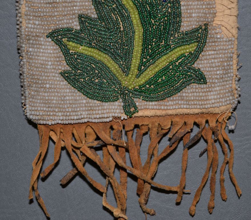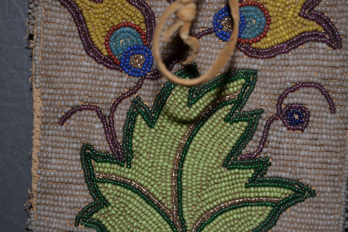 1920's hand made on commercial hide with beaded front and back floral design has bead loss 15" x 5"