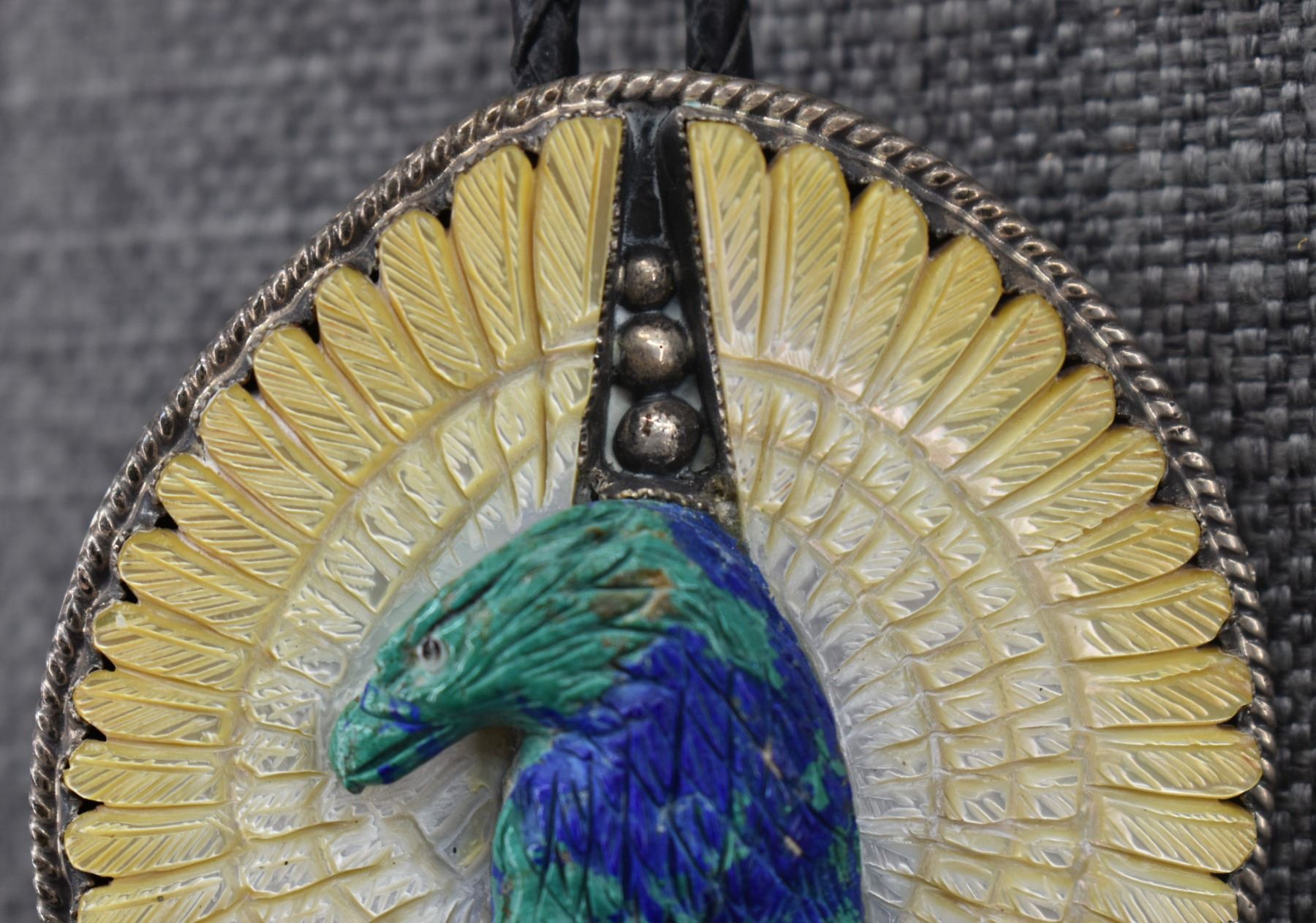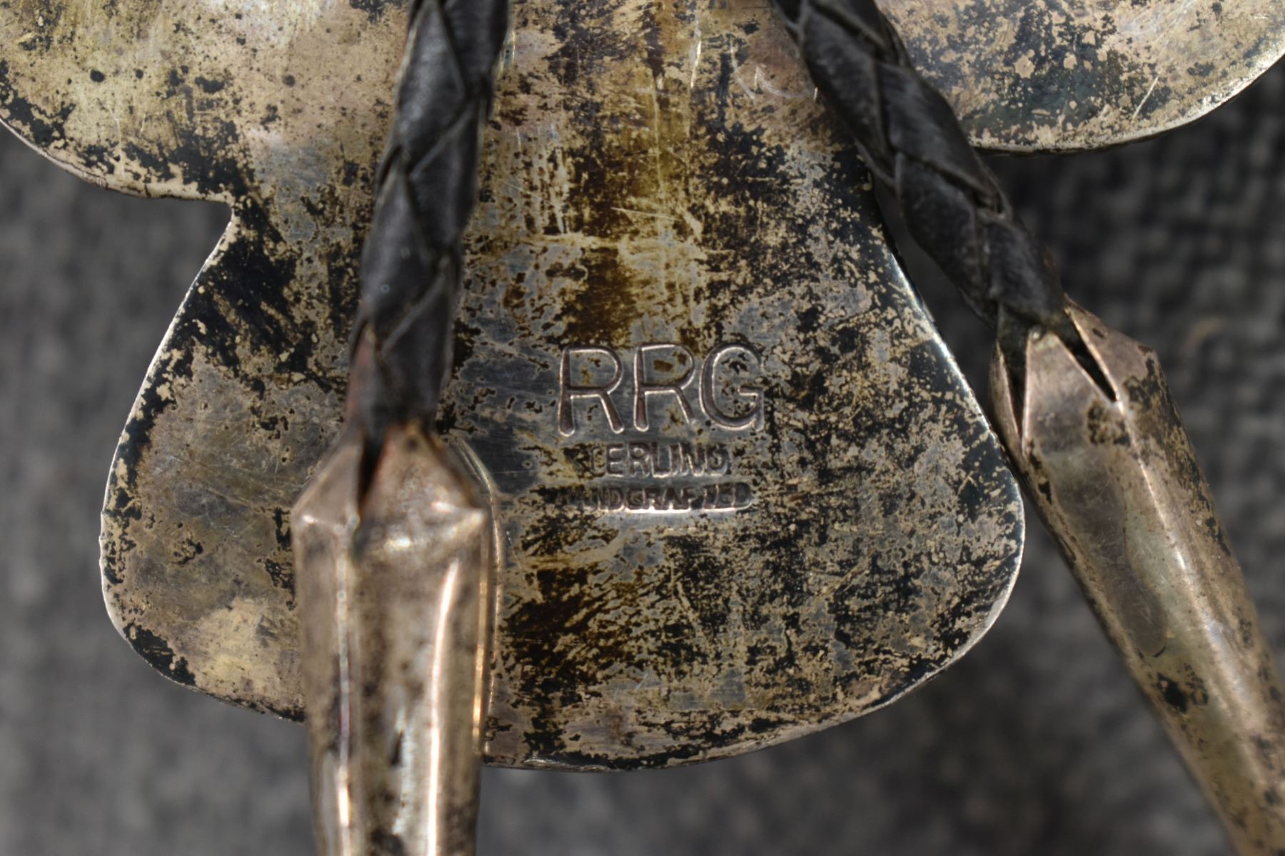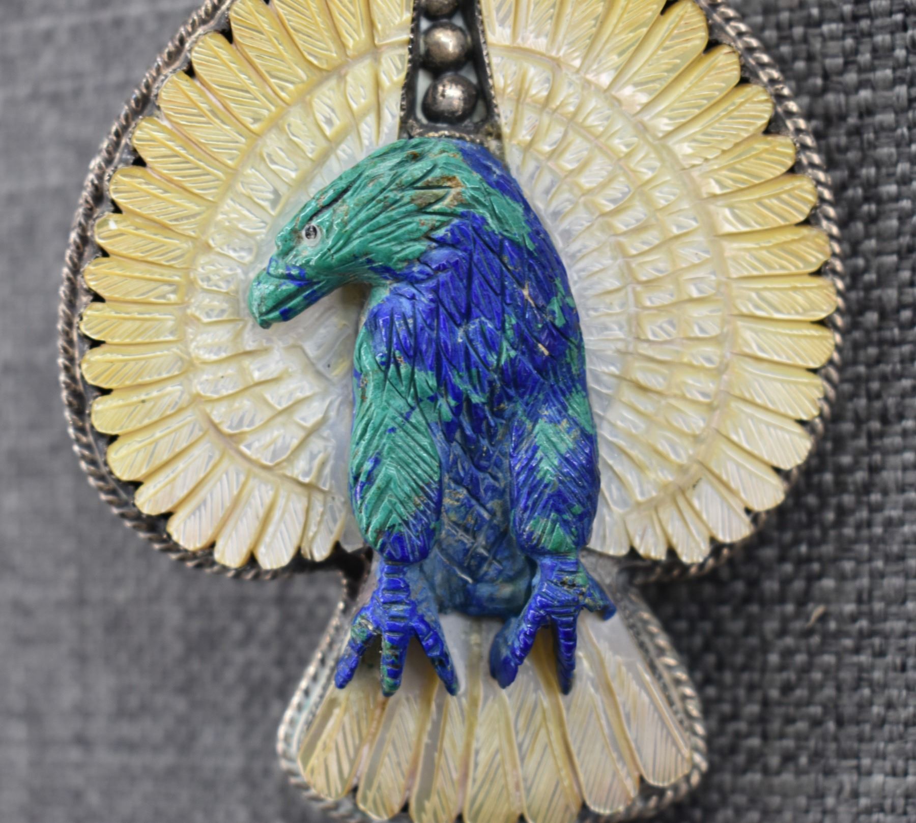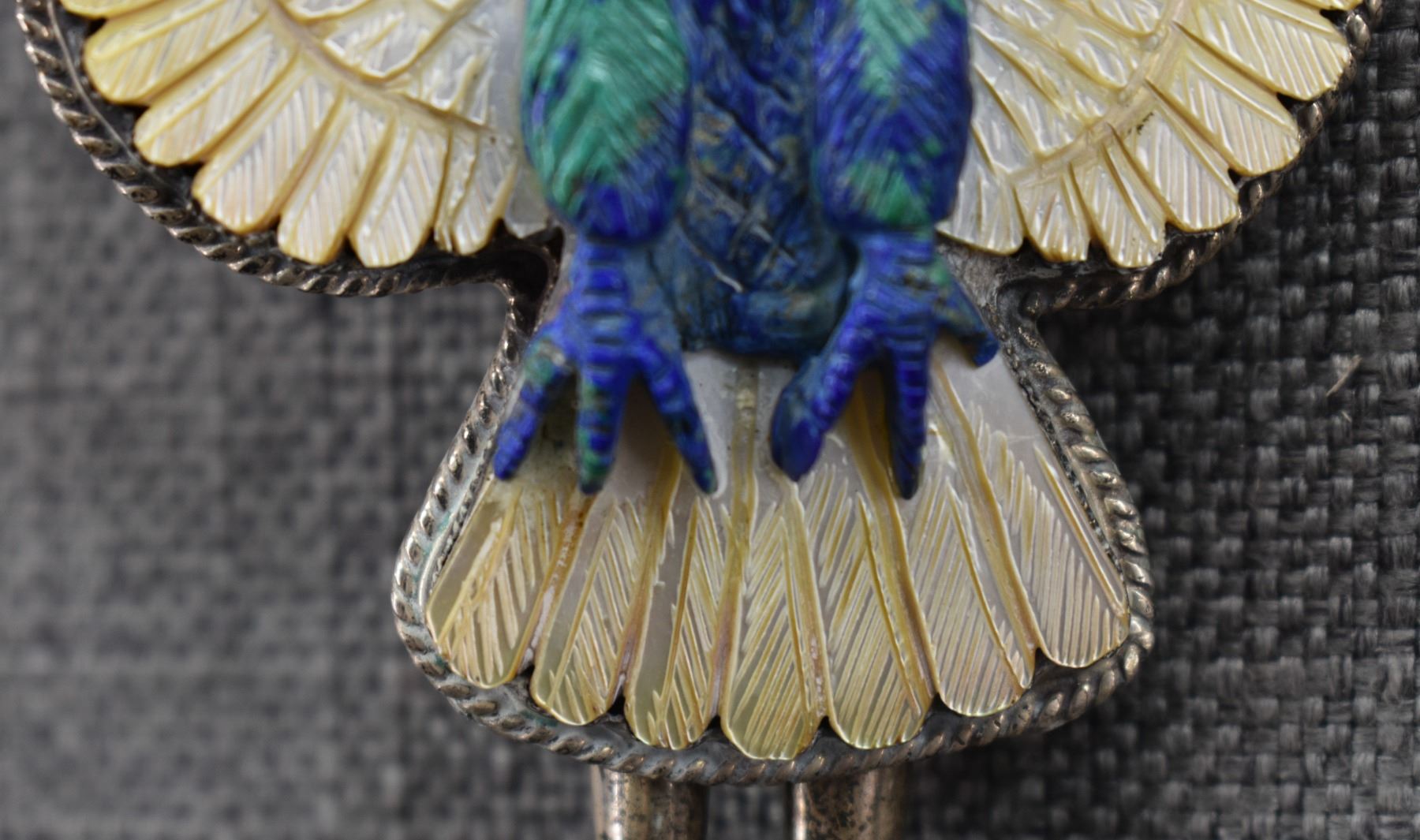 1980-90's decorative, sterling silver with carved shell and malachite eagle signed RRG, 3.5" x 2.75" total weight 113 grams