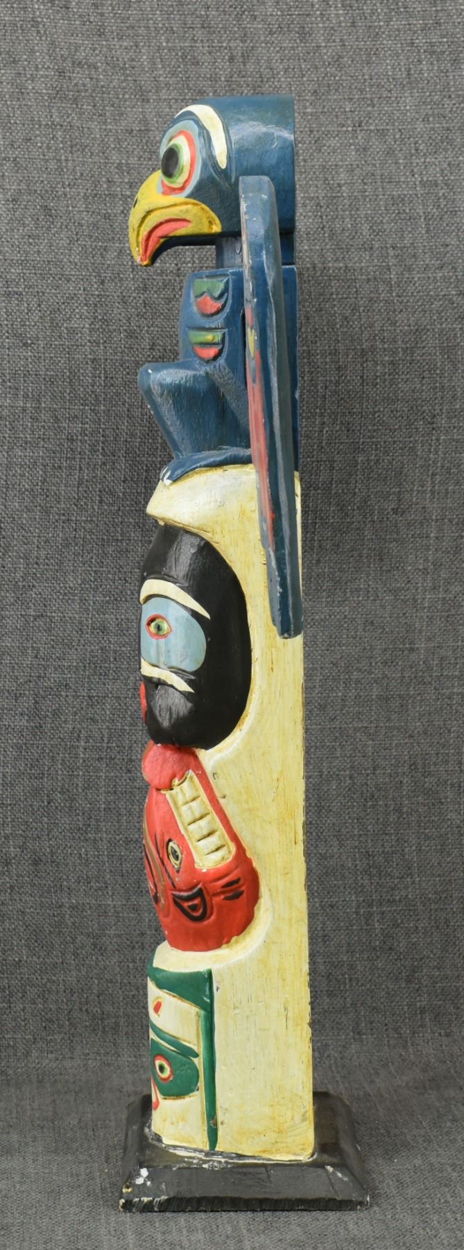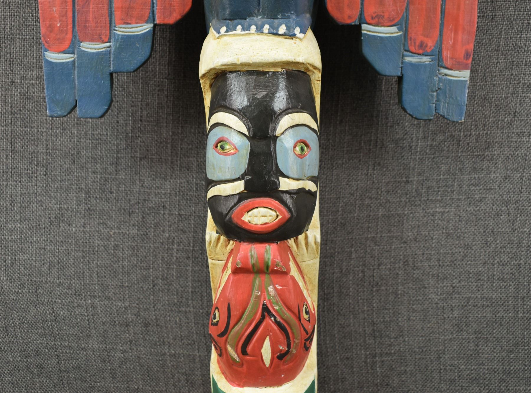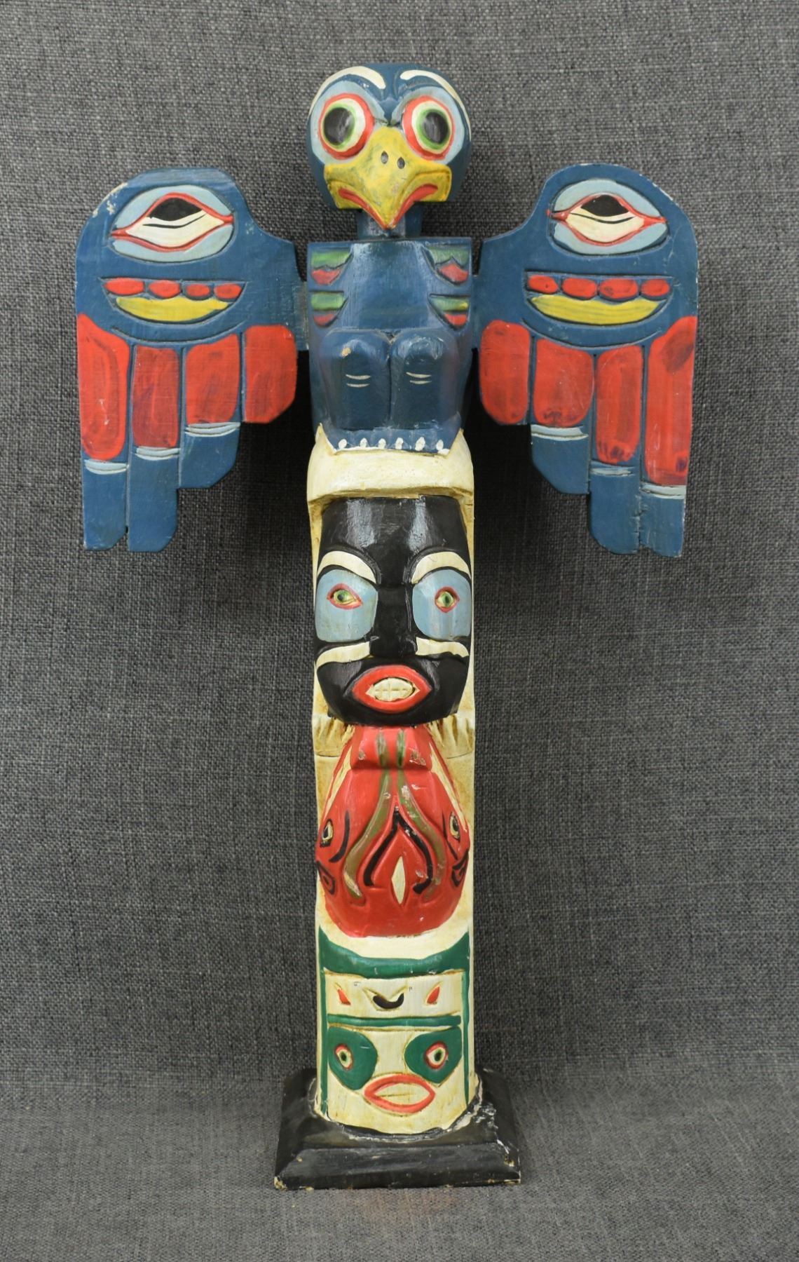 20th century decorative, carved and painted totem pole 20" x 11.25"