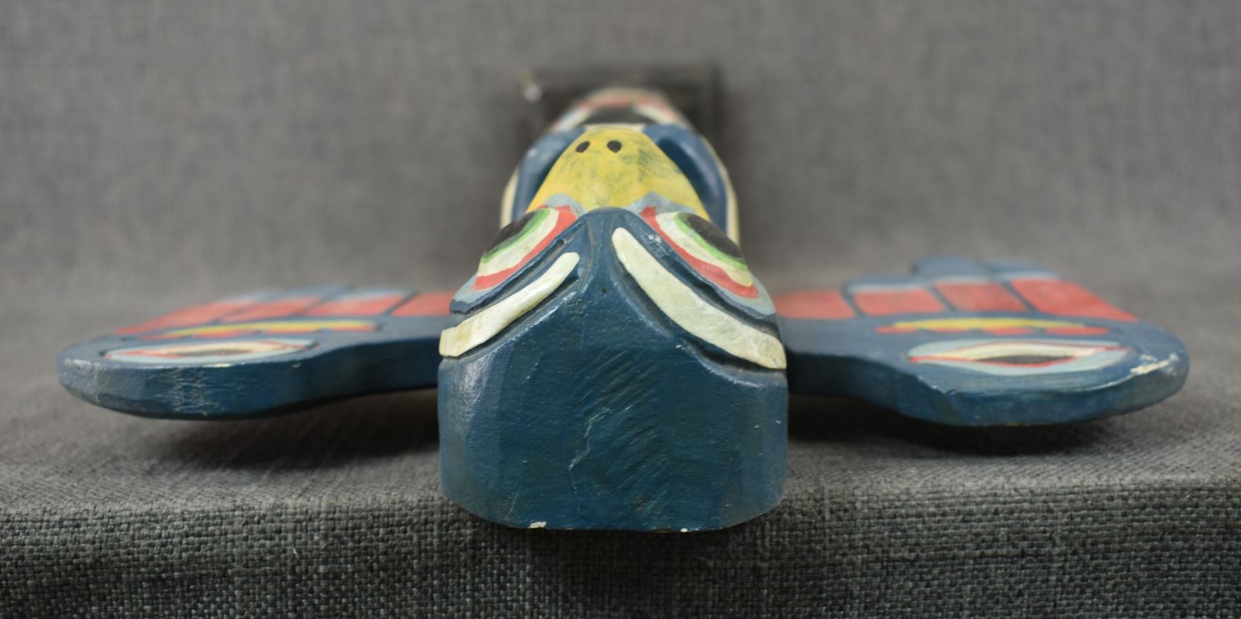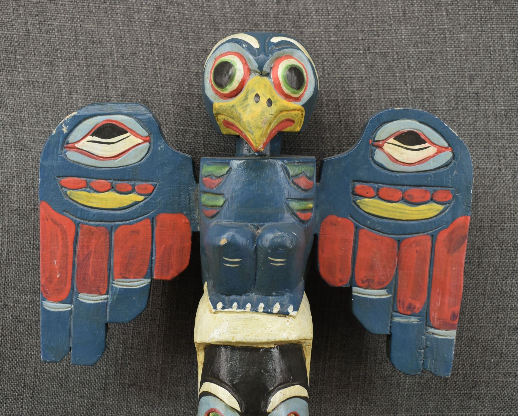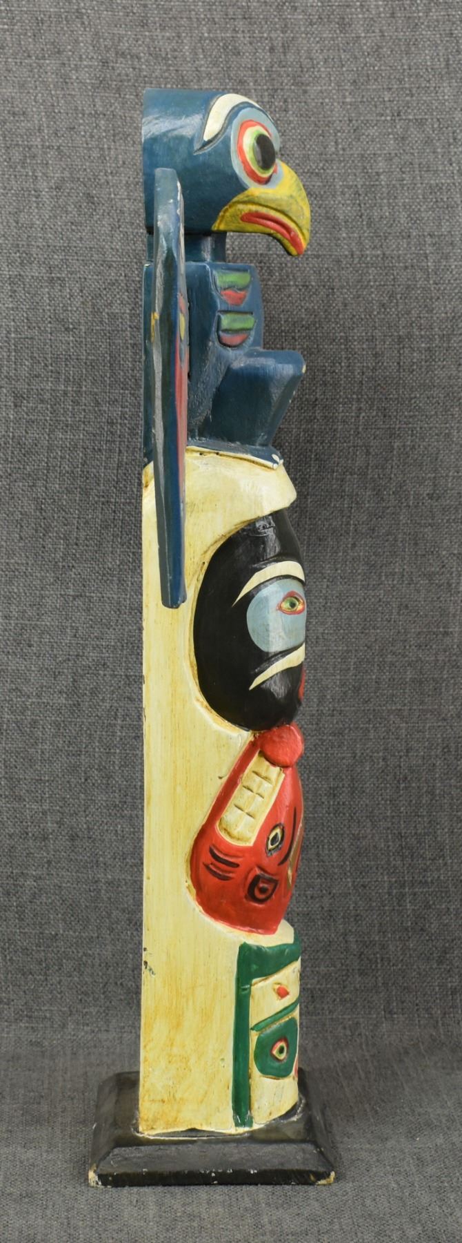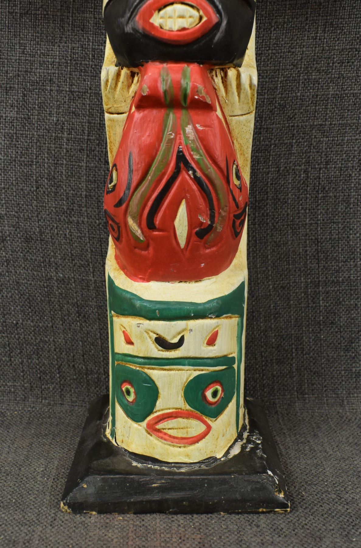 20th century decorative, carved and painted totem pole 20" x 11.25"