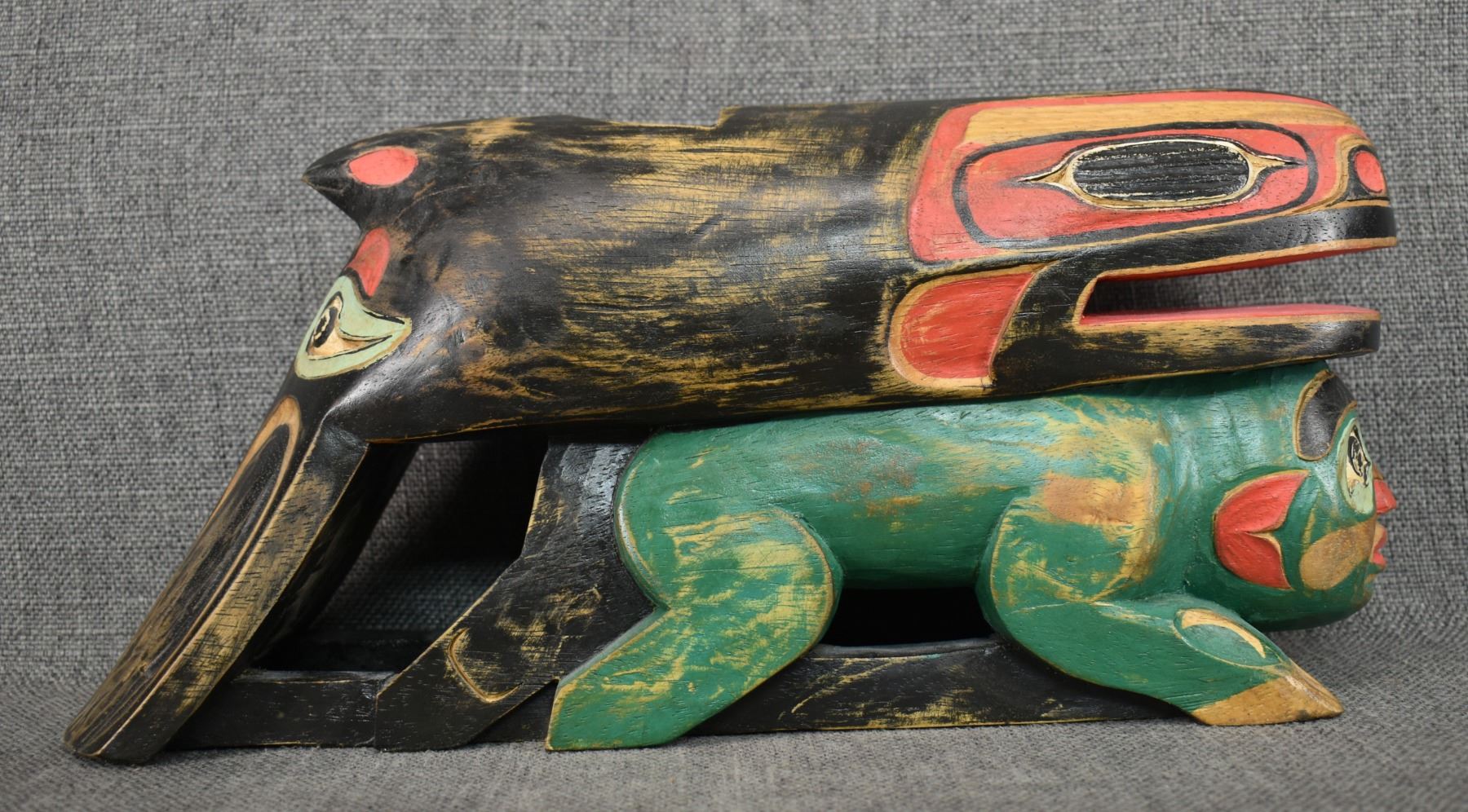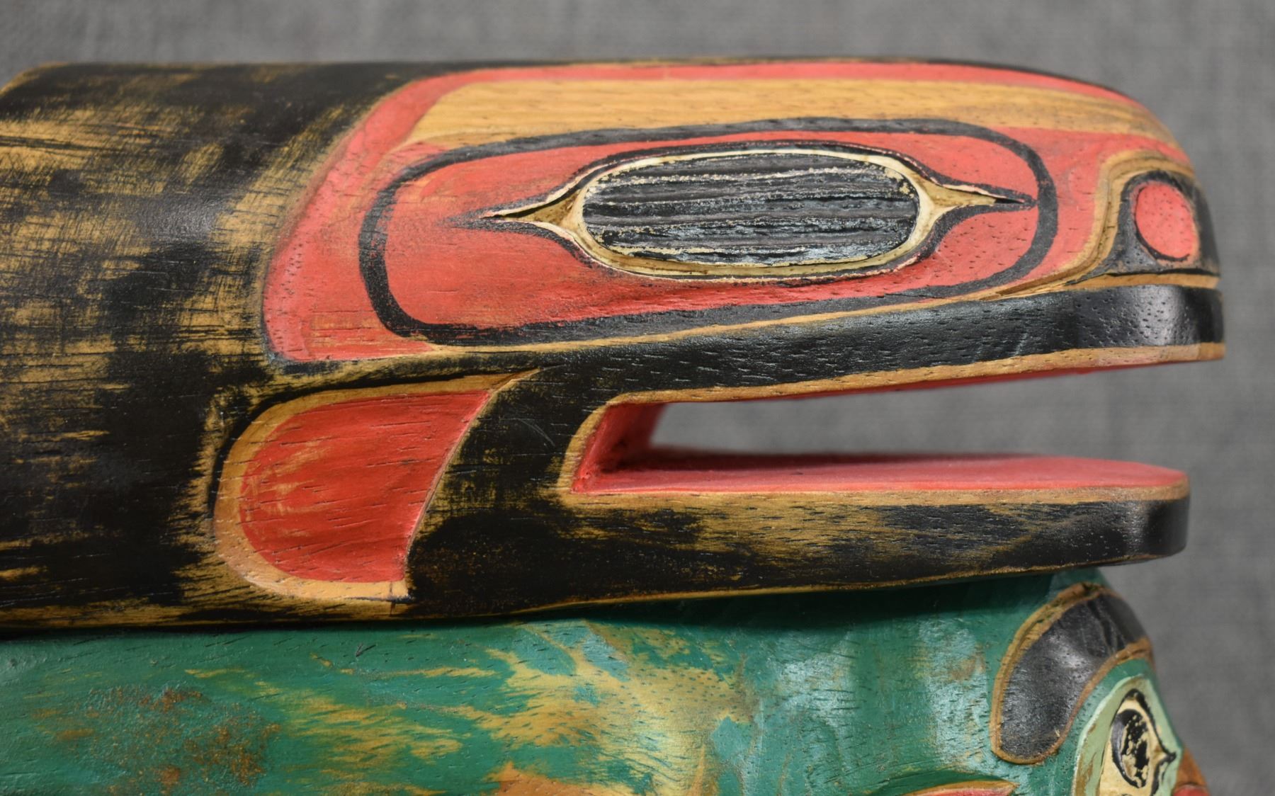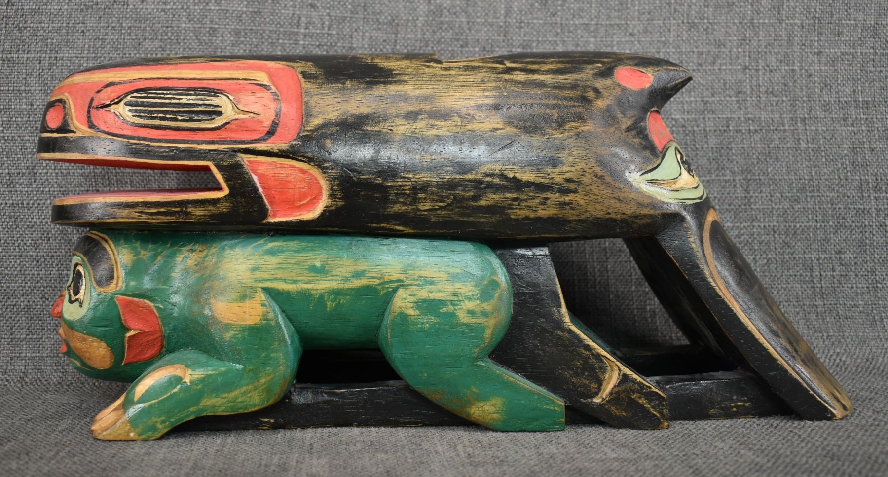 20th century. Carved and painted design decorative wood carving. 7'' x 14'' x 4''