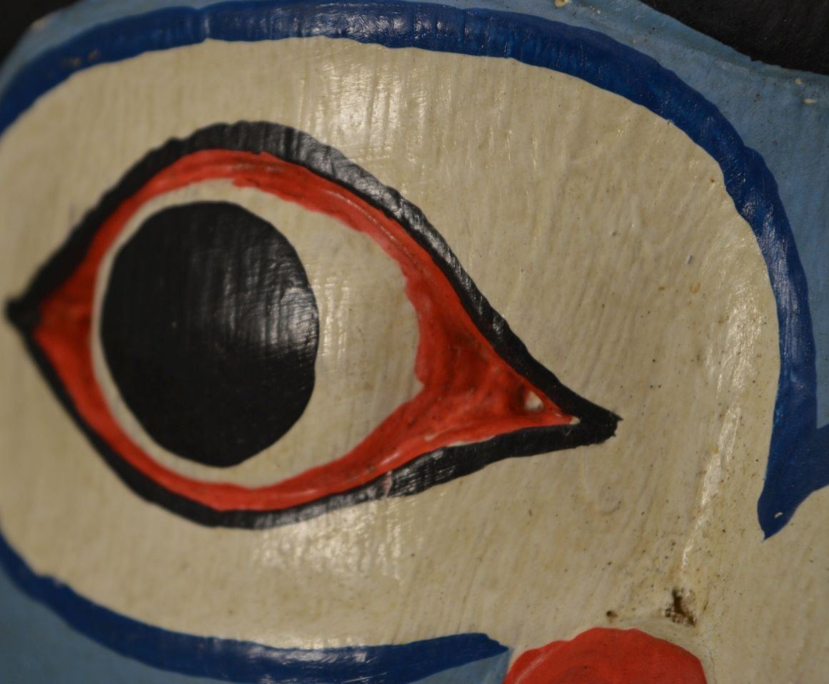 vintage hand carved and painted decorative wood rattle, 16'' x 6'' x 6''