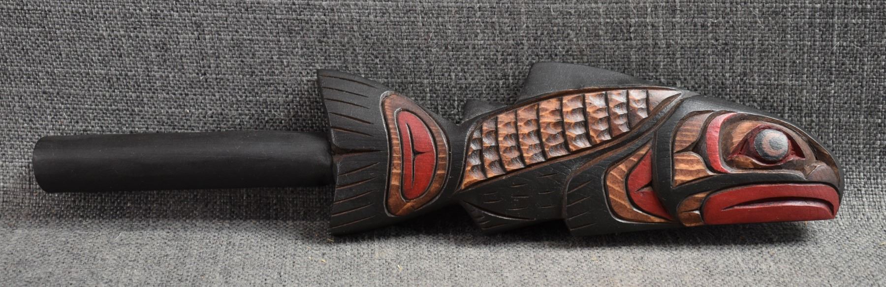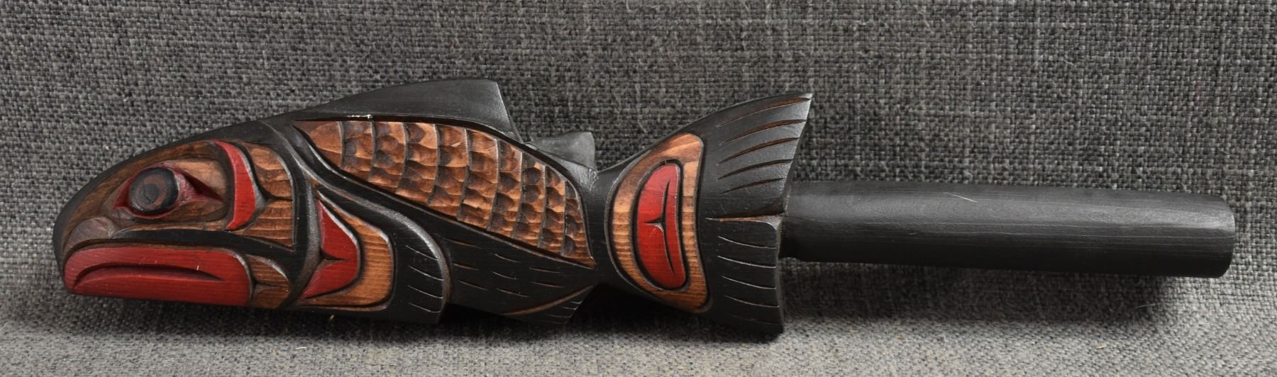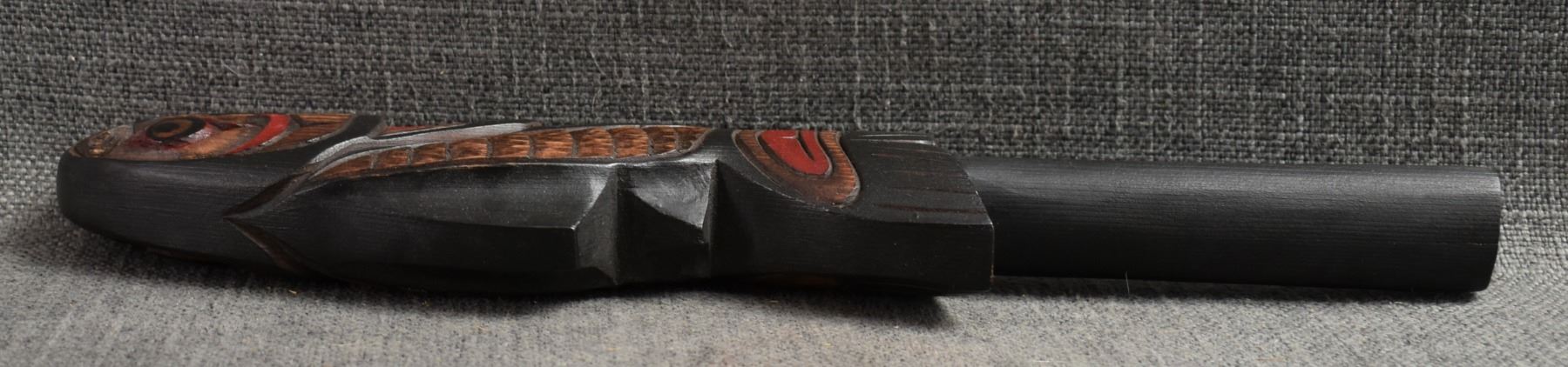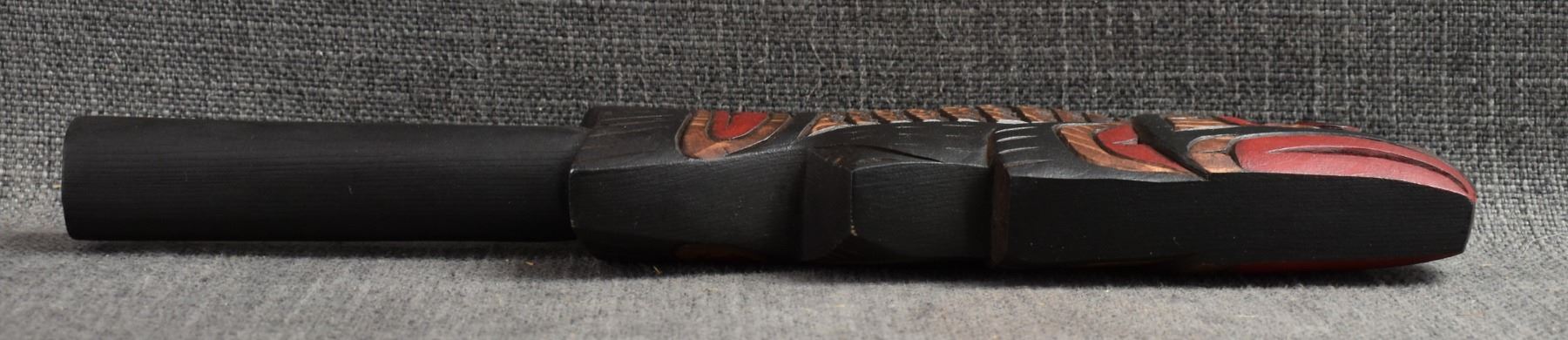 20th century. Decorative. Carved and painted wooden rattle. 13'' x 3'' x 1''