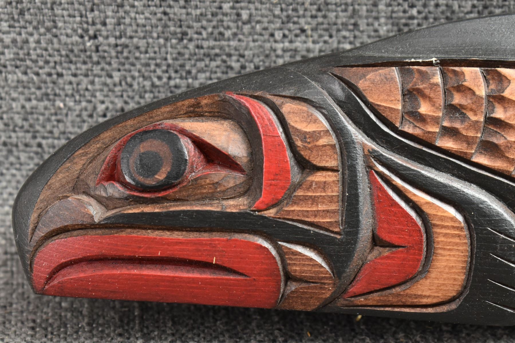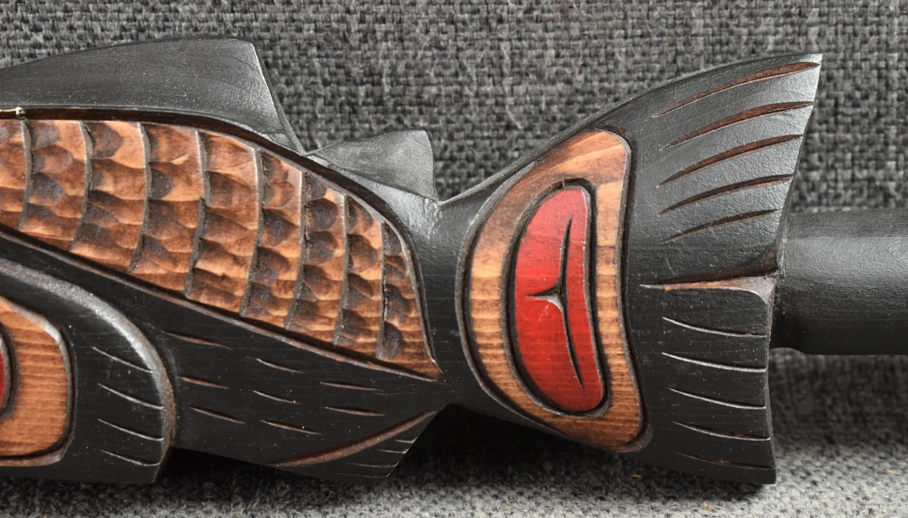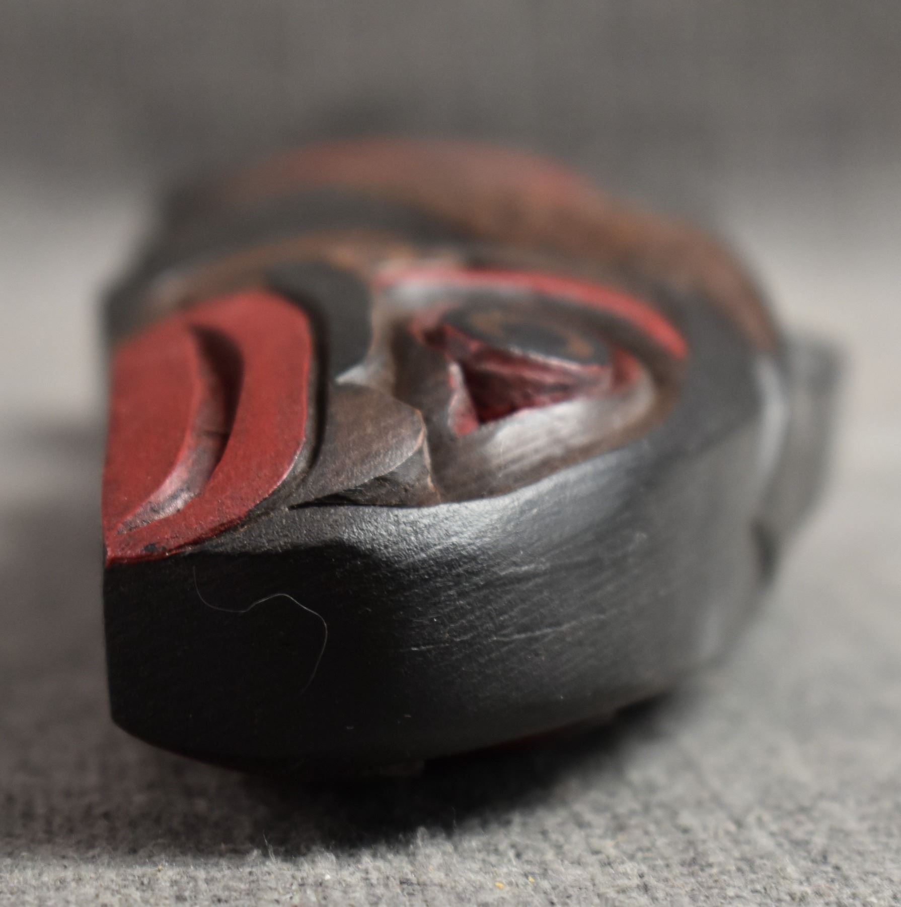 20th century. Decorative. Carved and painted wooden rattle. 13'' x 3'' x 1''