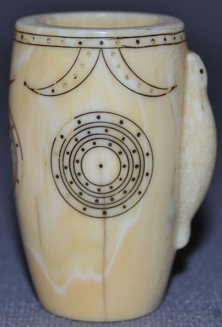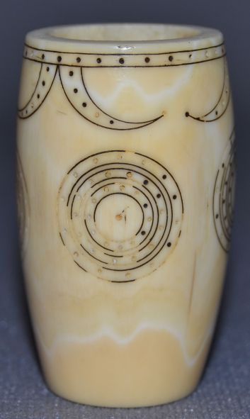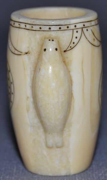 1930s 40s carved and scraffito toothpick holder 1.75"x1"