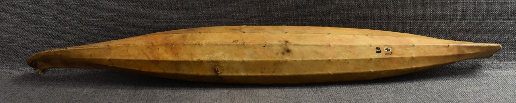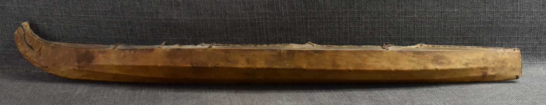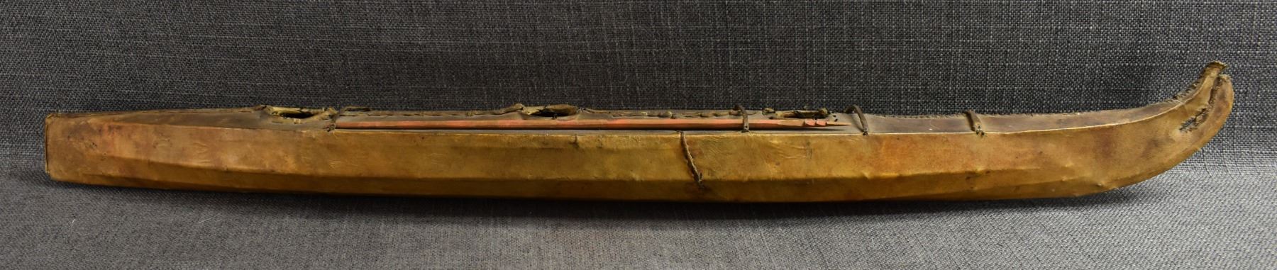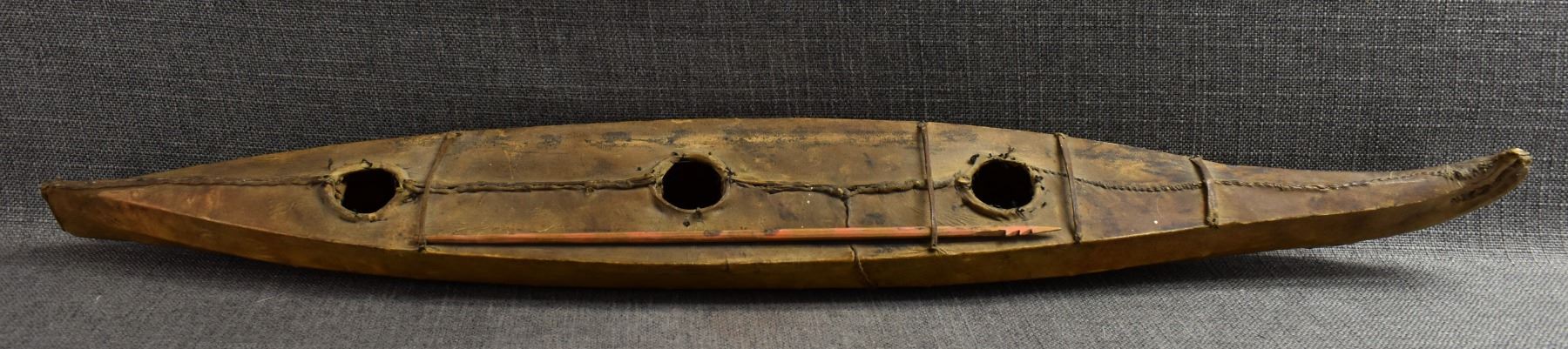 1920s eskimo. hide on wood frame with small harpoon 31" x 2" x 4"