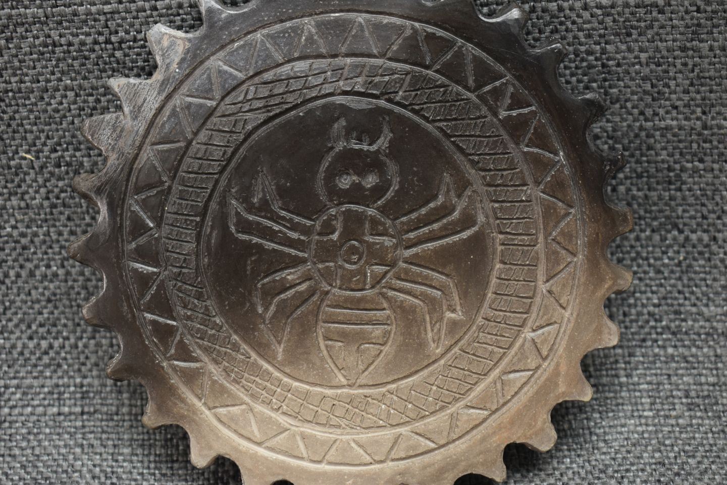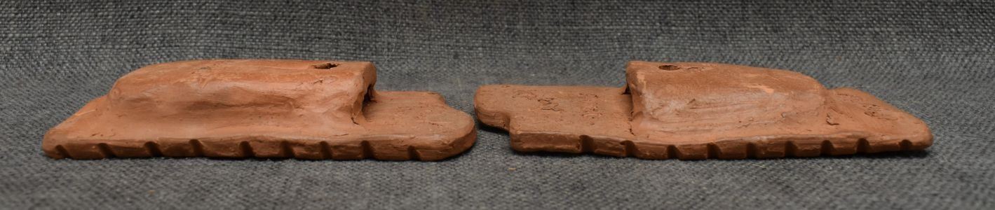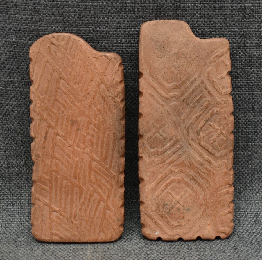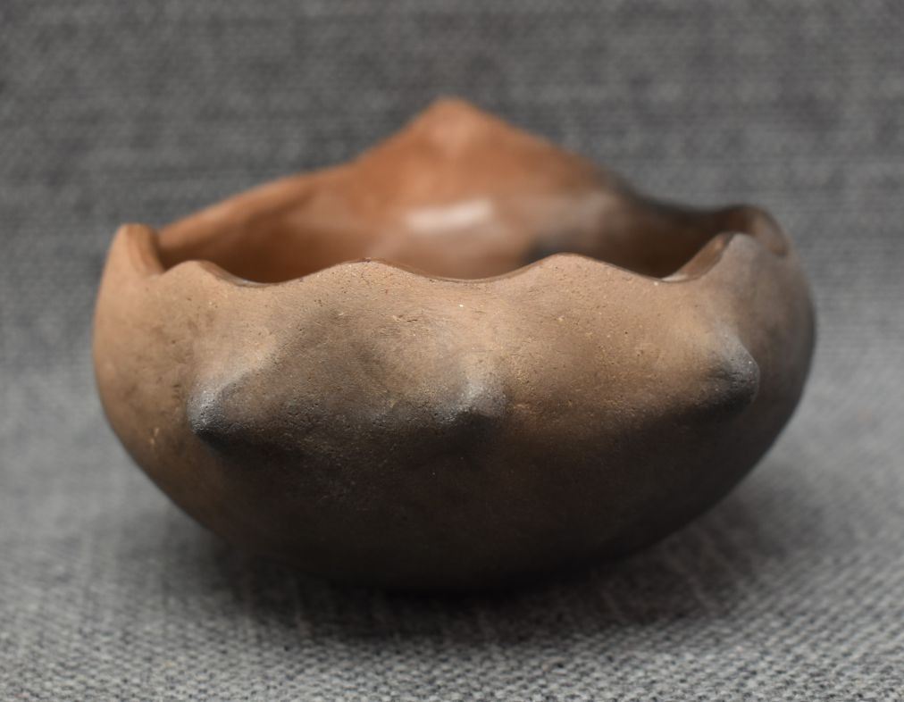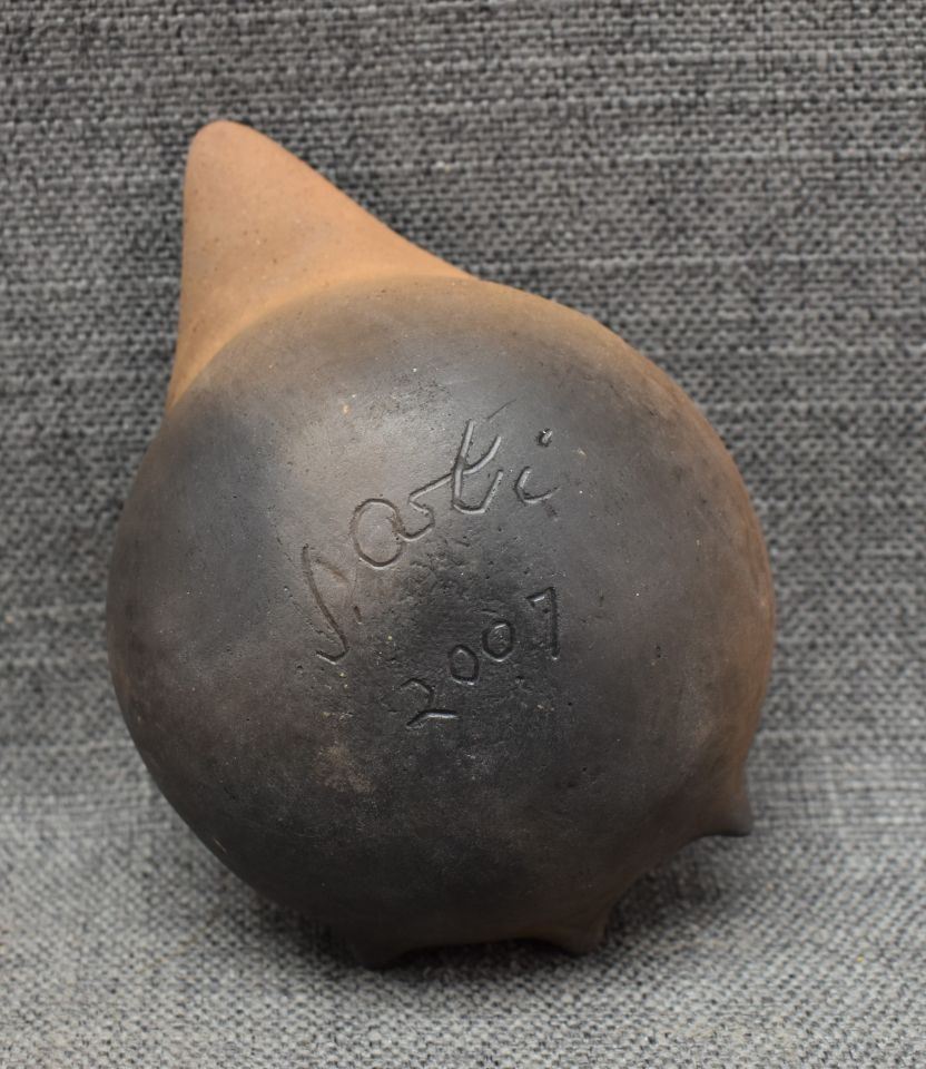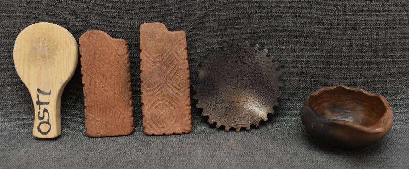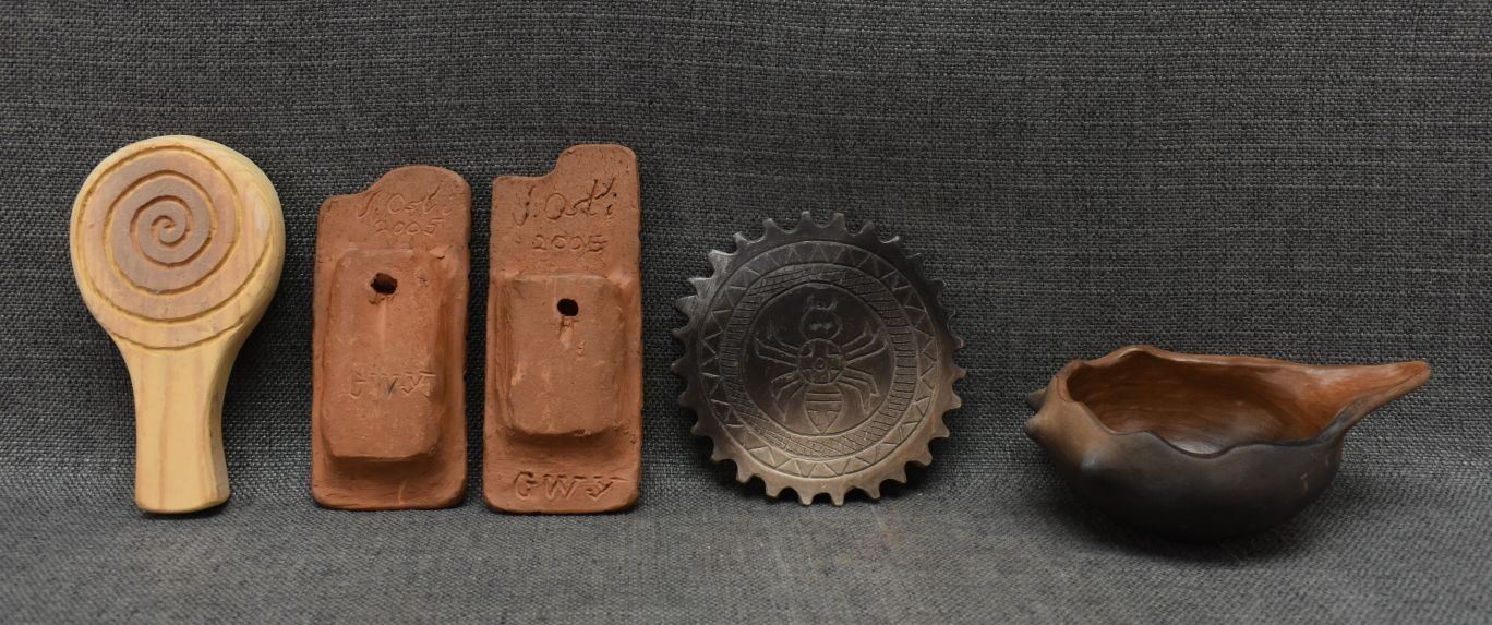 2000's Cherokee, hand made pottery largest 2.25" x 6" x 4" includes wooden decorating tool