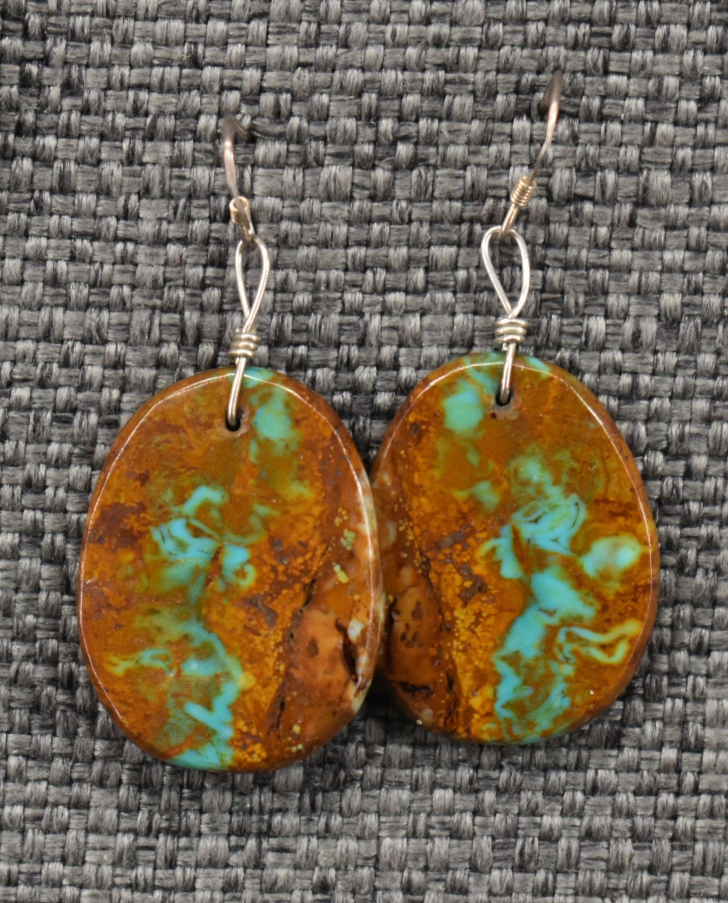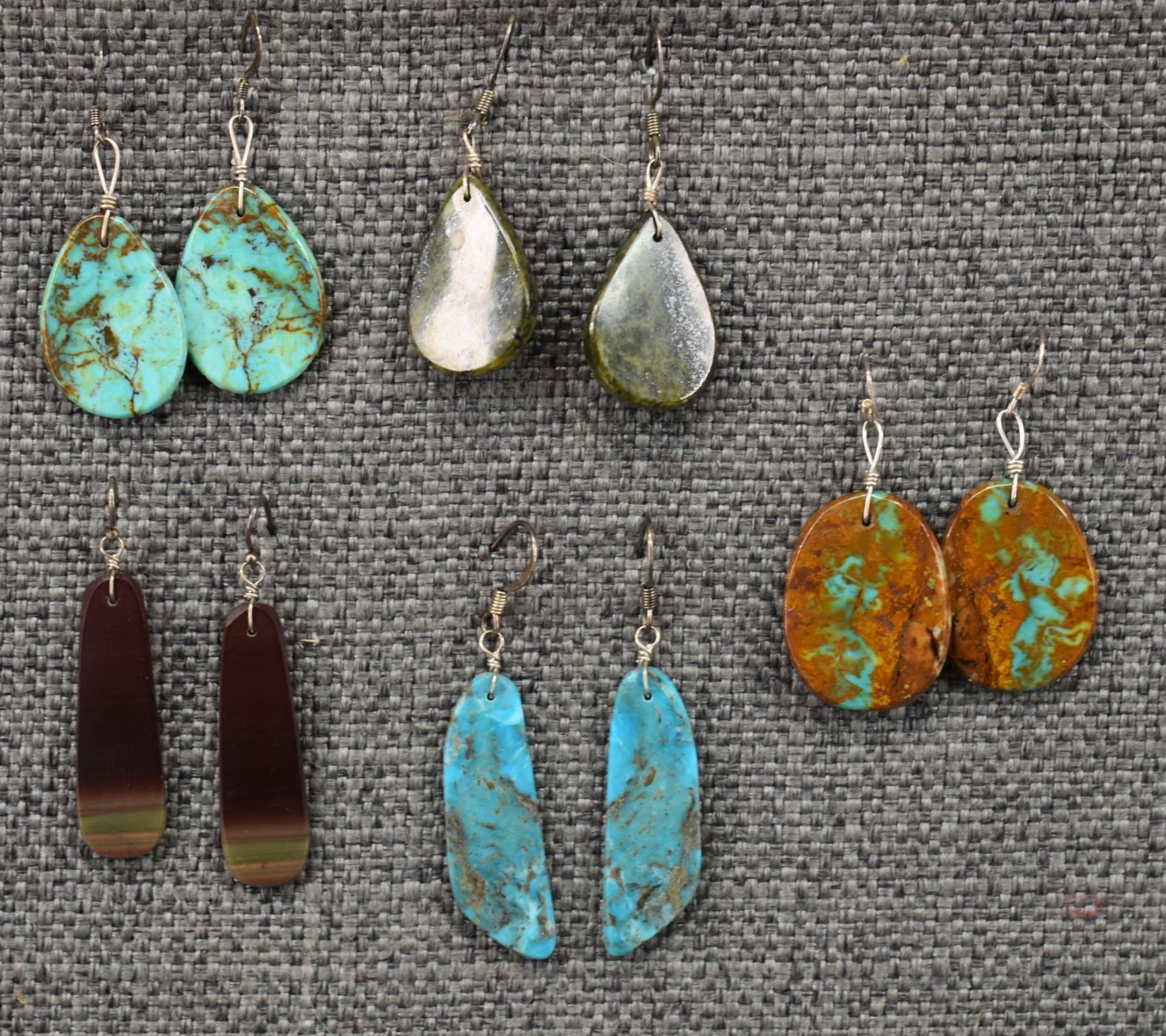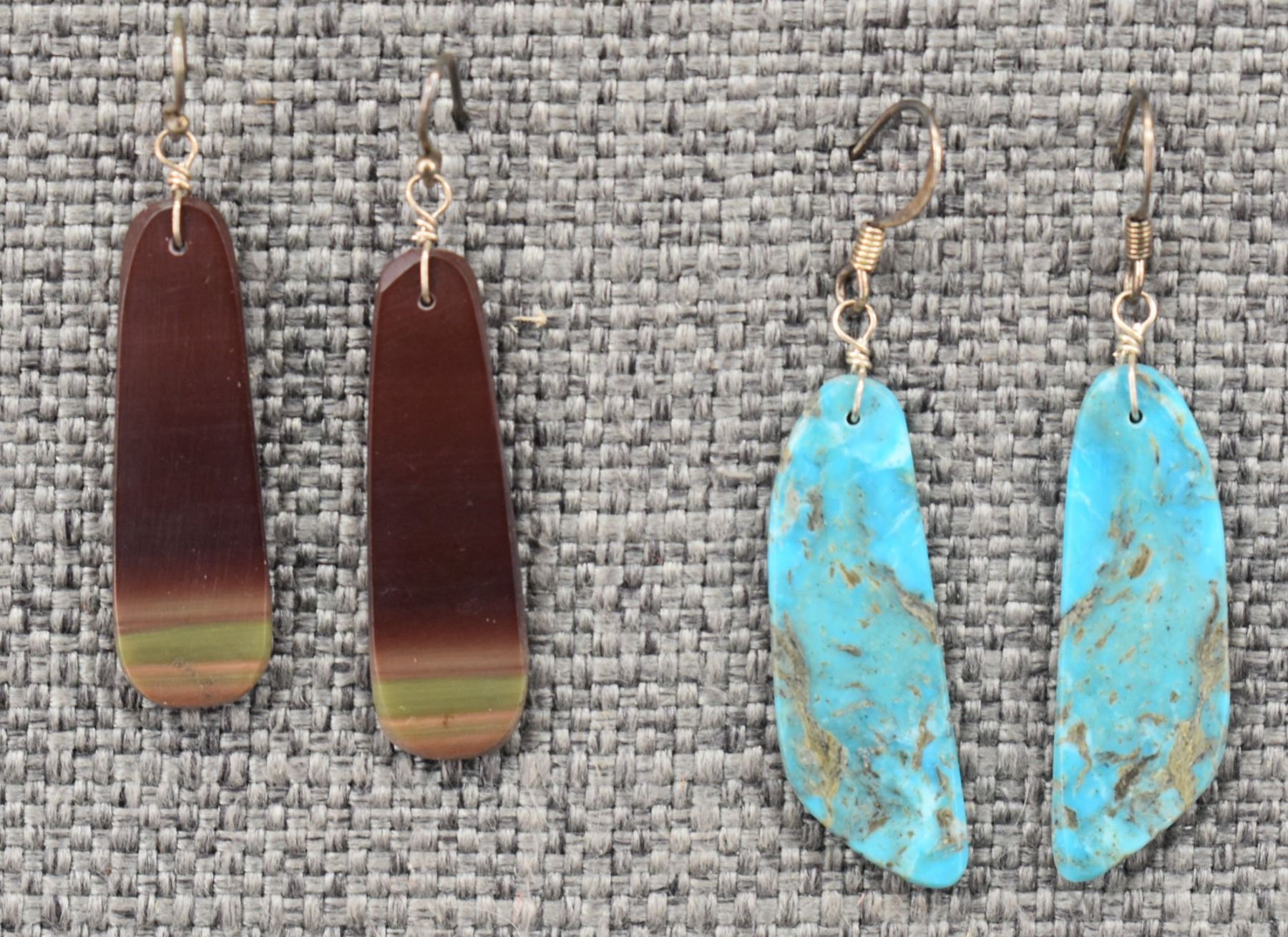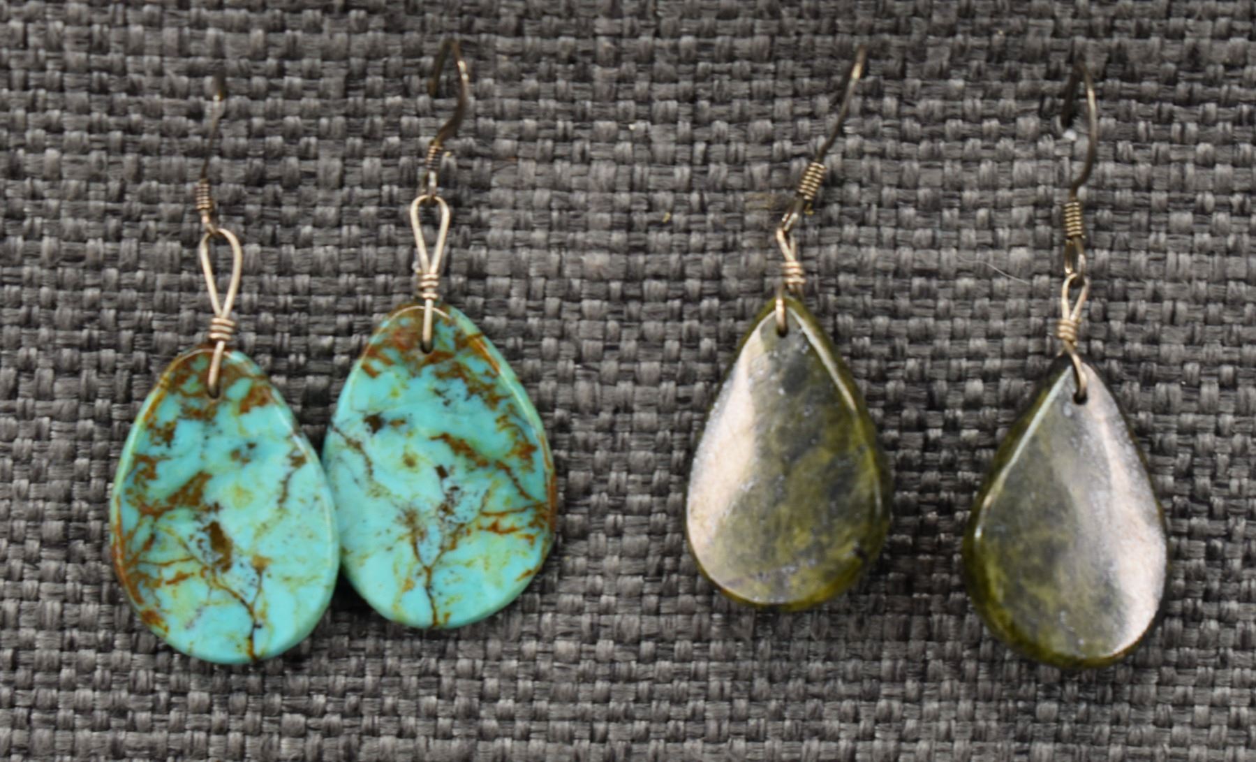 1980-90's turquoise and stone dangle earrings, longest 2"