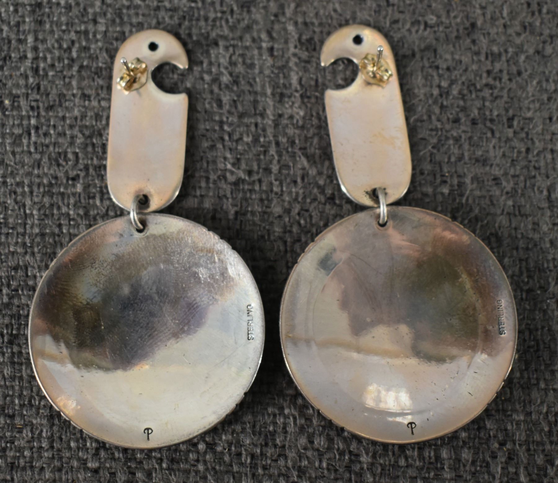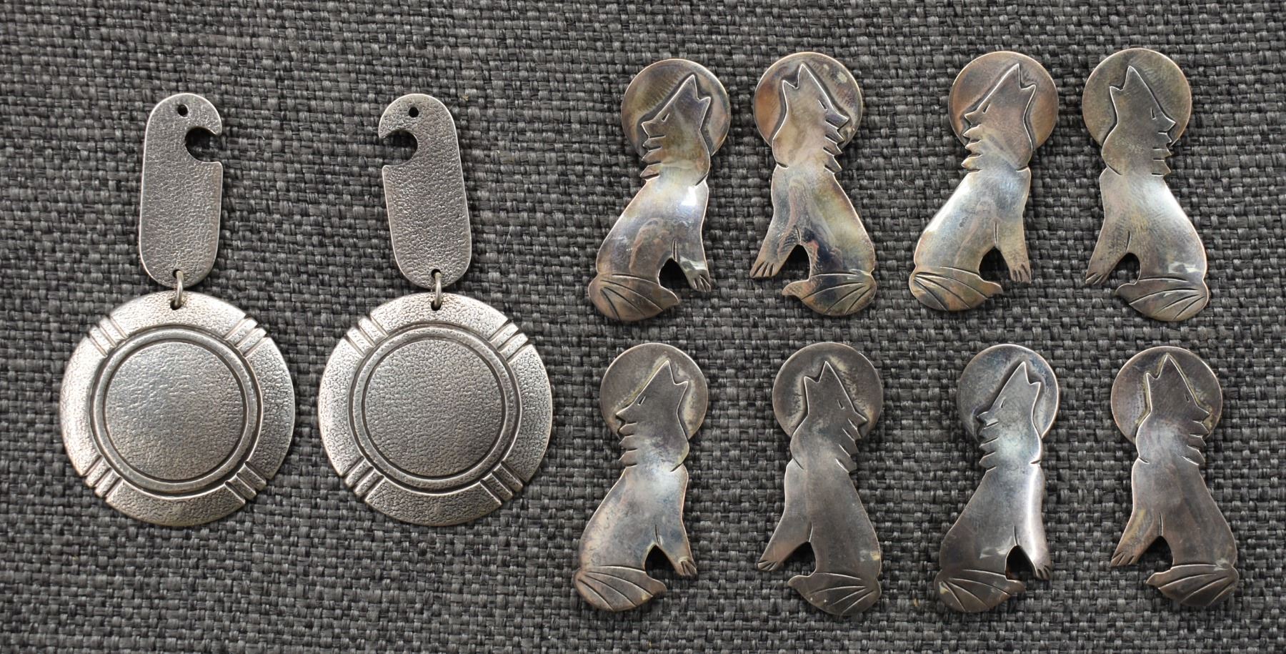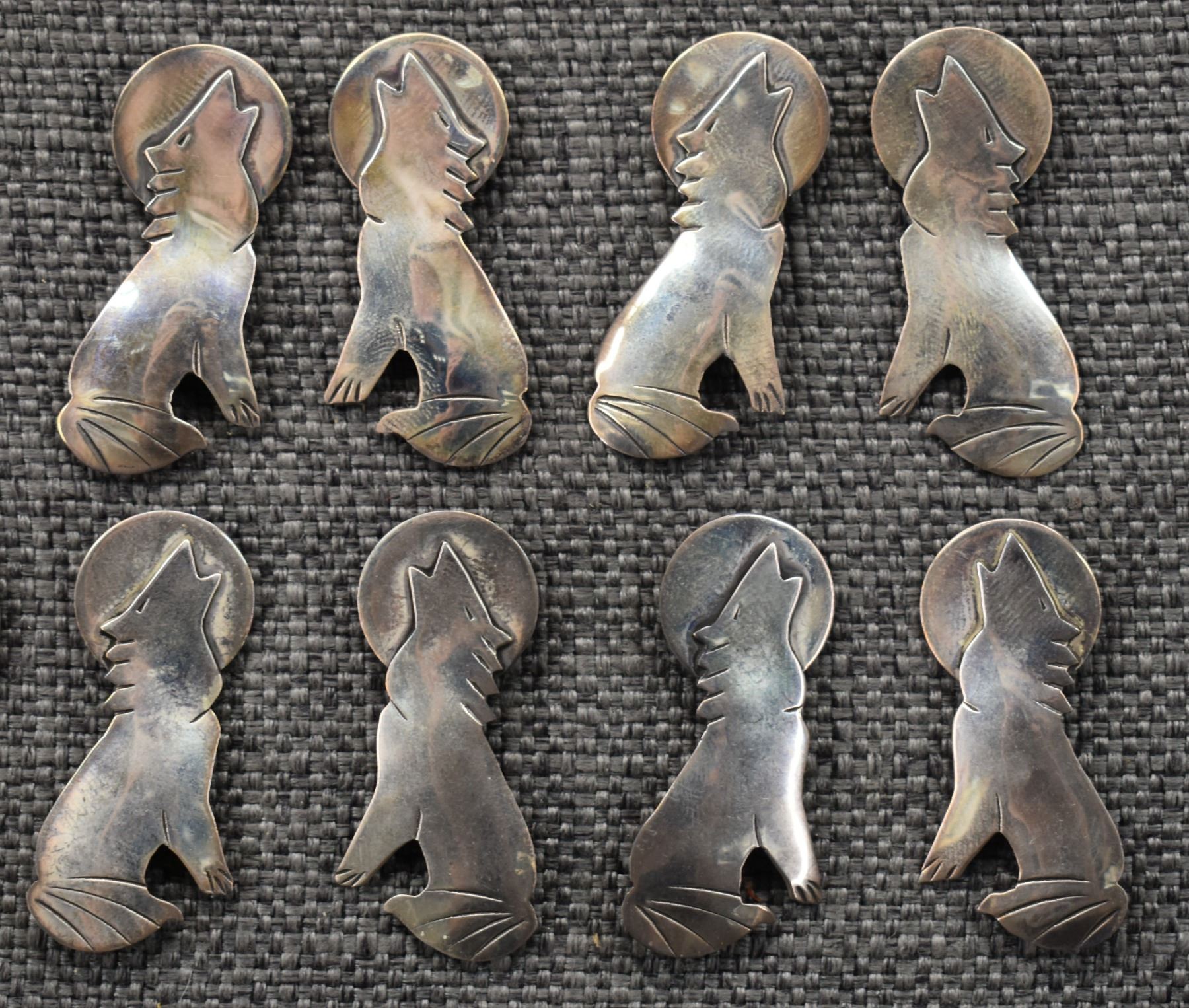 1990's Navajo, sterling silver howling wolf 1.75" x .75", other 2.75" x 1.5" total weight 36 grams