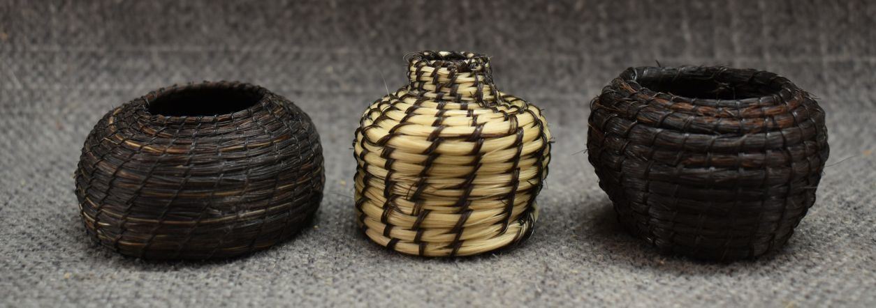 1960's Papago. Hand woven horse hair baskets. Largest is 1.25'' x 2''