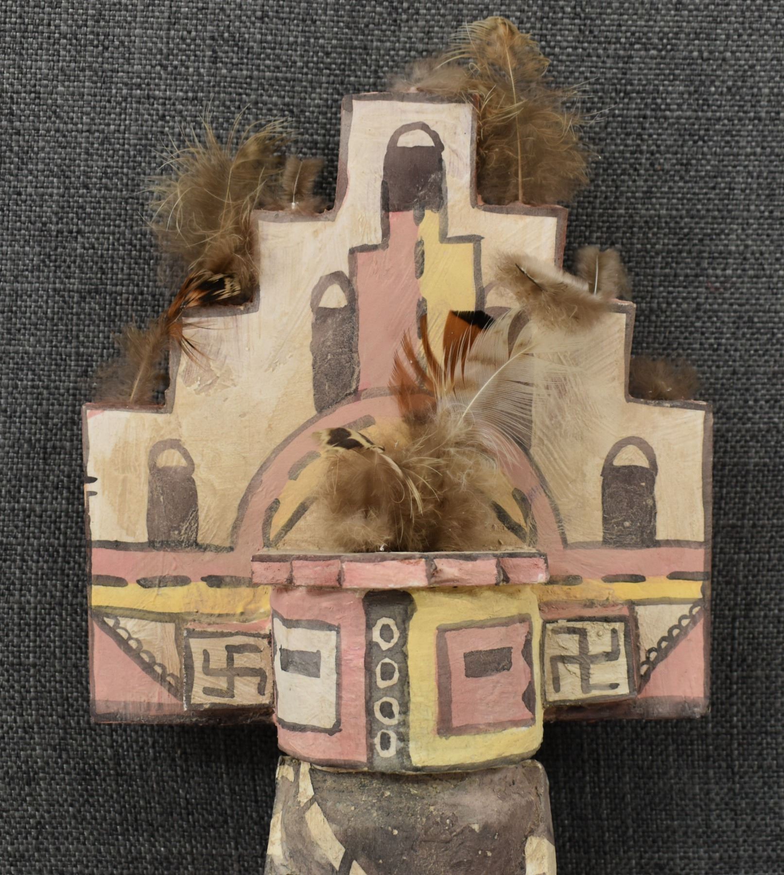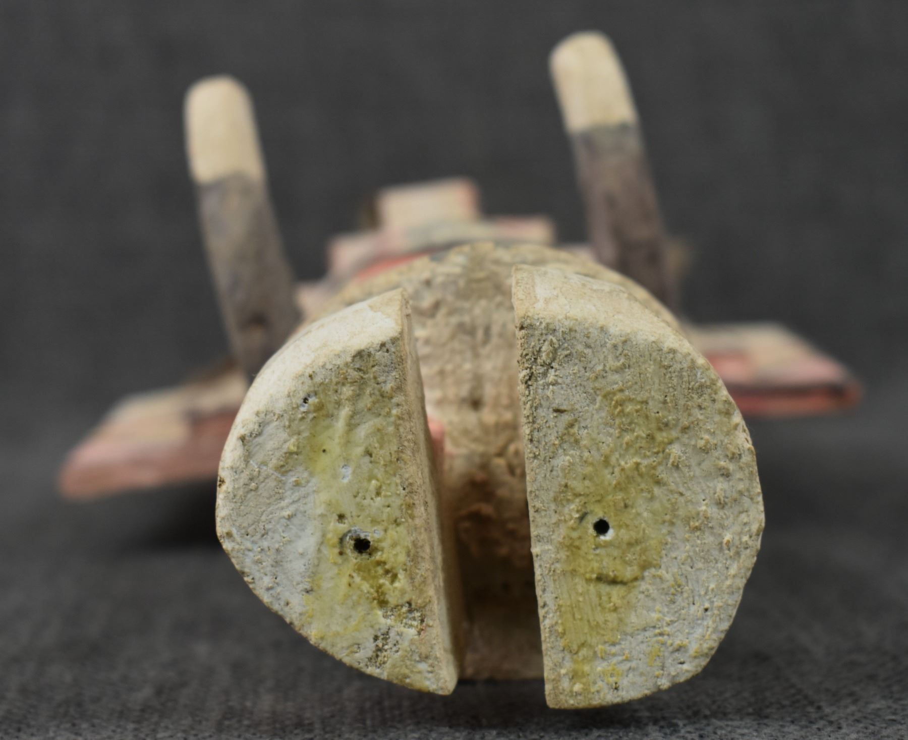 20th century, folk art carved and painted doll, 12.5" tall has been broken and glued