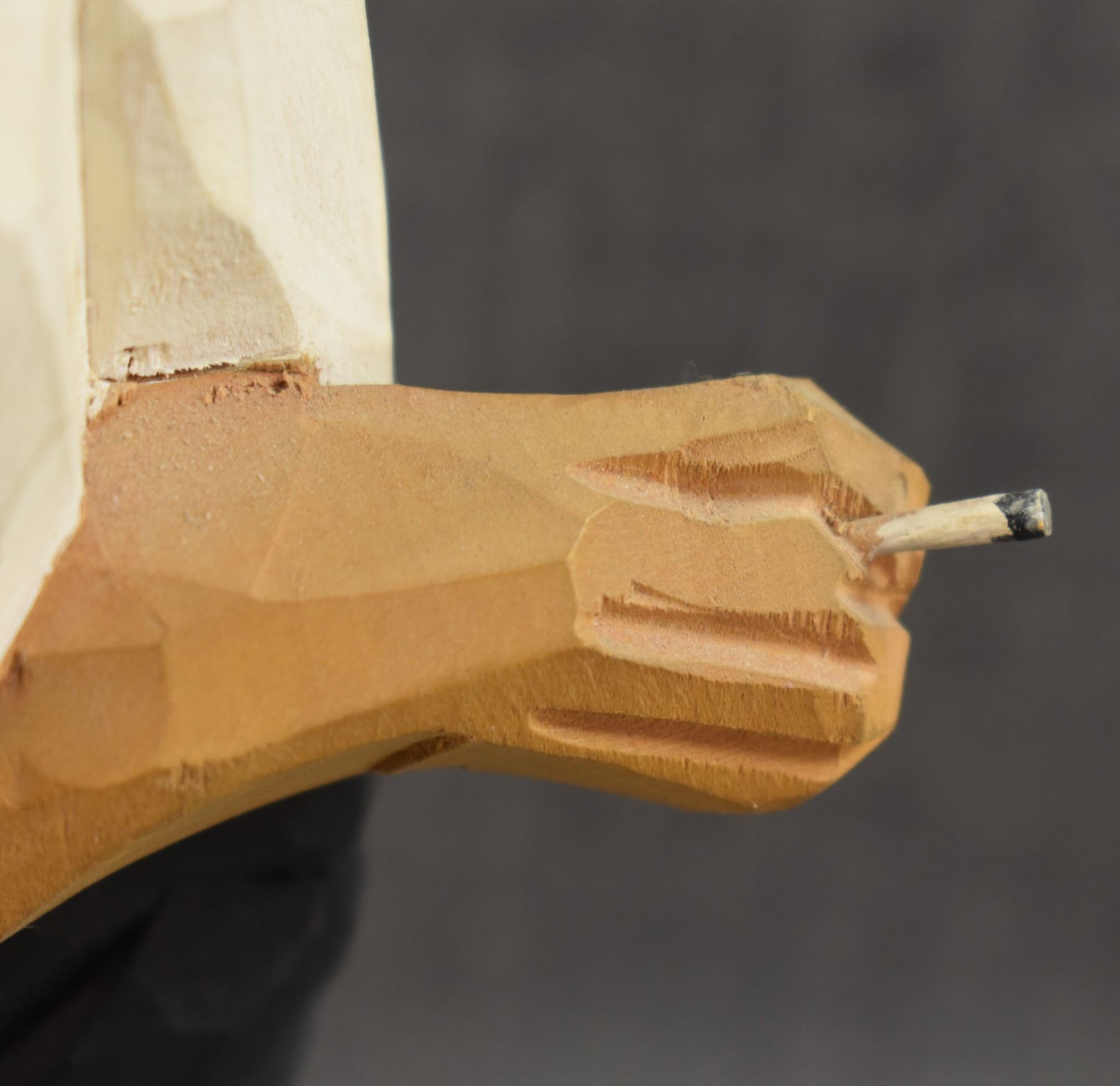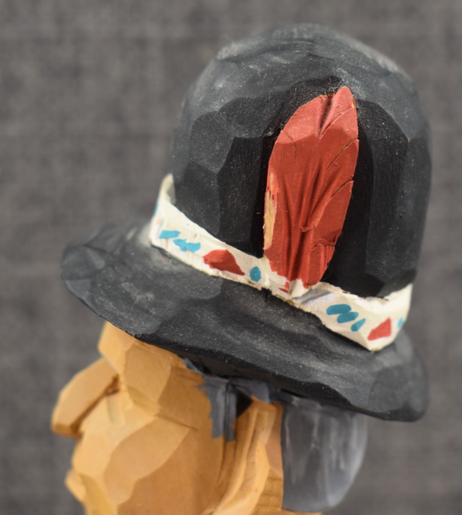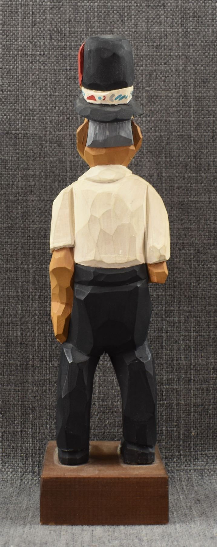 Folk art figure signed. Hand carved wood depicting man smoking cigarette. 11" x 3"