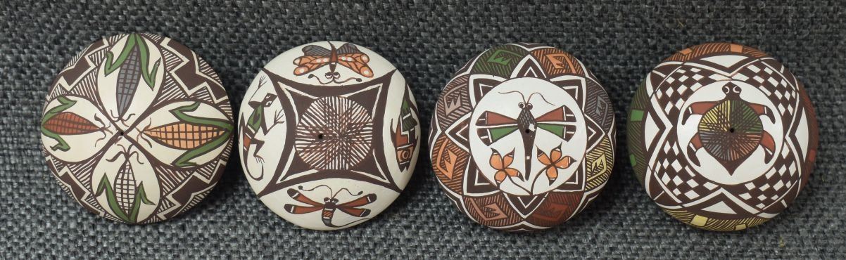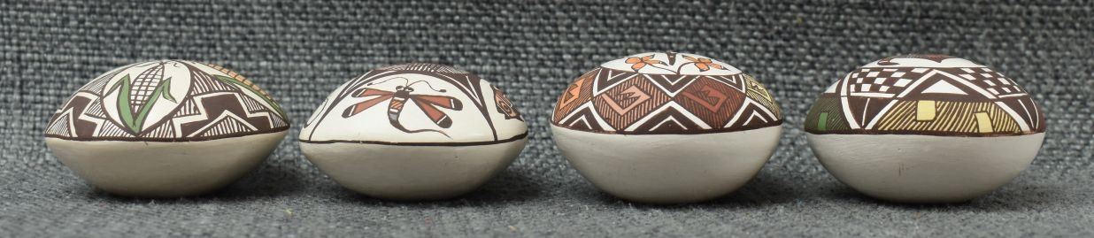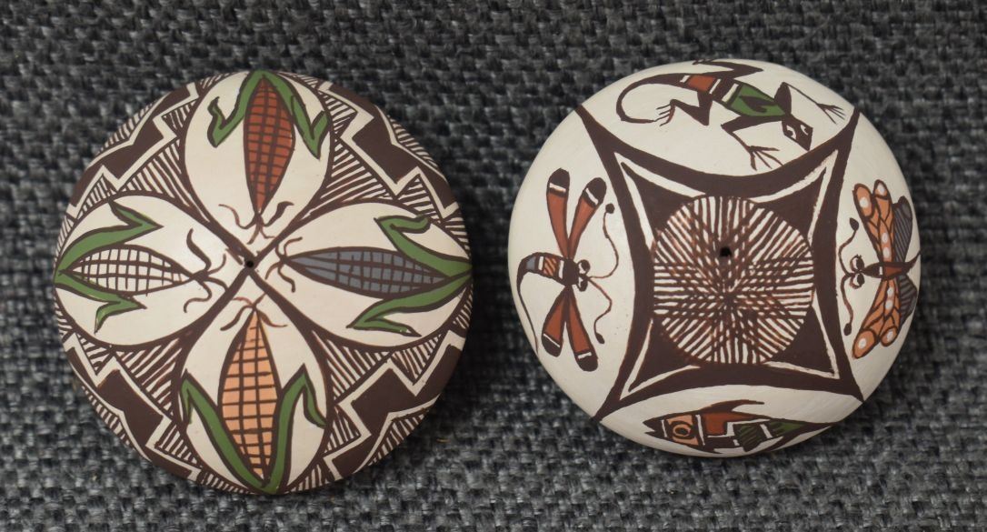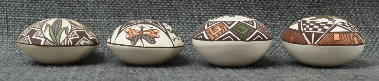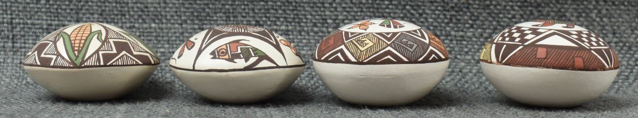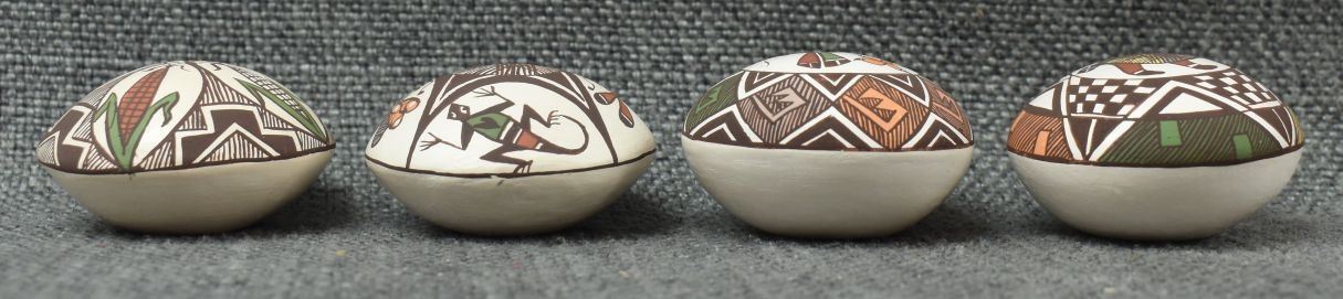 1990-2000's Acoma, hand coiled with fine line and animal designs largest 1" x 1.75"