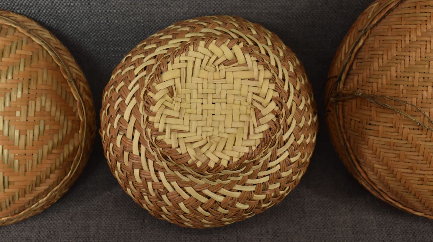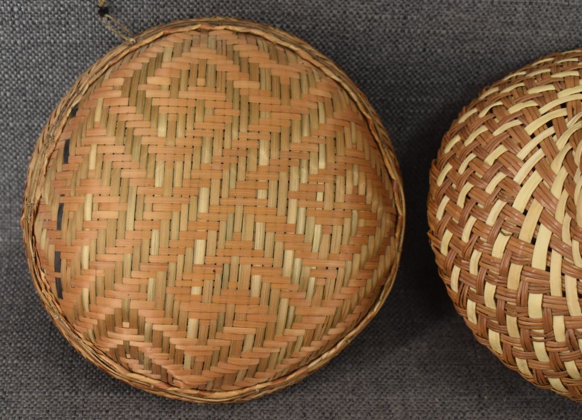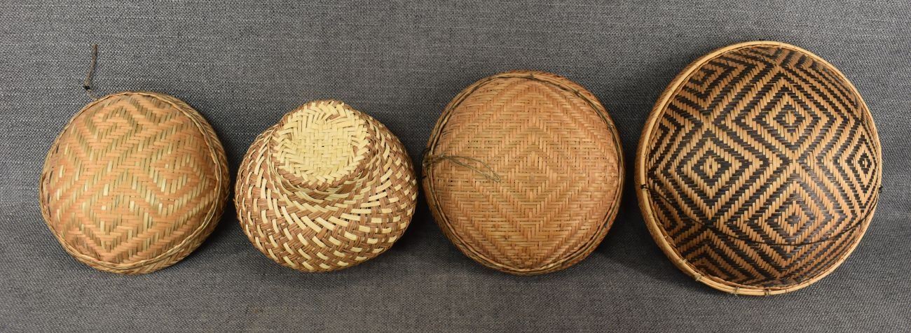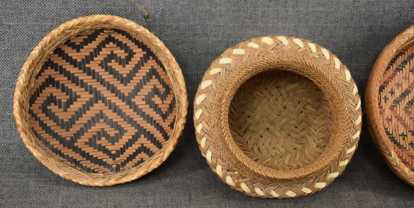 Three basketry bowls, one Tarahumara basketry olla. Largest bowl 4"x 9.5"