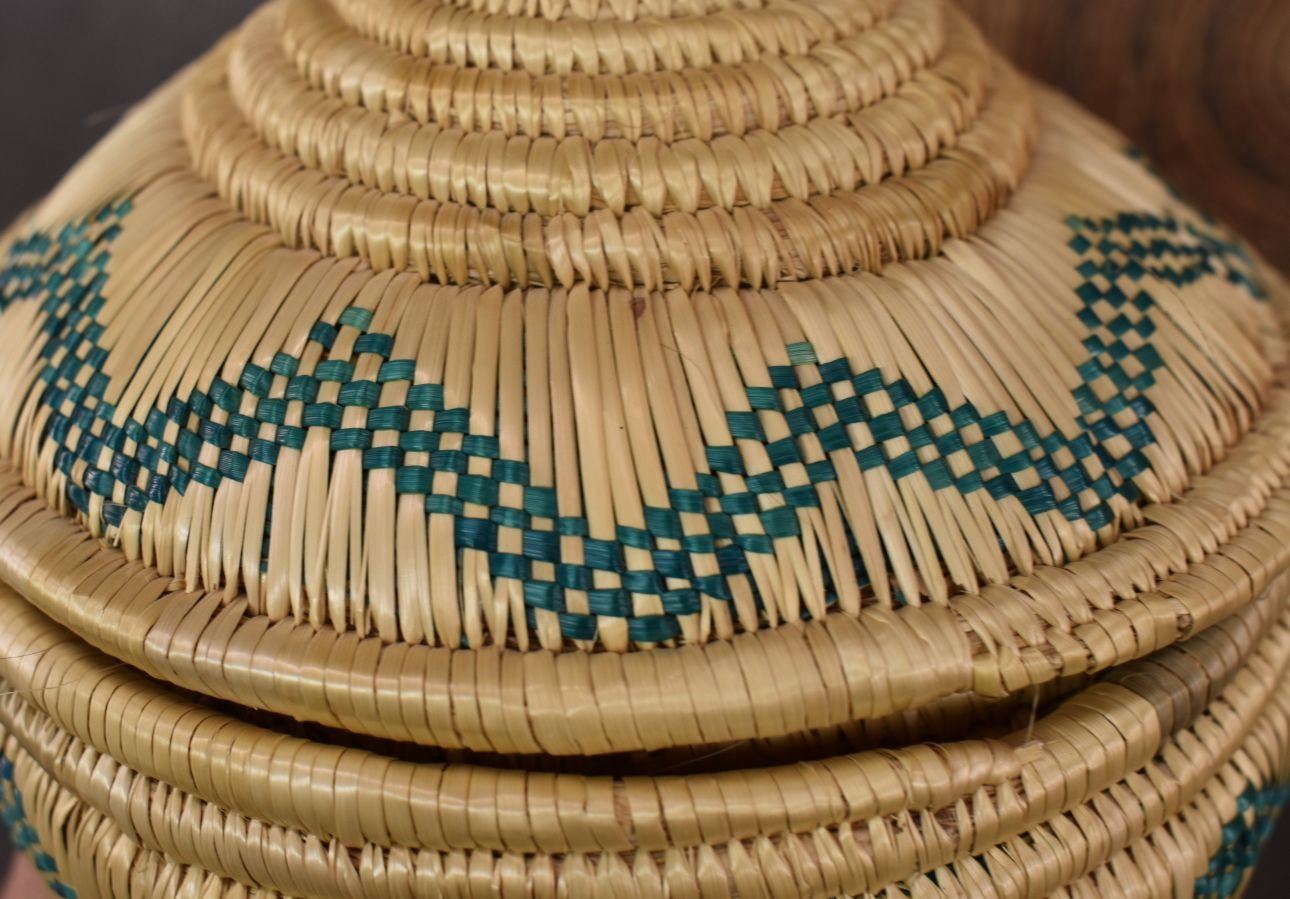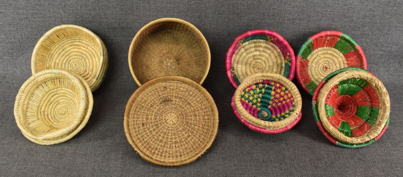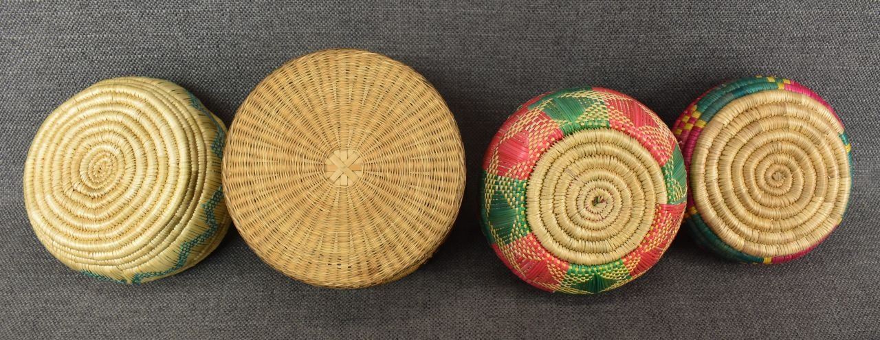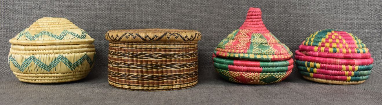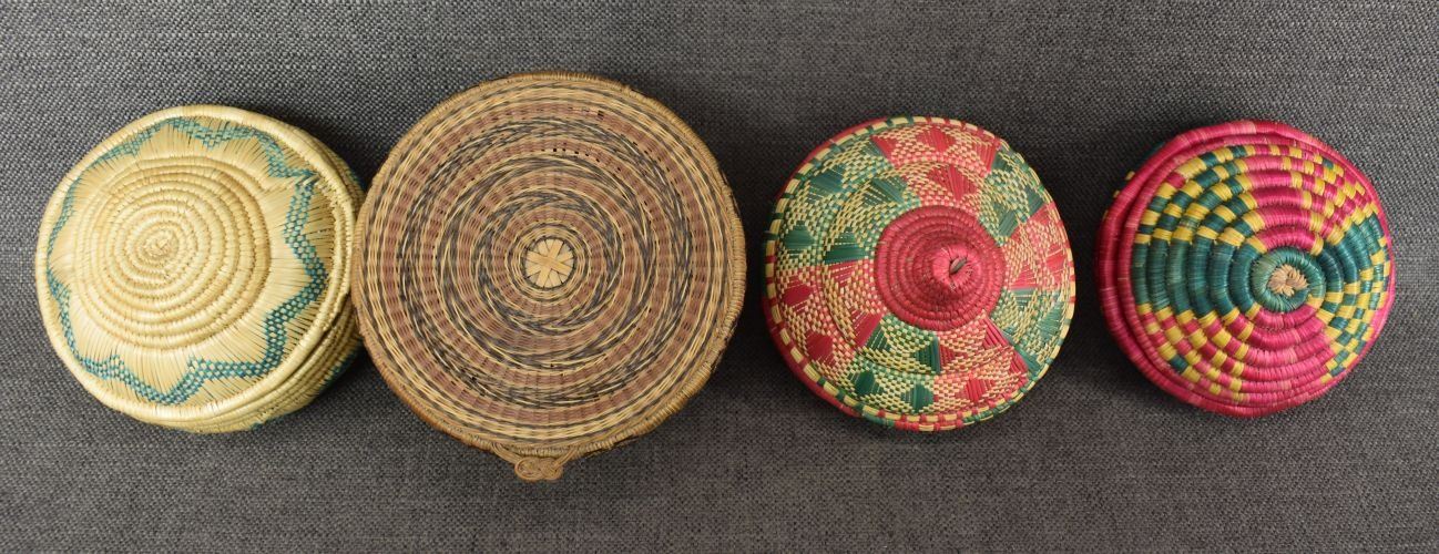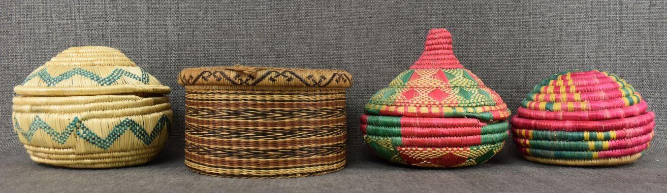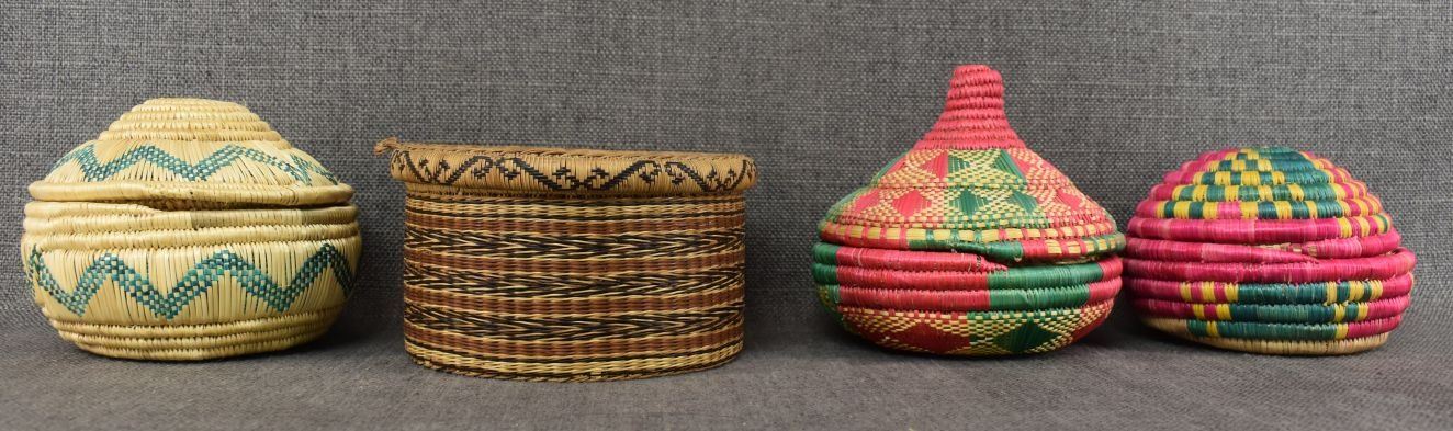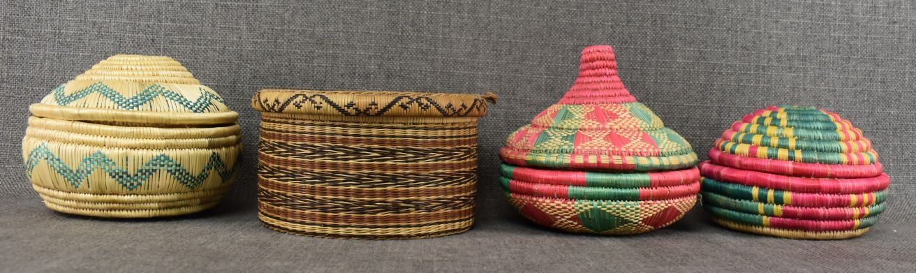 Four hand woven decorative baskets. Tallest 5.5" x 5.5"