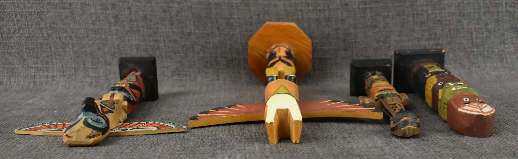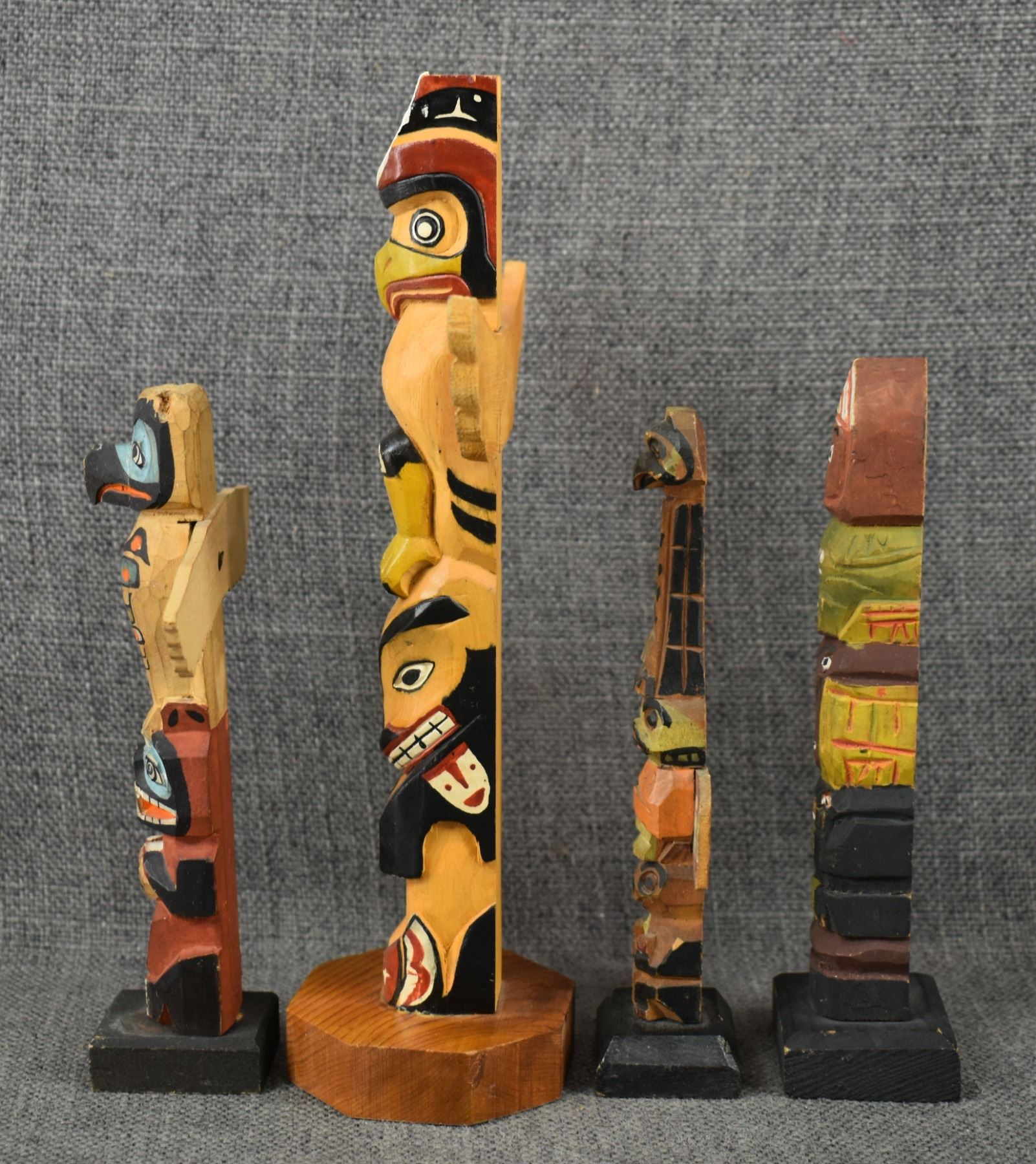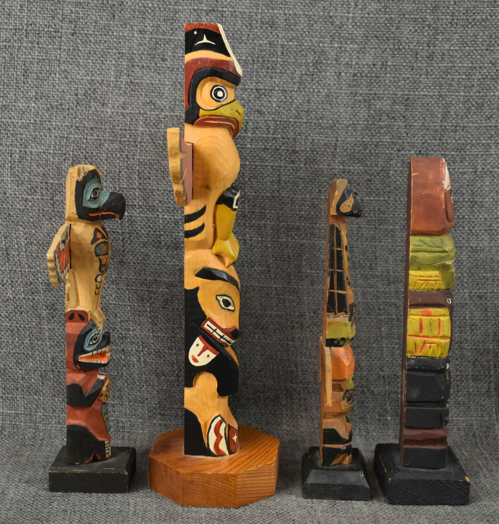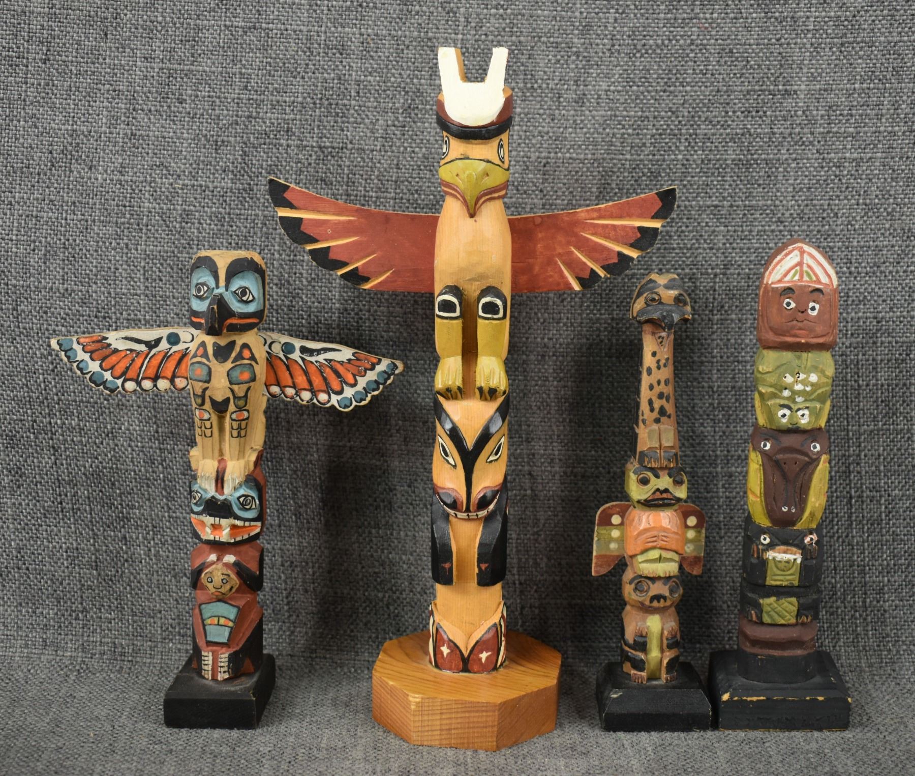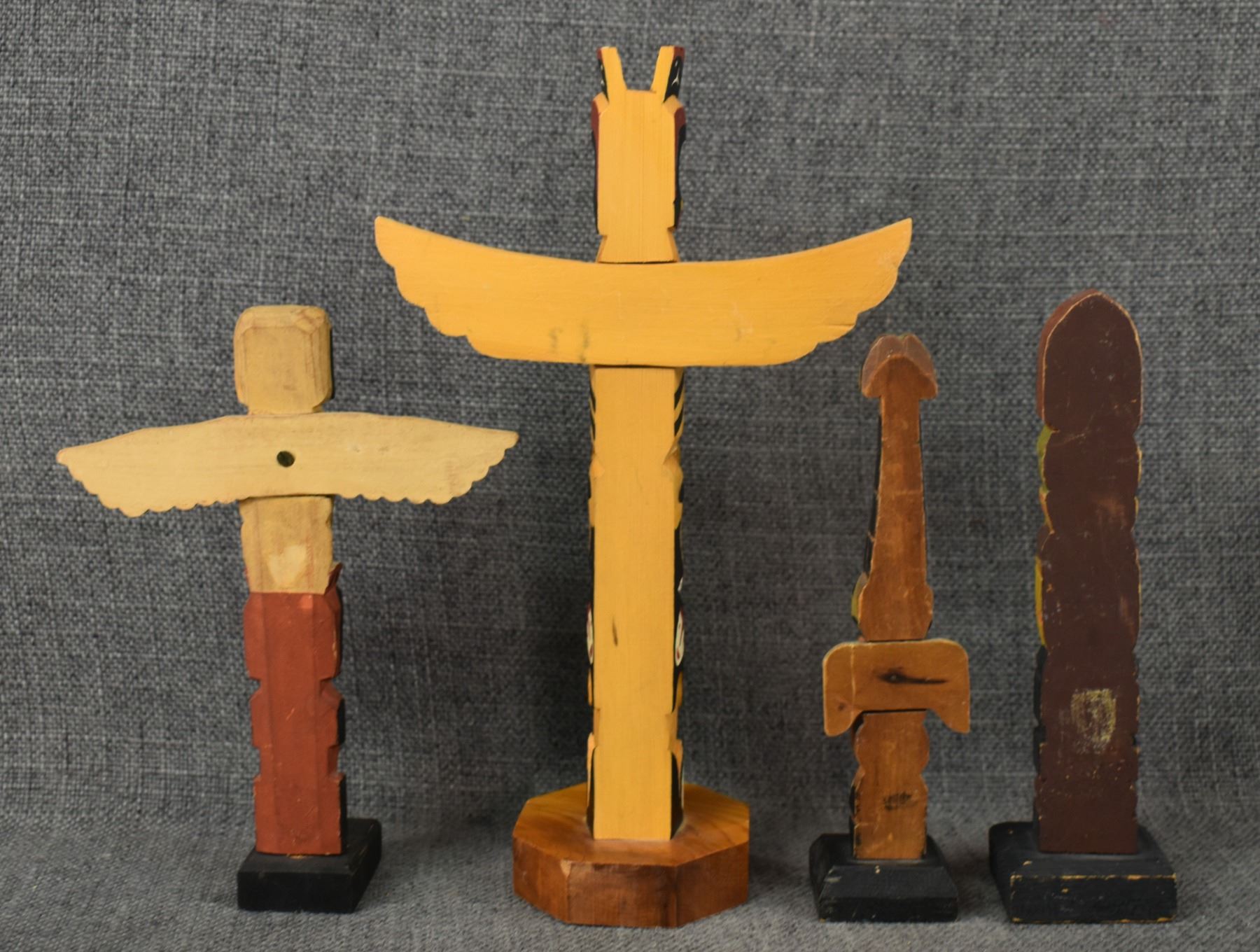 FOUR DECORATIVE TOTEM POLES