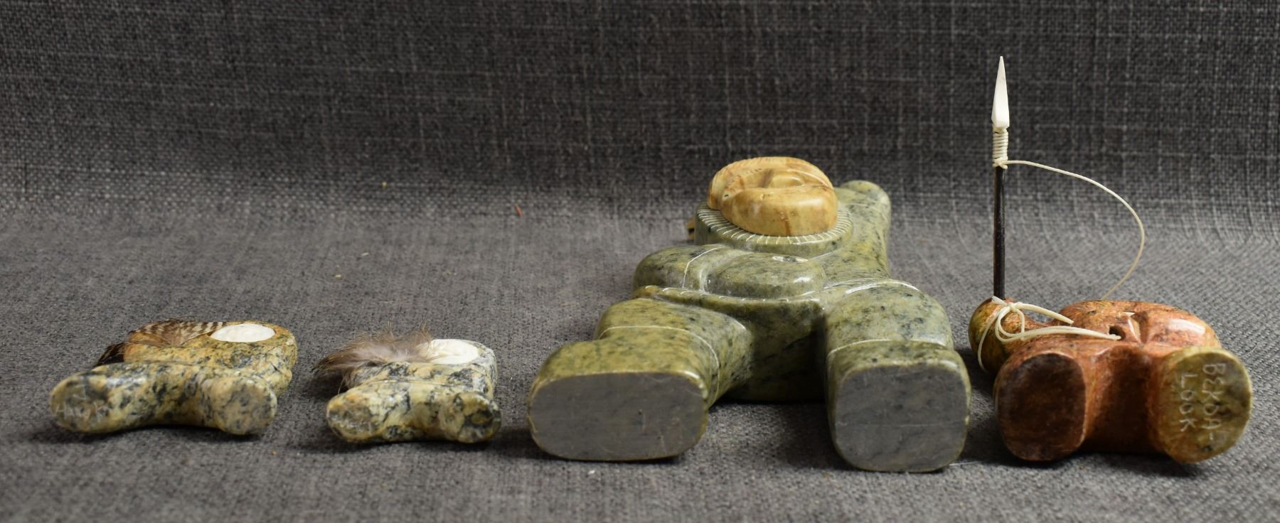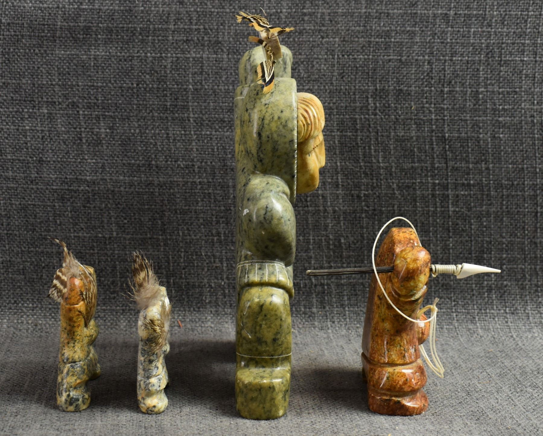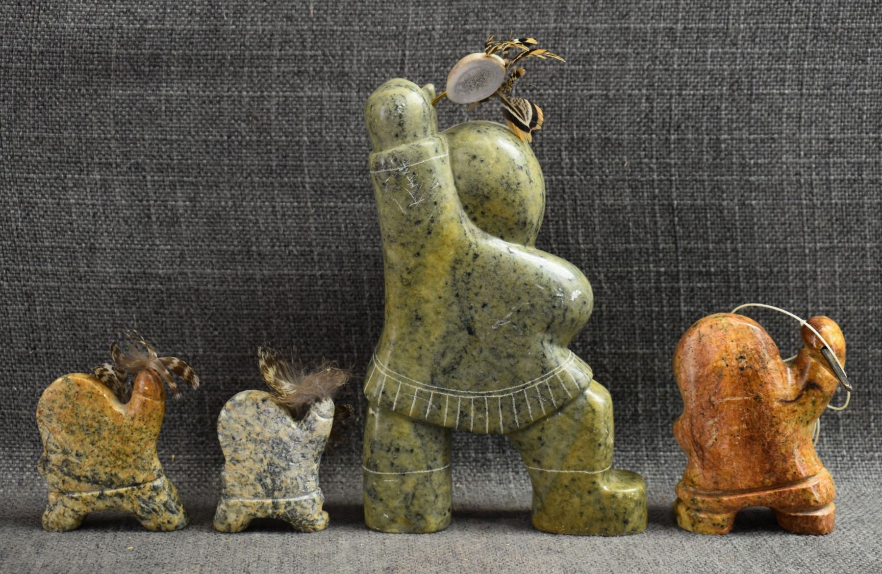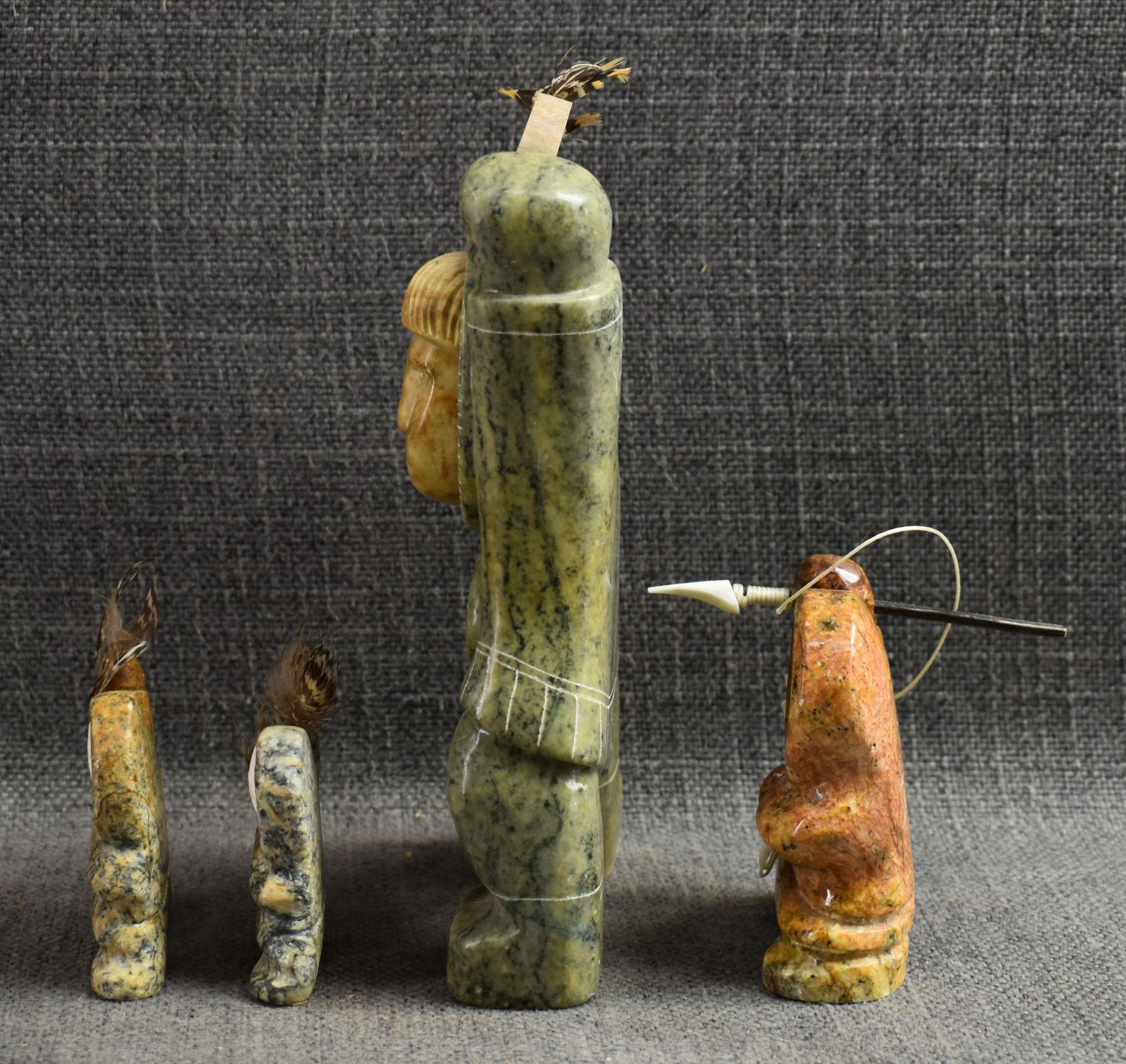 20th century. Inuit. Four hand carved stone figures largest is 7'' tall