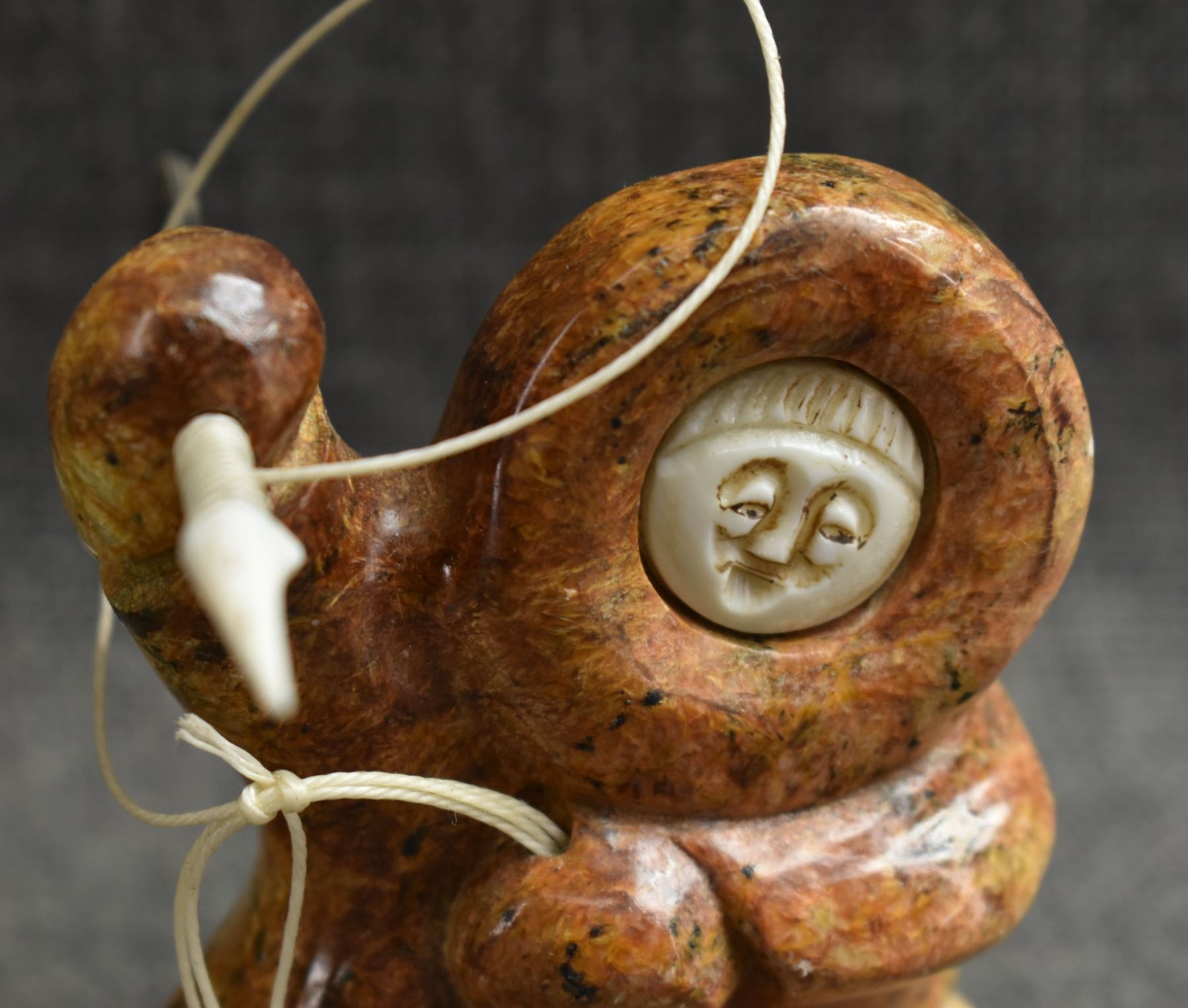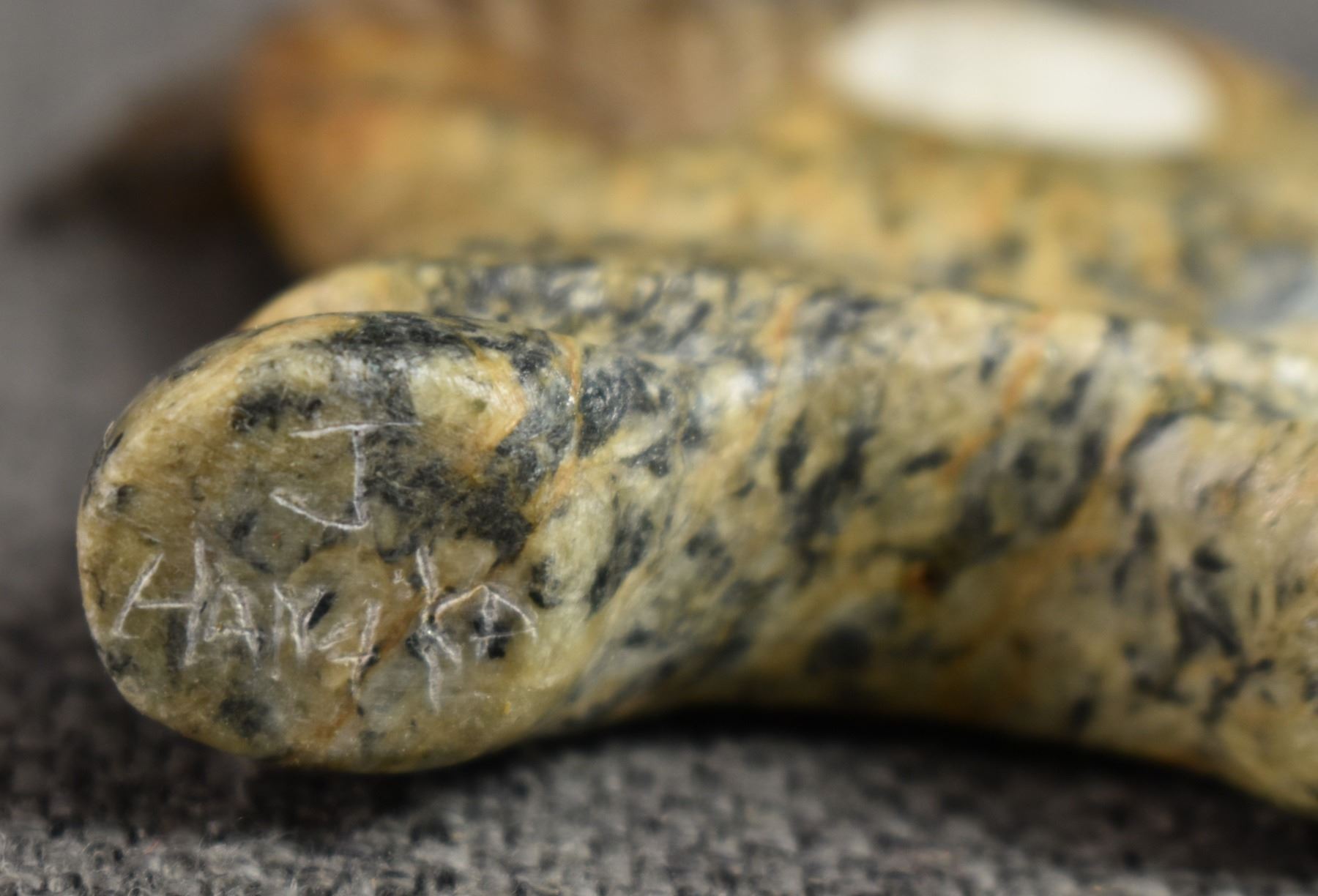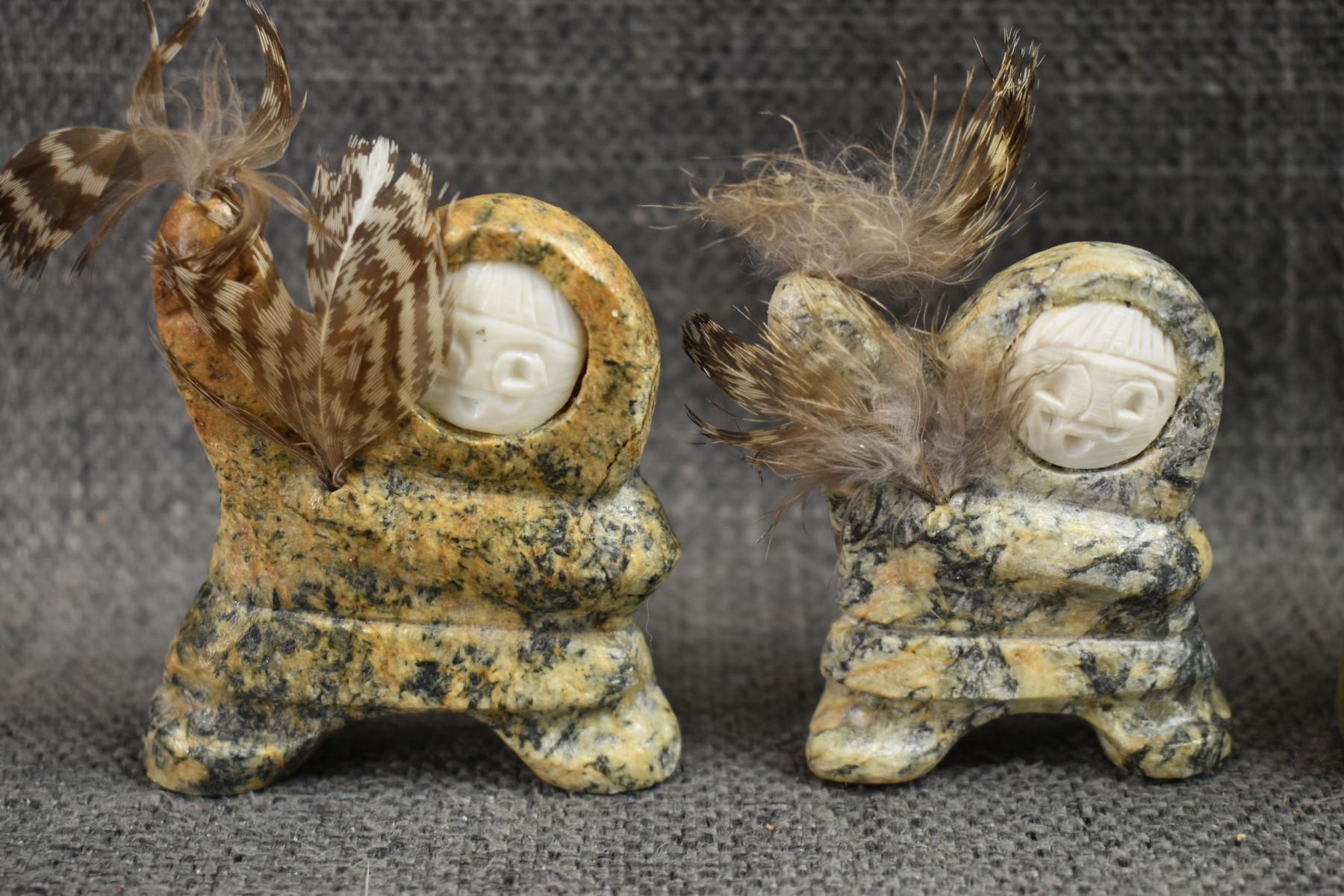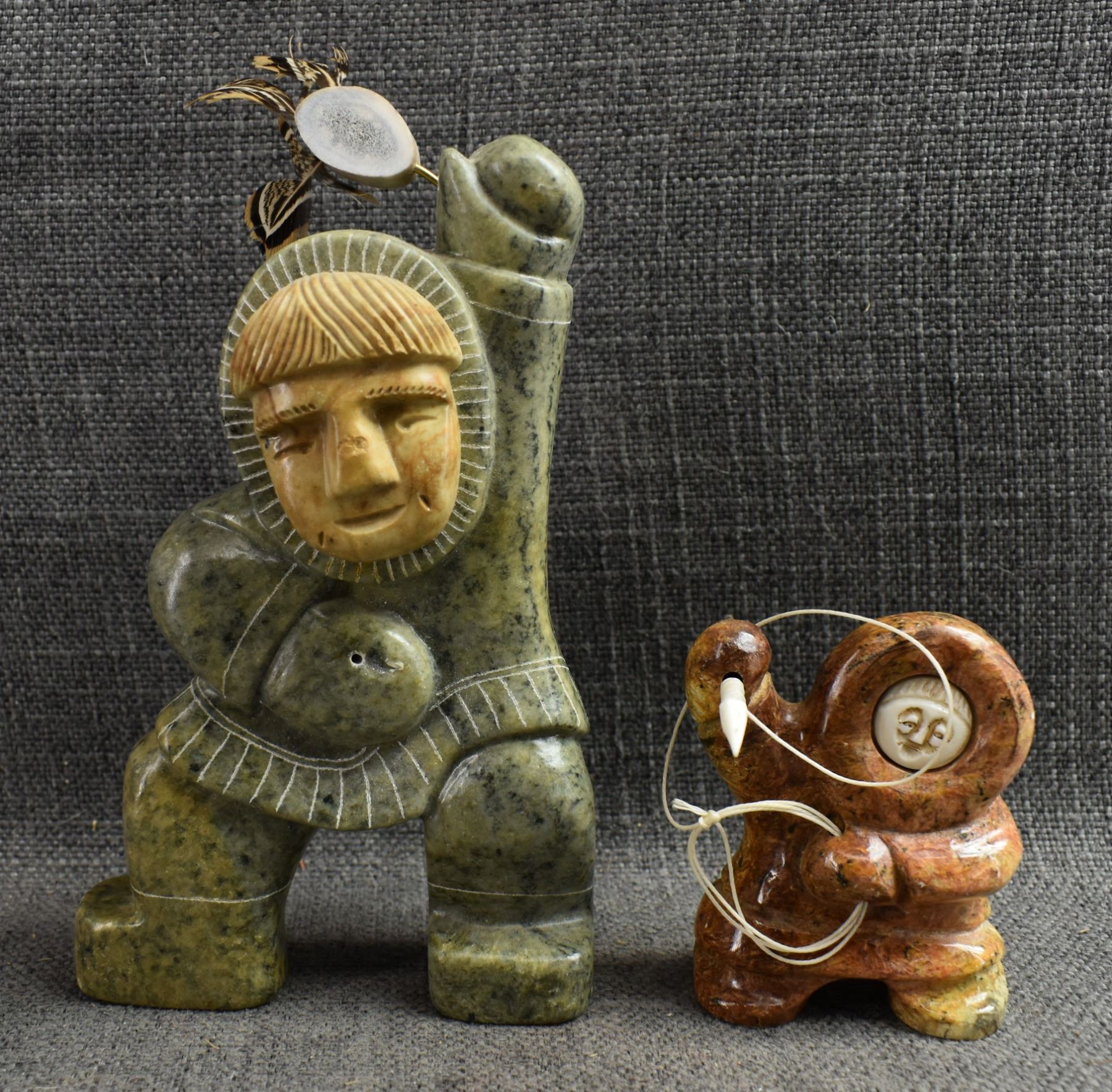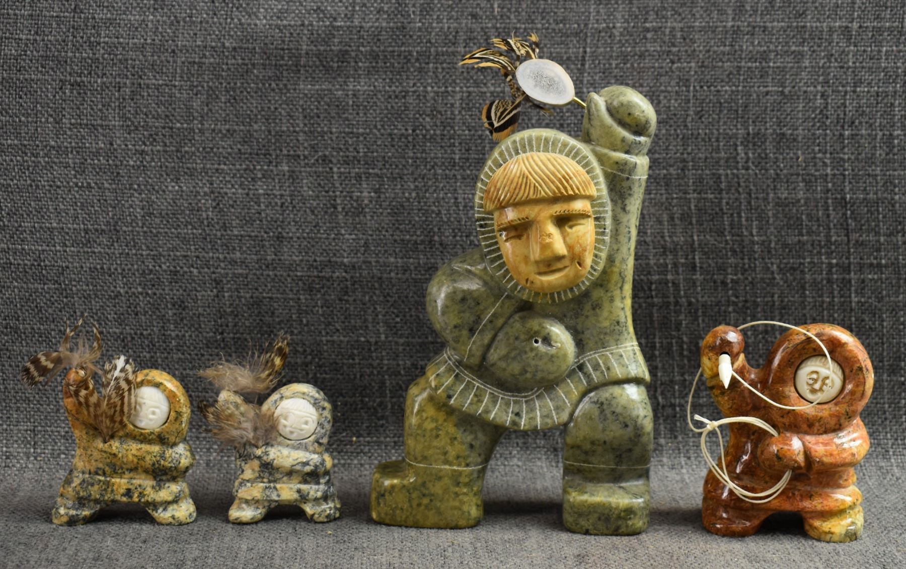 20th century. Inuit. Four hand carved stone figures largest is 7'' tall