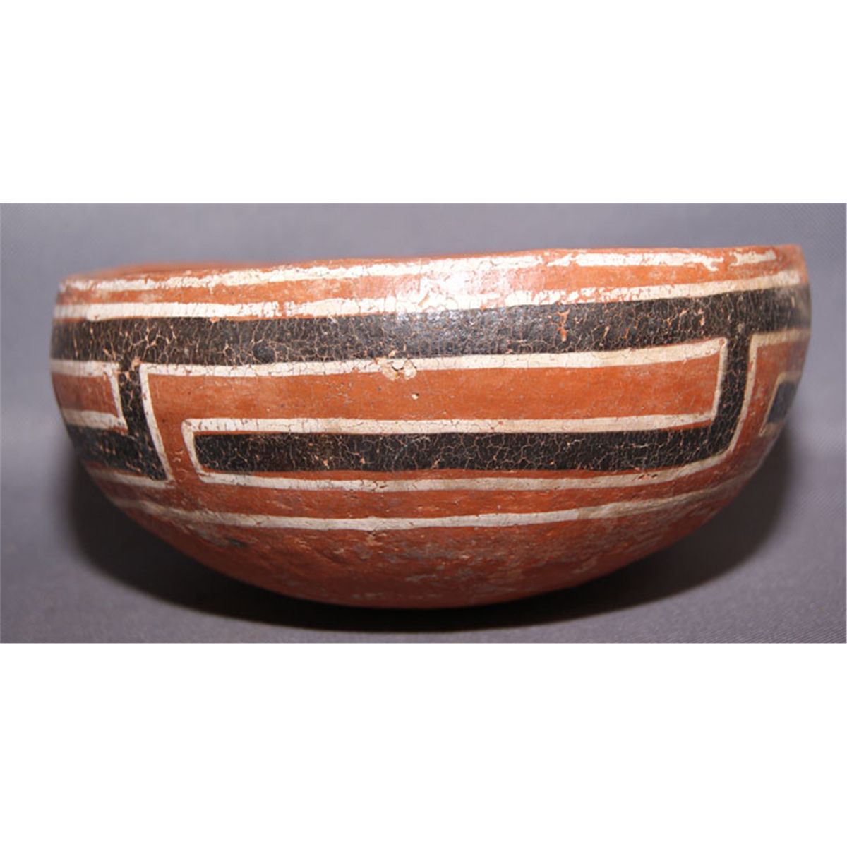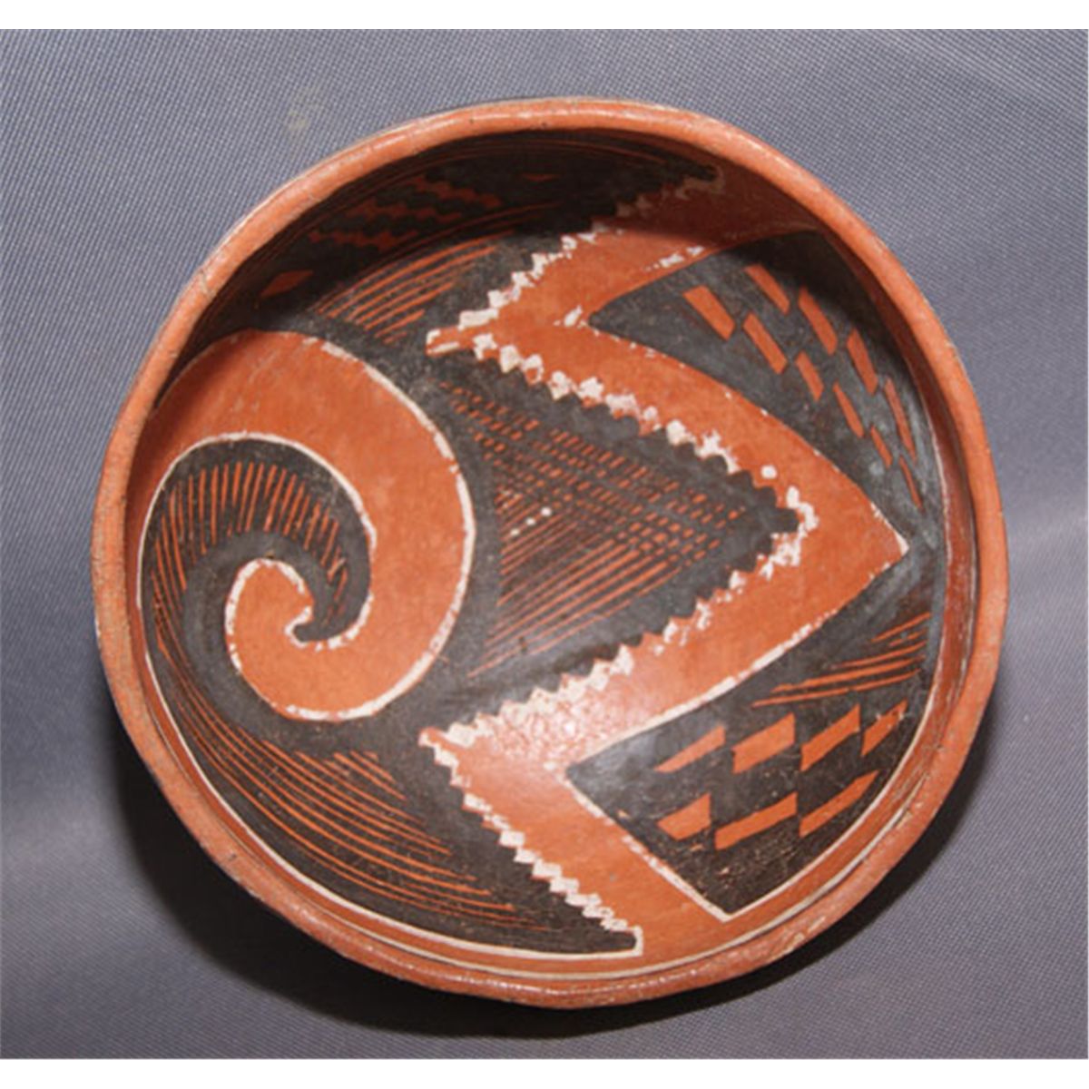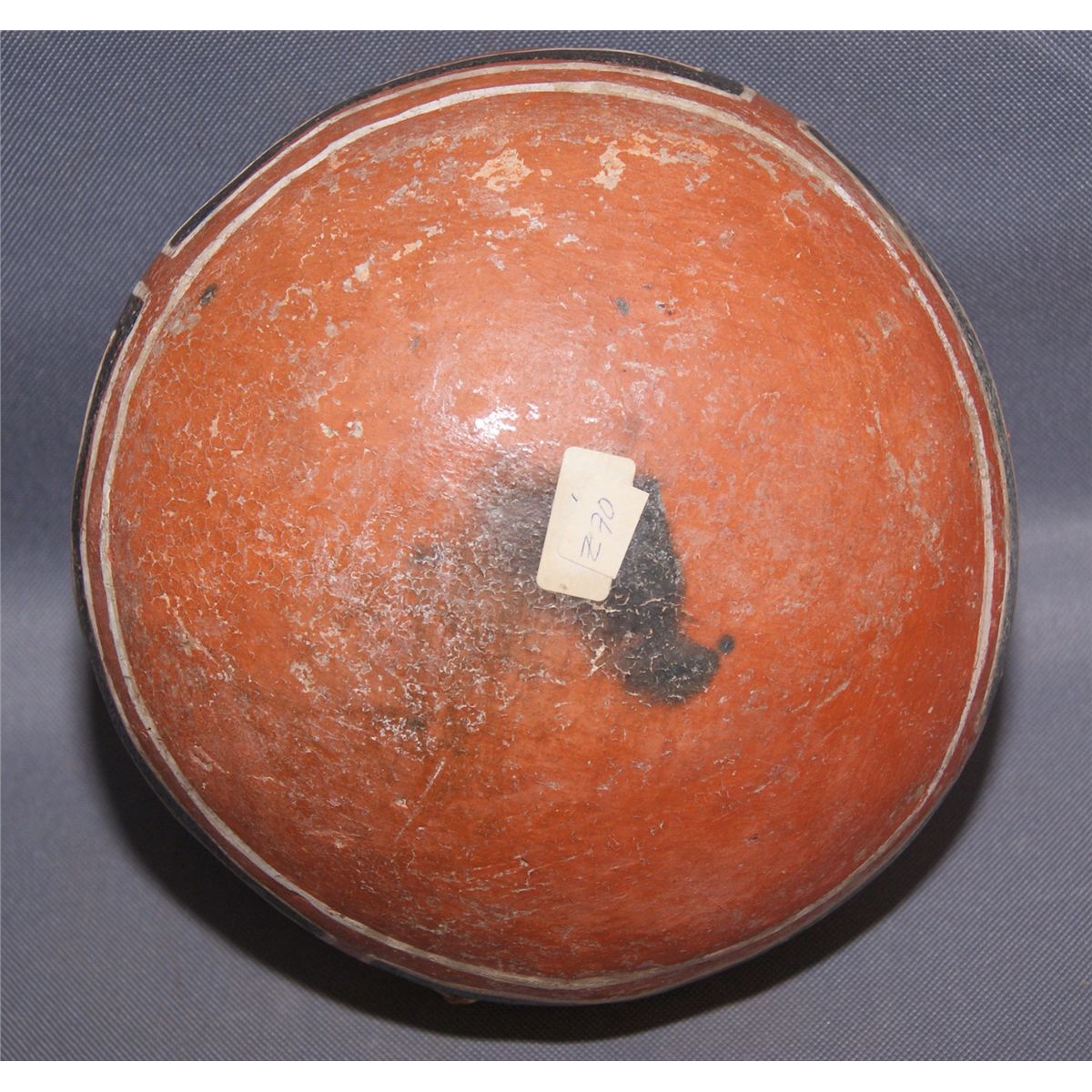 prehistoric black and white on red with minor chips on rim, 3.5" x 7.5"