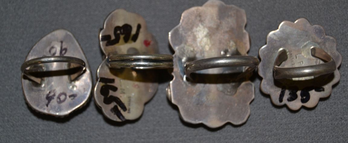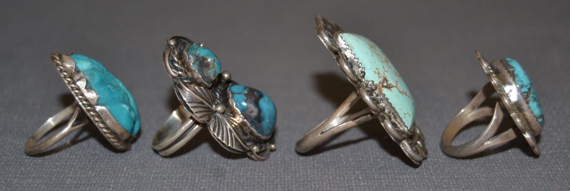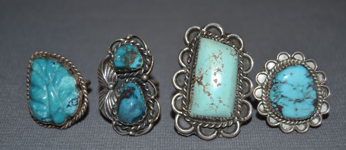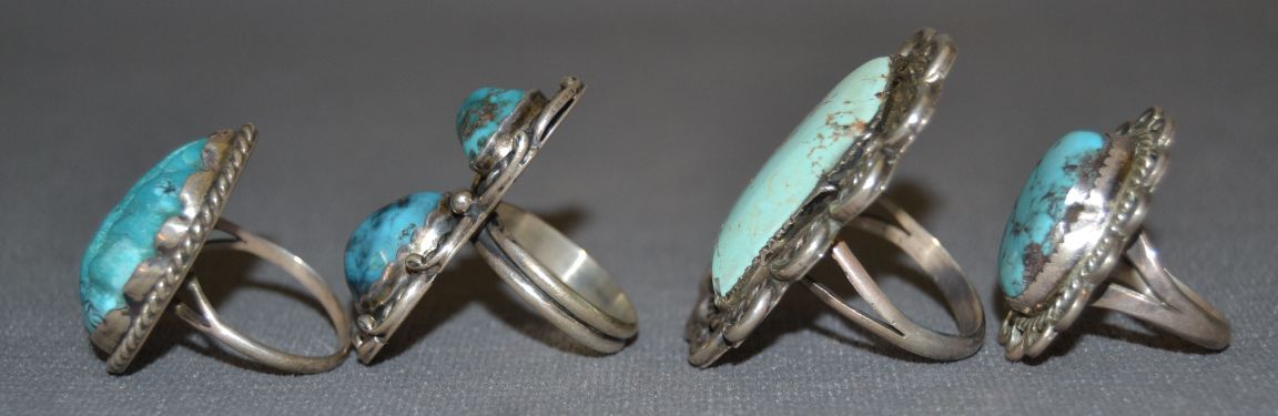 1960s 70s sterling silver and turquoise hand carved leaf pattern size 8 largest size 10