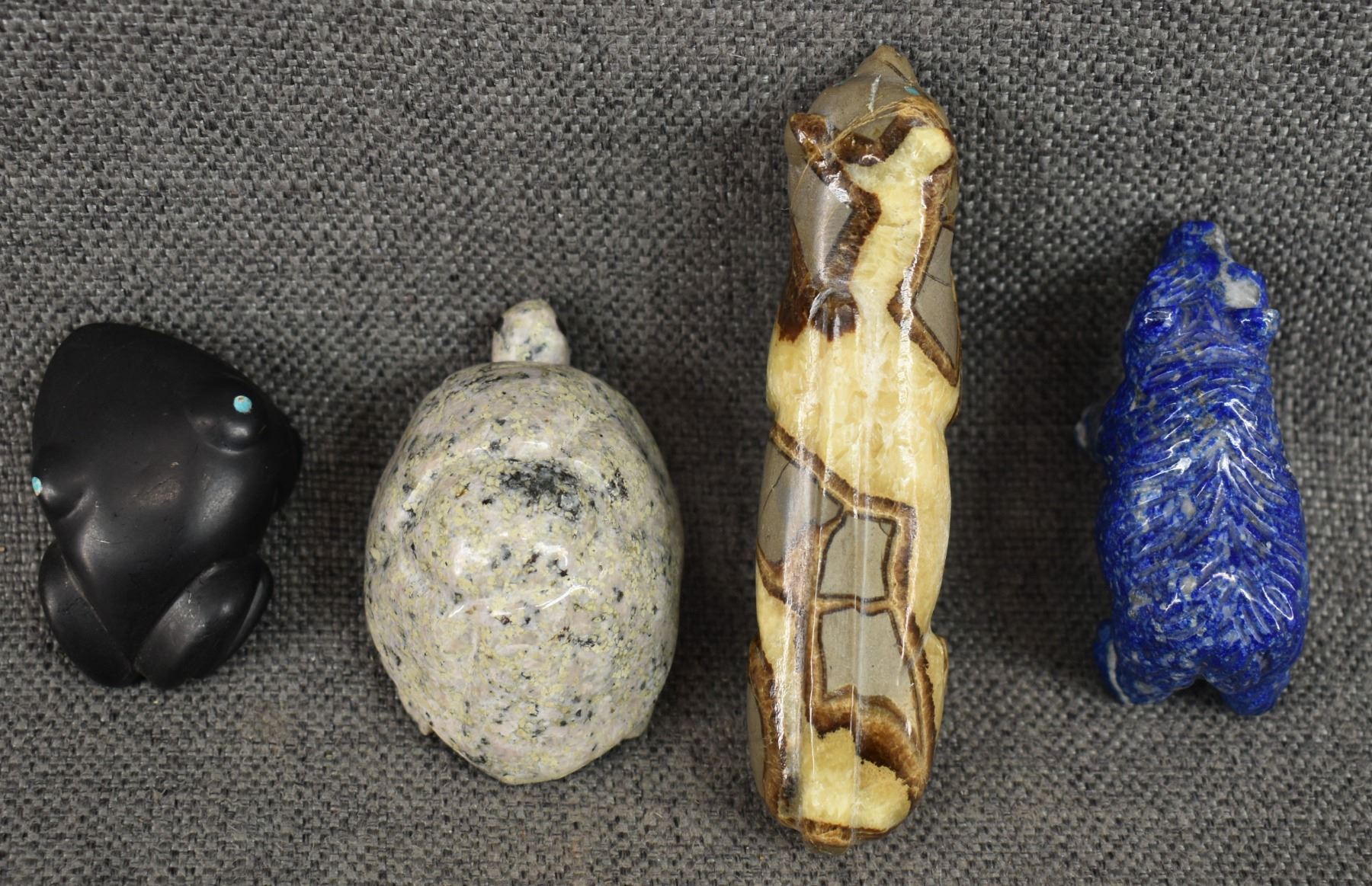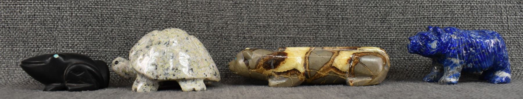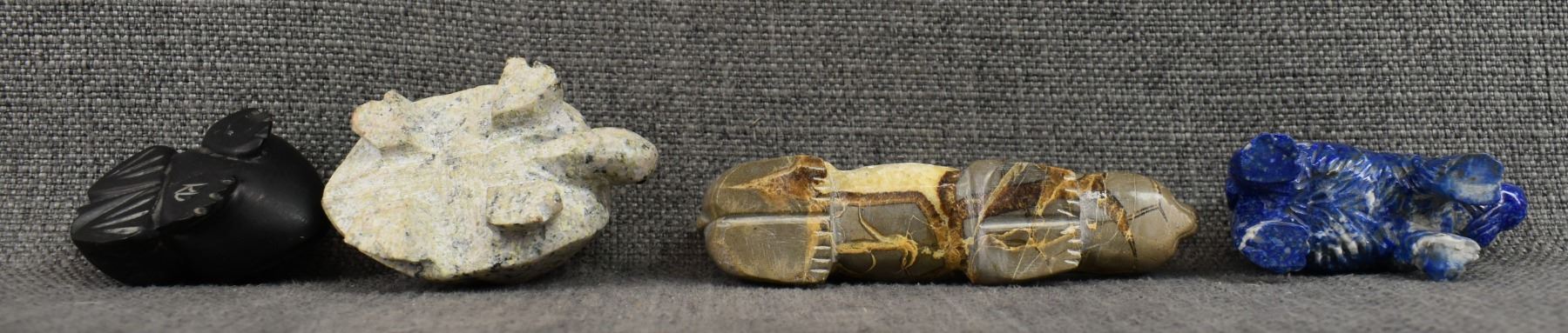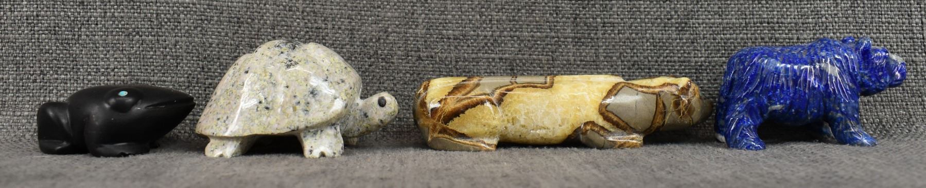 1980's Pueblo. Hand carved stone fetishes. Largest is 1'' x 5'' x 1.25''