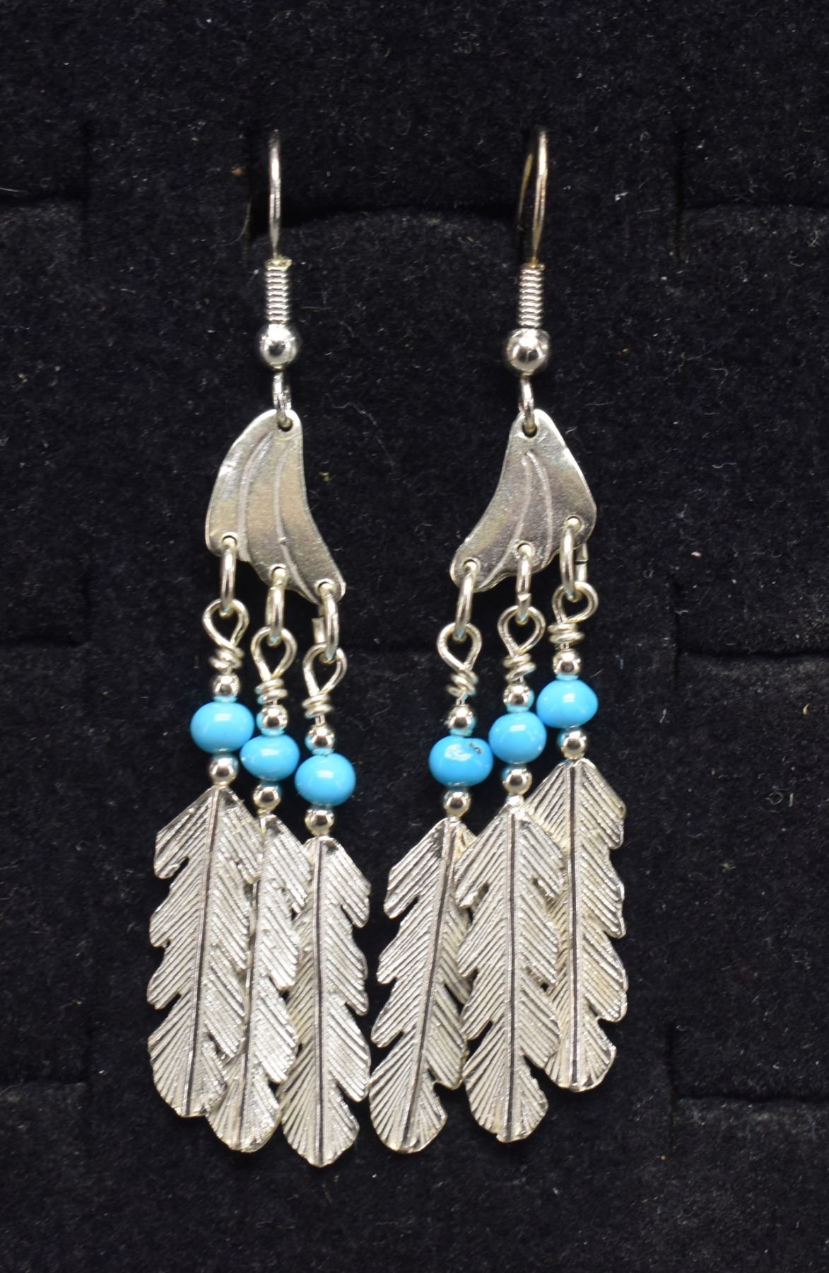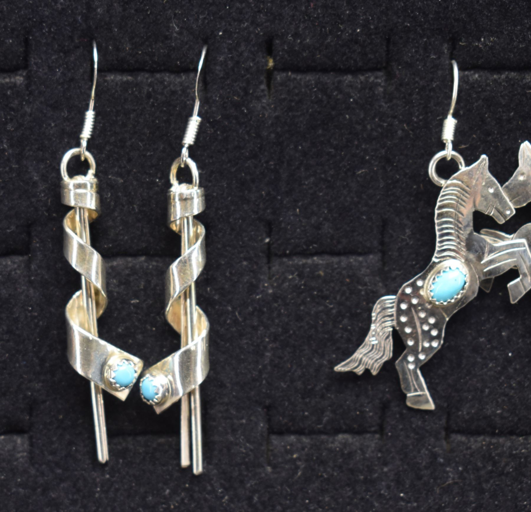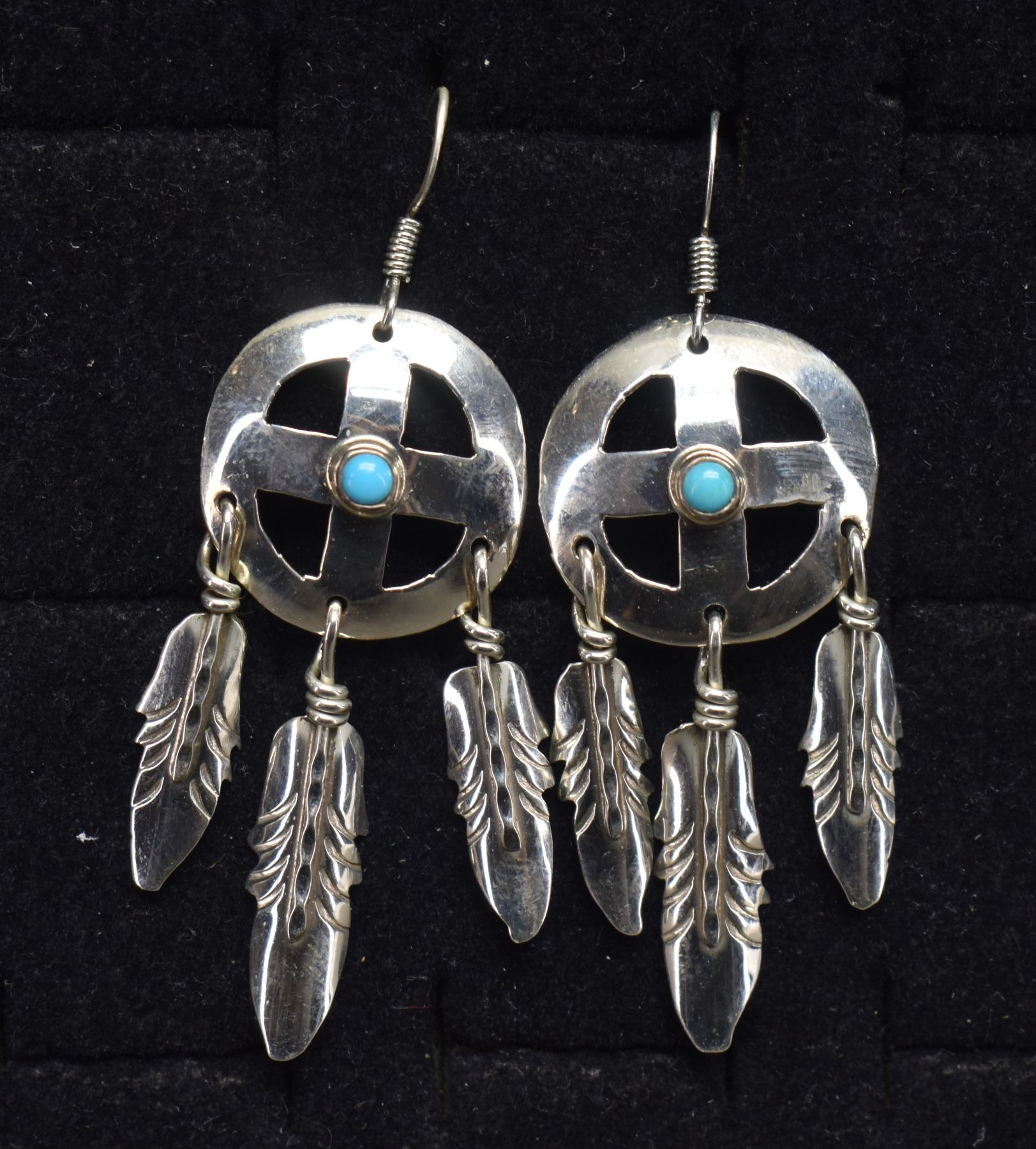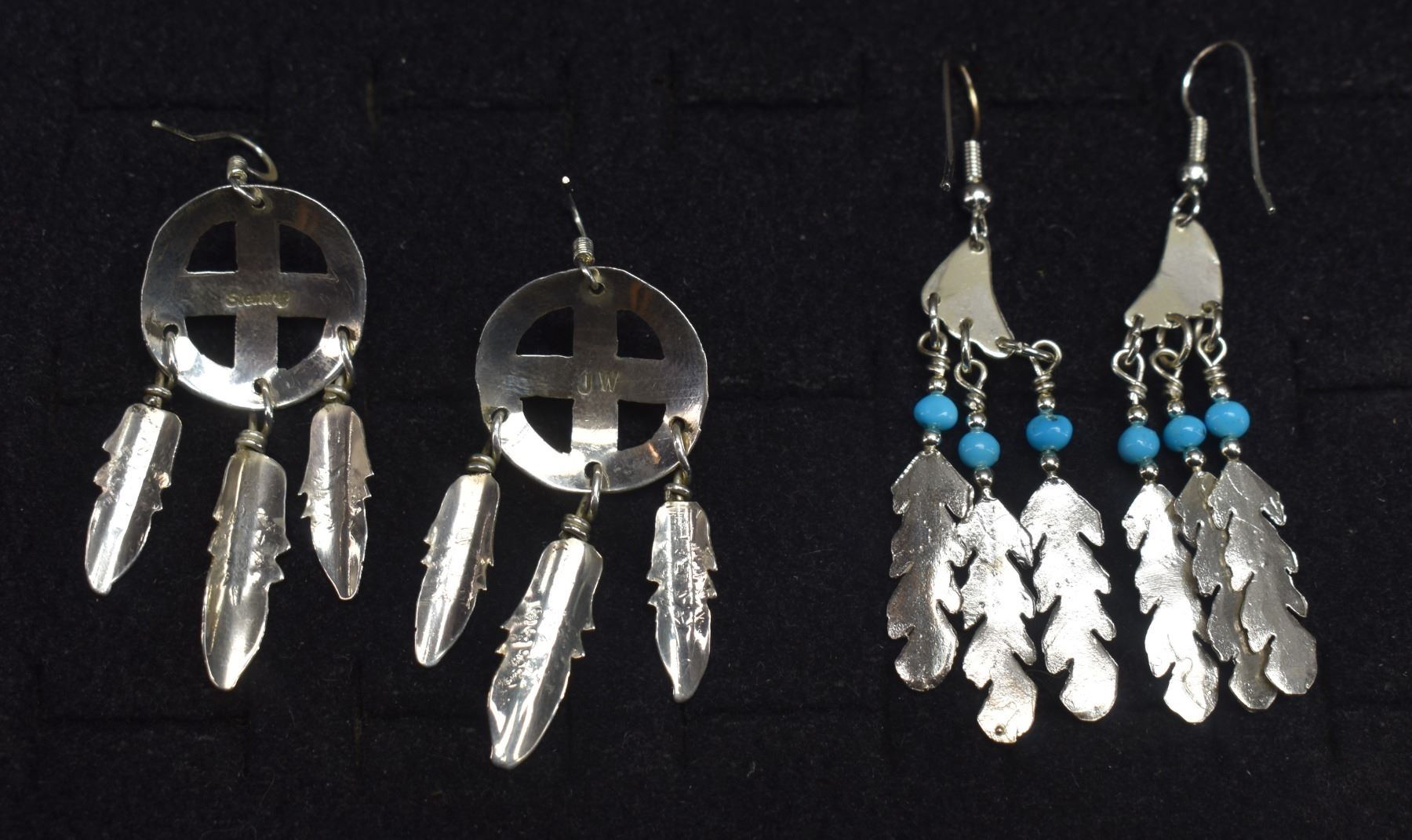 four sterling silver and turquoise earrings signed L.Y., J.W., L.Y., unsigned. Total weight 24 grams. Longest 2.5".