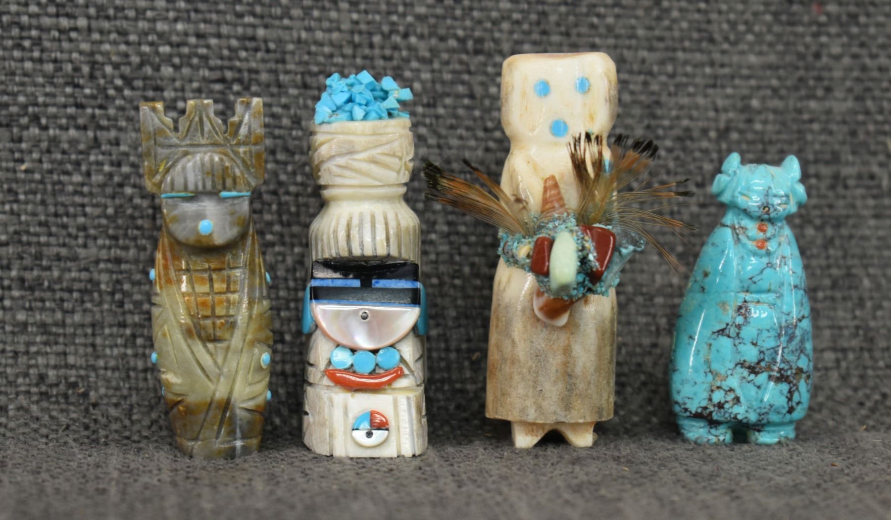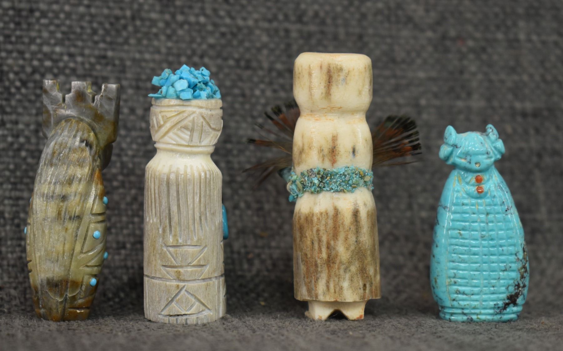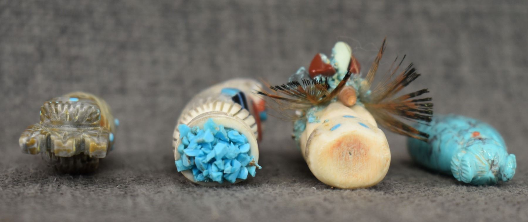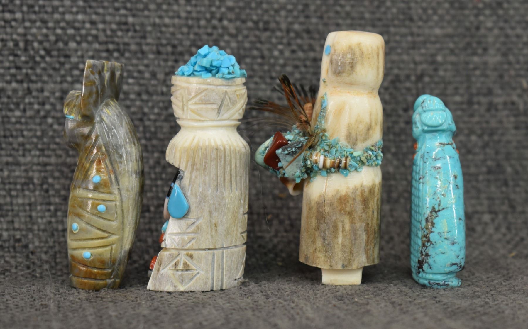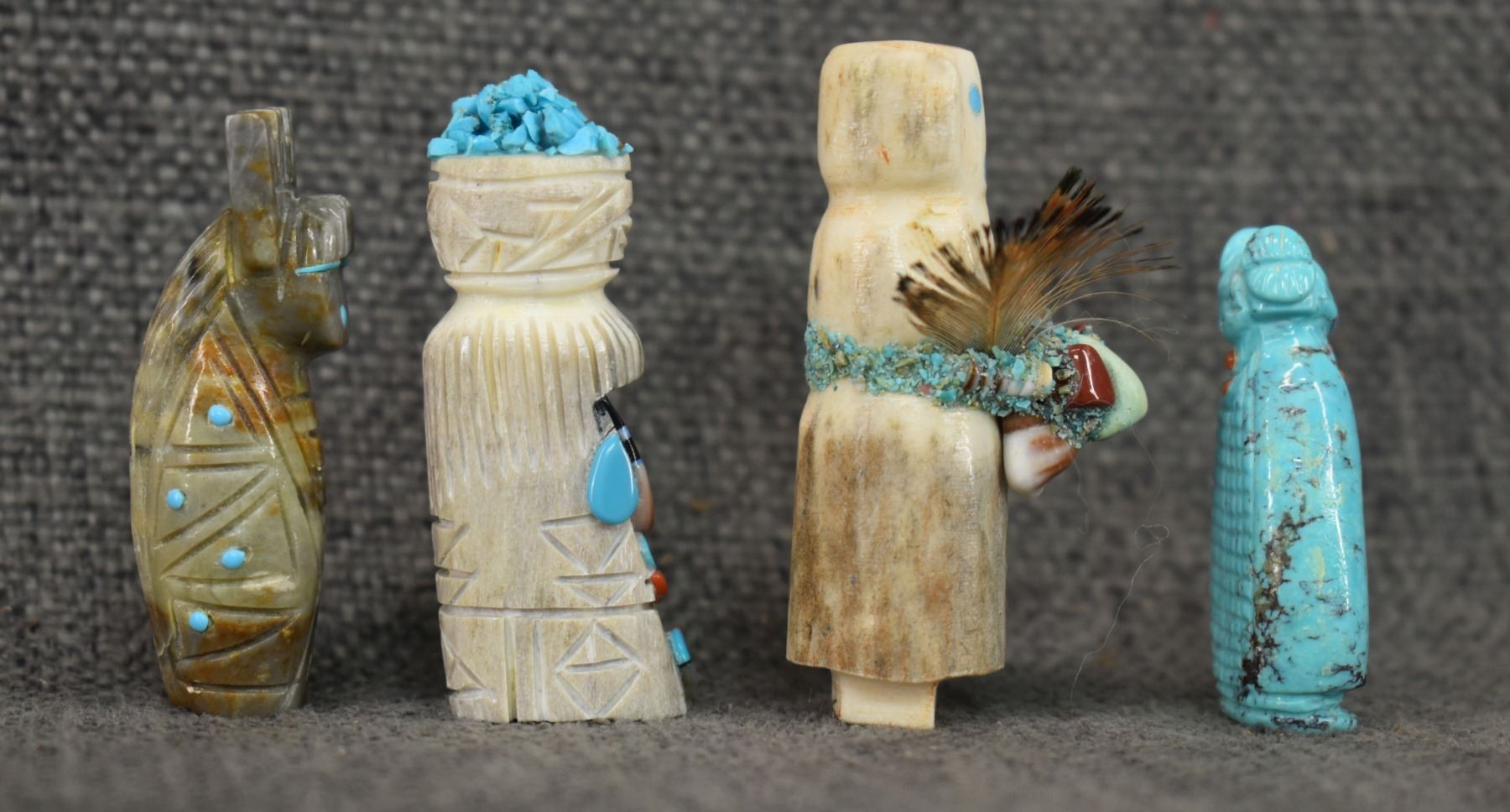 1990's Zuni, hand carved antler stone and turquoise fetishes .largest is 2'' tall